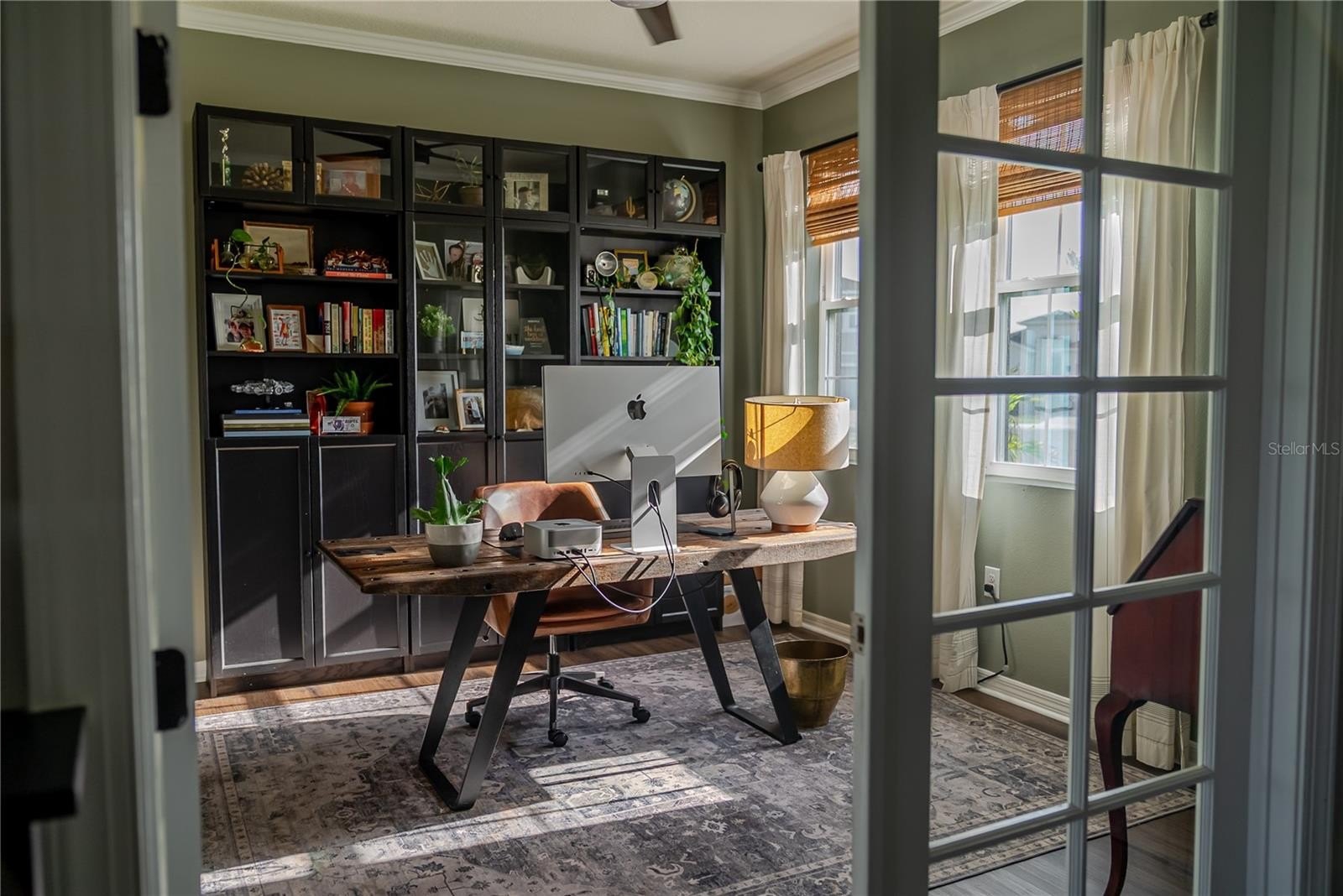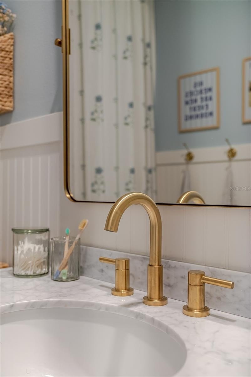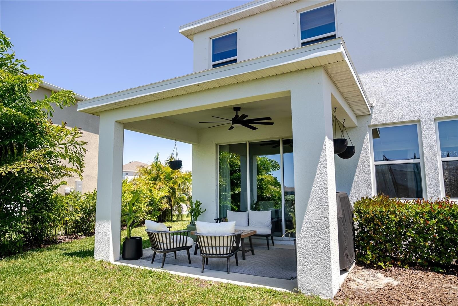 This is not the home you step inside and forget. From the moment you arrive, the lush tropical landscaping, manicured yard, and pond-view lot set this property apart — over $15,000 in professional landscaping and a fully fenced backyard give it a privacy and warmth that new construction rarely has. Built in 2021 and thoughtfully customized throughout, this 5-bedroom, 3-bathroom two-story home sits on a quiet dead-end cul-de-sac and offers 2,738 square feet of living space in a great location — minutes from shopping, dining, and just 25 minutes to the Gulf Coast beaches. The open-concept main floor features custom built-in cabinetry in the living area, a spacious kitchen with dark espresso cabinets, granite countertops, subway tile backsplash, a light filled dining room and large island with seating. A dedicated home office with French doors sits just off the main living area. All carpet has been replaced with luxury vinyl plank flooring and the staircase has been fully updated with wood treads and risers. Upstairs, the primary suite features custom picture frame molding. Additional bedrooms each carry their own personality and designer touches. A 5th bedroom with closet, added from the original loft space, adds real flexibility and lasting value over a standard floor plan. Bathrooms have been updated throughout. Outside, enjoy direct pond views, a fully fenced backyard, and sweeping water views as the neighborhood backs up to the Braden River. Tucked inside a gated community, enjoy access to a beautiful pool and pergola gathering area.