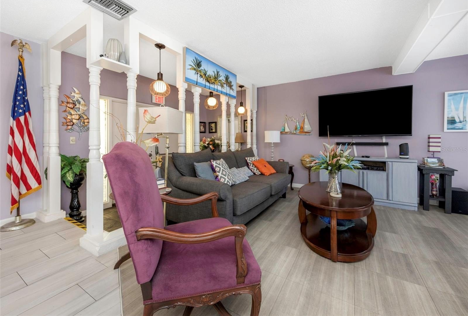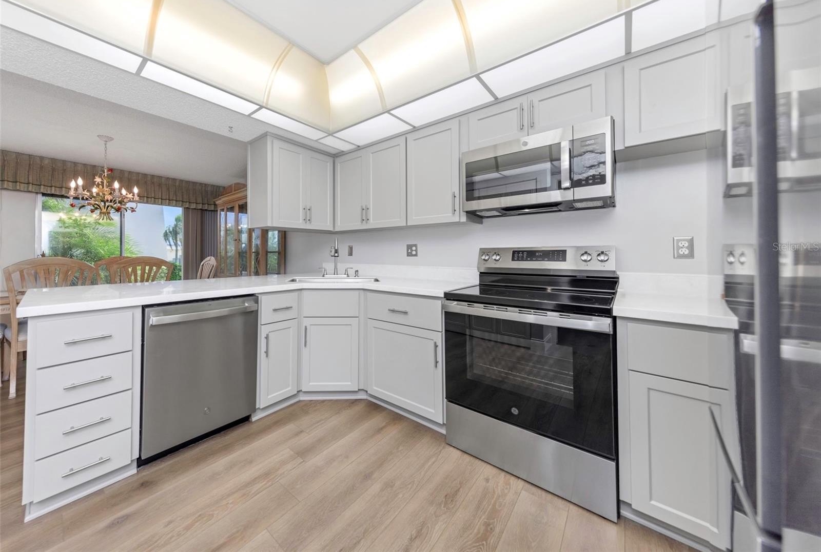 Penthouse Groves is an exceptional 55+ community offering refined living. This expansive first-floor condominium encompasses over 1,200 square feet and is partially furnished, featuring two bedrooms, two bathrooms, a private patio, and sliding doors along the rear that provide tranquil views of the pond. The updated kitchen includes refaced shaker cabinets, solid surface counters, and new appliances. Ample storage is available with generous closets, a pantry, and a utility/laundry room adjacent to the kitchen. The covered, assigned parking space is conveniently located just outside the front entrance, with additional guest parking nearby. Residents enjoy access to a spacious clubhouse equipped with a kitchen, fitness center, sauna, swimming pool, library, billiards and other amenities. Situated in an ideal location, Penthouse Groves offers proximity to shopping, restaurants, entertainment venues, and renowned beaches.