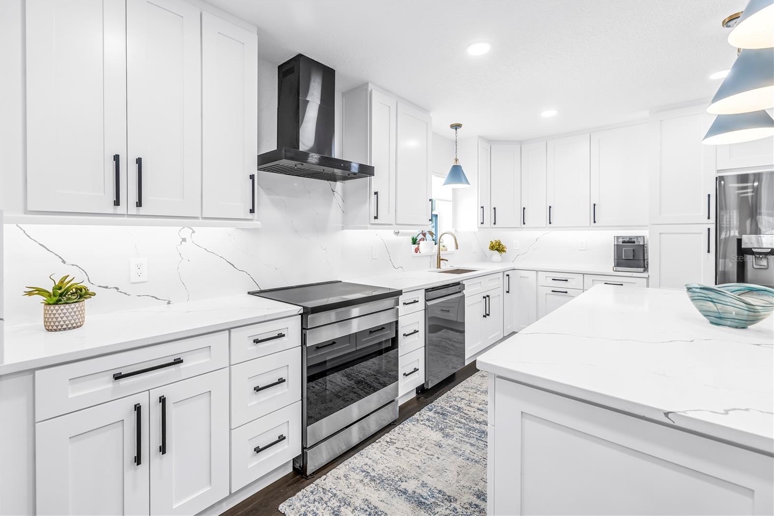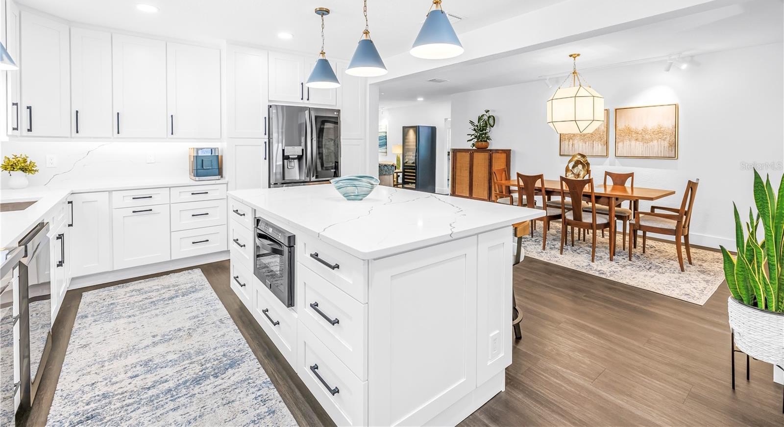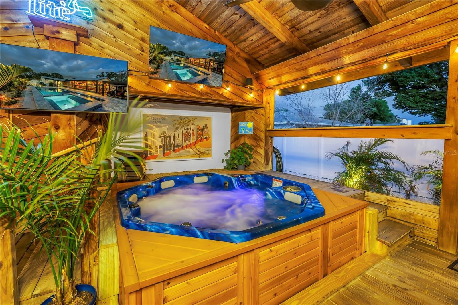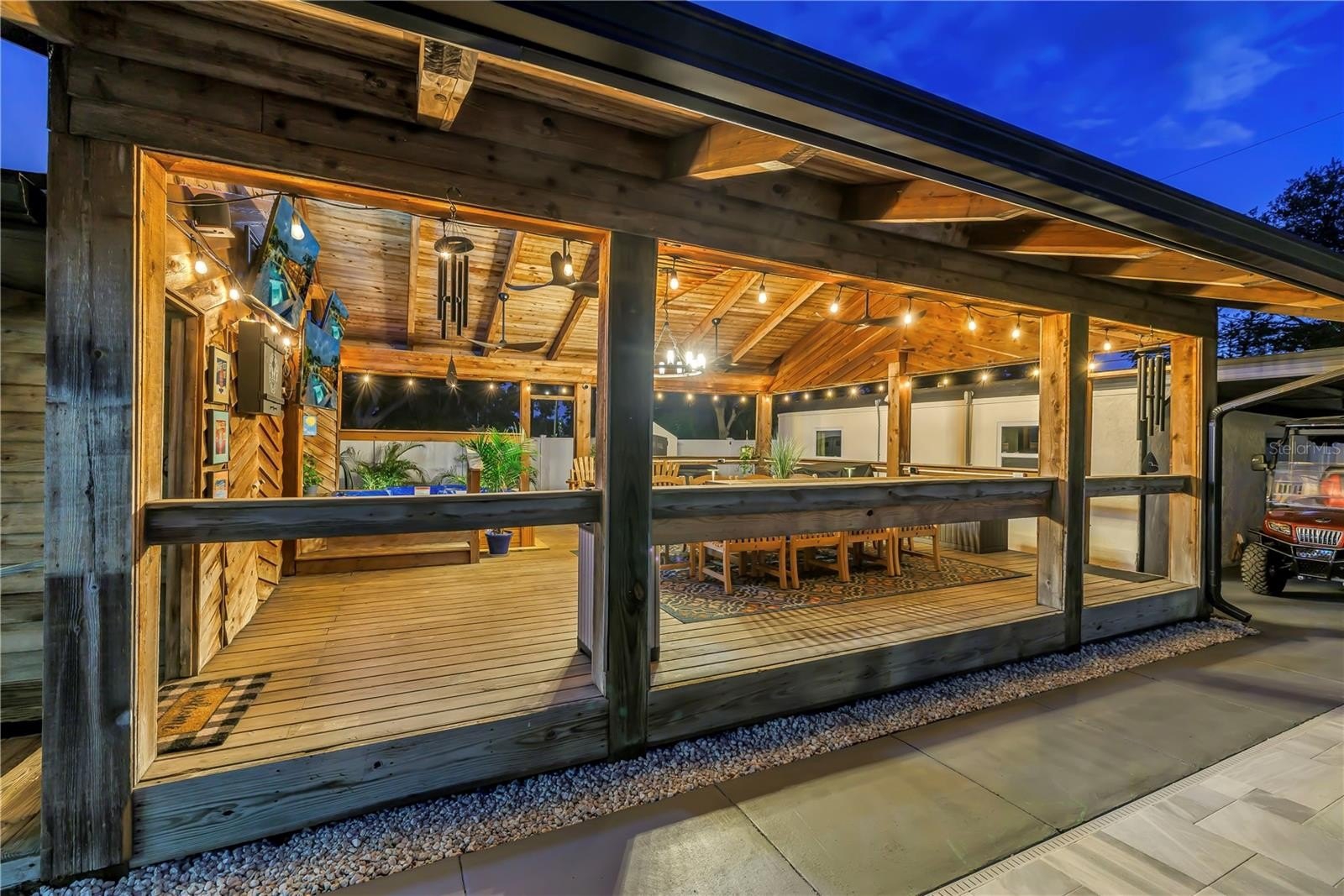 The main home features a split-bedroom layout, a beautifully redesigned chef’s kitchen with oversized island, dual pantries, and abundant storage, all flowing seamlessly into open living spaces and out to an expansive covered lanai. The outdoor retreat showcases a heated saltwater pool, enhanced by lush landscaping, a 638 sq ft vaulted covered, “Entertainment Pavilion”, complete with a spa/jacuzzi and a spacious dining area that comfortably seats 12, with multiple TV mounting locations already in place.