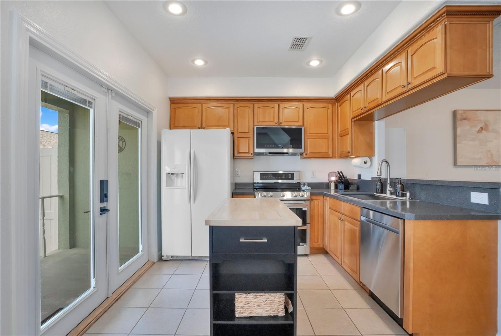 Welcome to Longleaf, one of New Port Richey’s most desirable communities, where charm, convenience, and an active lifestyle come together. This beautifully maintained end-unit townhome features 3 bedrooms, 2.5 bathrooms, and a 2-car detached garage with rear alley access. The light-filled, open-concept layout seamlessly connects the kitchen, living, and dining areas and includes a half bathroom on the main floor, a dedicated laundry room, and French doors leading to a covered porch and fully fenced backyard.