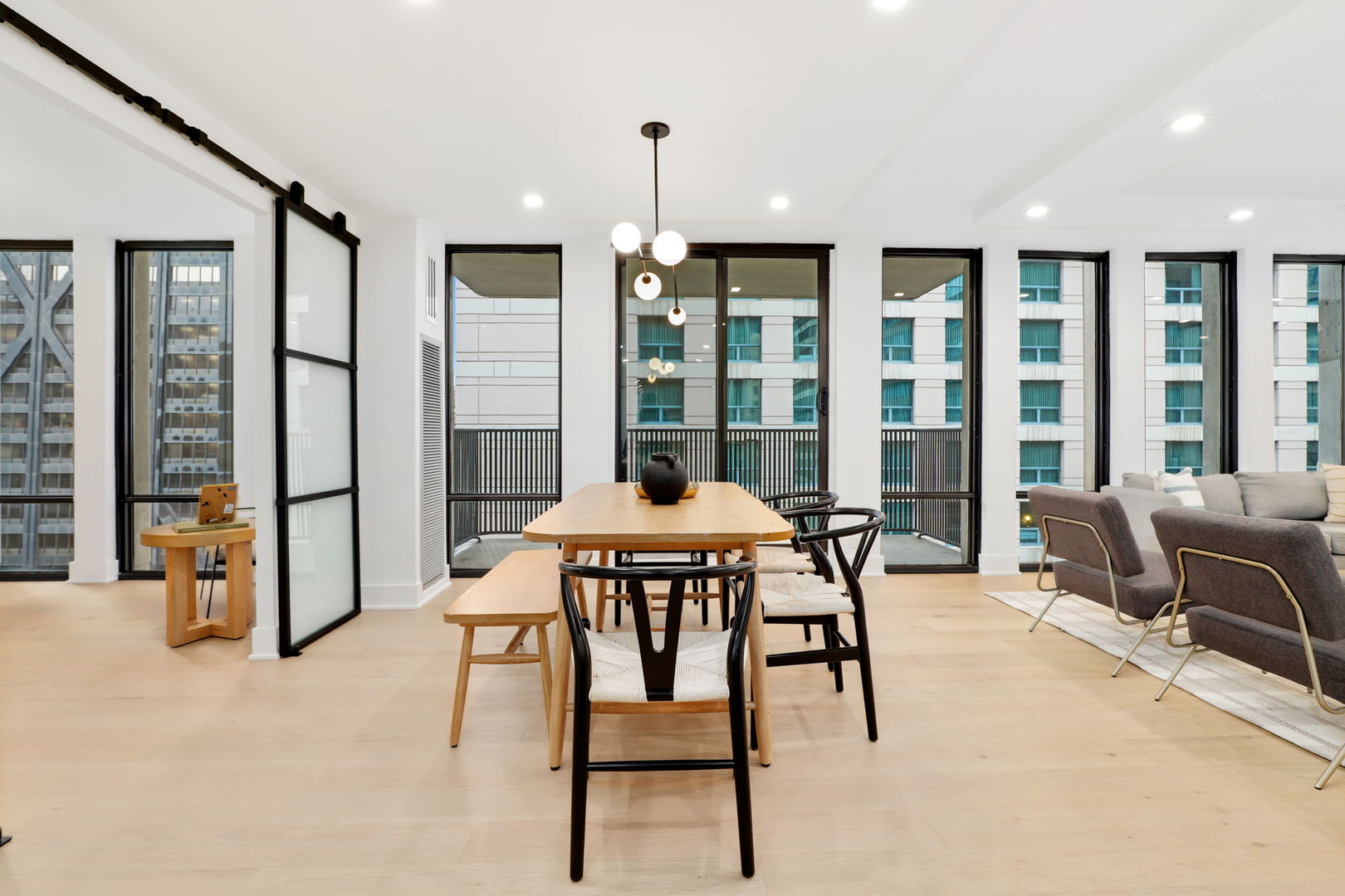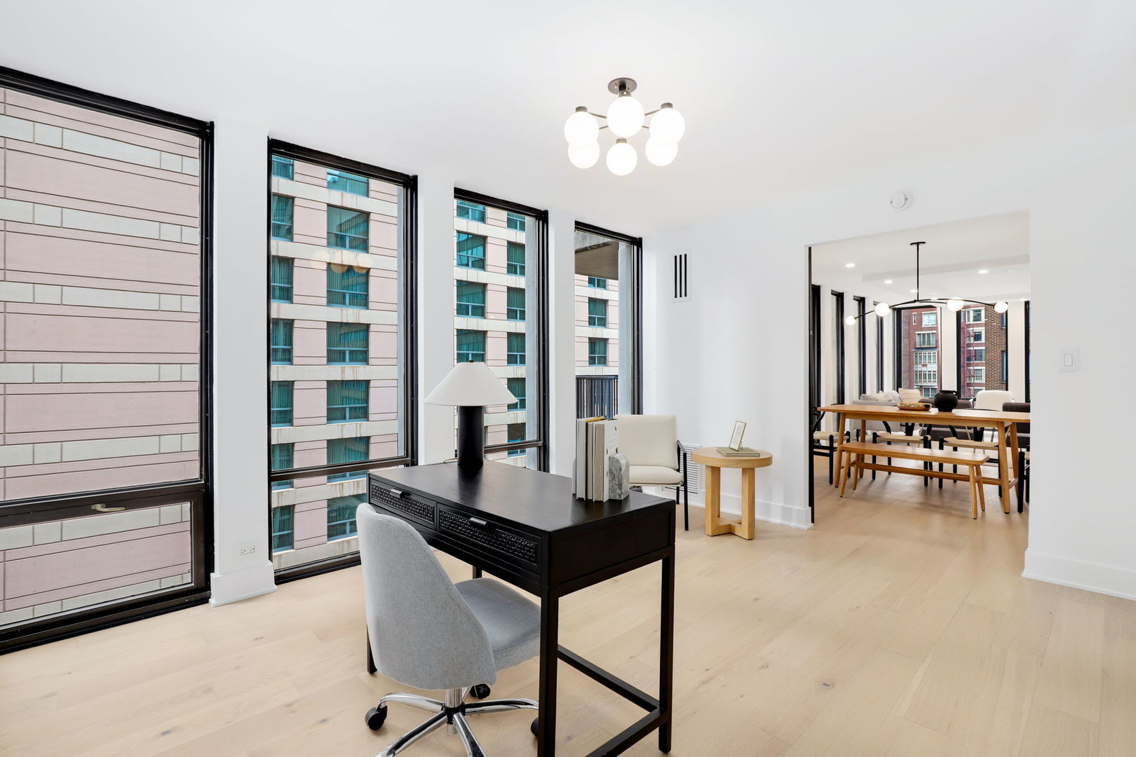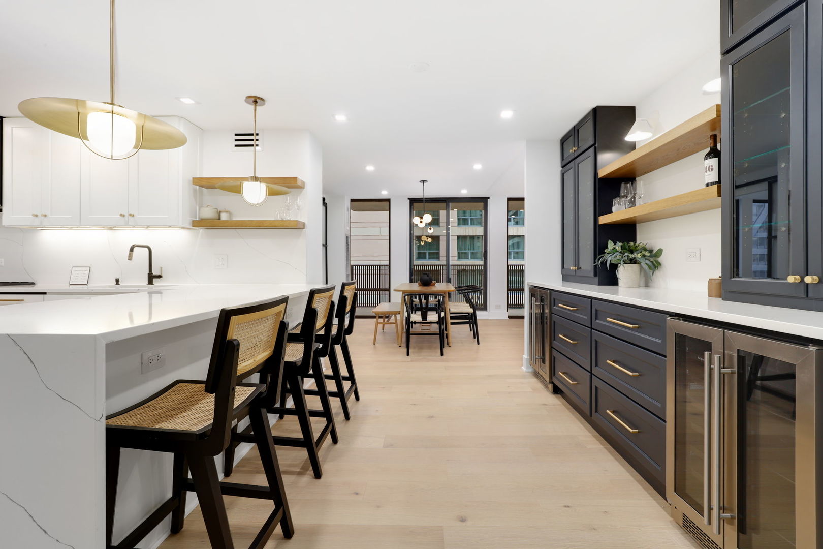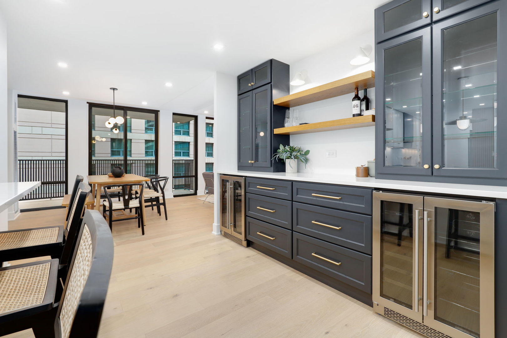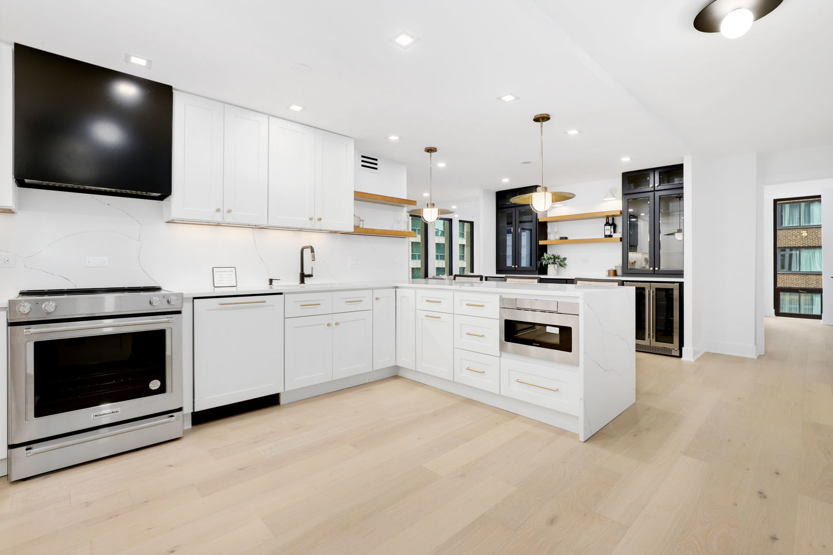 This exceptional BRAND NEW rehabbed 3-bedroom, 2-bathroom condo offers a rare opportunity to experience the best of city living. Located two blocks from the iconic Magnificent Mile, this beautiful unit delivers luxury, elegance, and unmatched urban convenience, all while being pet-friendly, making it perfect for an urban oasis. Located in a prime spot, this unit features a spacious open living area, a chef-inspired kitchen, and the vibrant cityscape. The chef's kitchen is a true culinary haven, equipped with high-end, smart KitchenAid/Bosch appliance package, luxury Brizo faucet, stylish matte black range hood, quartz countertops with a continuous backsplash for a seamless finish, and tons of storage including a pantry. The dry bar is perfectly situated to maximize your entertainment options with two Zephyr wine/beverage fridges, floating shelves, and additional storage. The very spacious living room with floor to ceiling windows and views of the John Hancock tower is ideal for relaxing and entertainment. The well-sized dining room connecting to the living room and kitchen is great for gatherings and holiday hosting. Step outside onto your large balcony, where you can enjoy a morning coffee or evening cocktail while taking in the views of surrounding iconic buildings. The new floorplan is smartly designed to maximize every square inch. The enormous primary bedroom is a true primary suite with a custom built-out walk-in closet, luxurious ensuite bathroom with designer tiles, double vanity, and walk-in shower with 6 body-sprayers and double shower heads. The second bedroom is extremely comfortable with tons of closet space and recessed lighting throughout. Conveniently located on the West wing, the 3rd bedroom allows for tons of flexibility such as a den, office, bedroom and is separated from the living/dining room with double black metal framed sliding glass doors. The 2nd bathroom is both convenient and beautiful with a deep Kohler soaking tub and double vanity. IN-UNIT laundry allows for effortless living. Every detail has been meticulously crafted, including new recessed lighting throughout, designer light fixtures, smart appliances, smart dimmable light switches, engineered white oak hardwood floors, and ample organized storage. 200 E Delaware is a very well-run building that offers 24/7 doorman and on-site management and engineer, receiving room, beautifully renovated lobby and party room, great fitness center, on-site convenience store, bike storage, an outdoor heated pool, grill and sundeck. Located in the heart of Chicago with just 2 blocks from Michigan Avenue, the building's prime location puts you in the heart of it all, with easy access to the lakefront, renowned restaurants, shopping, and entertainment. The HOA covers everything except electricity. Attached garage valet parking for additional fees. Pets are welcome!