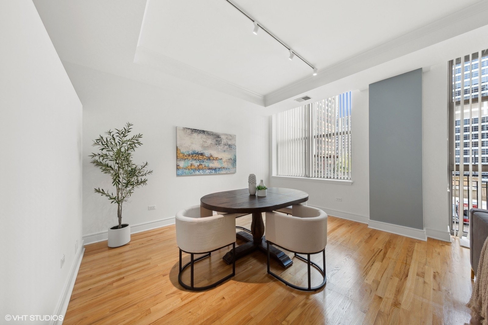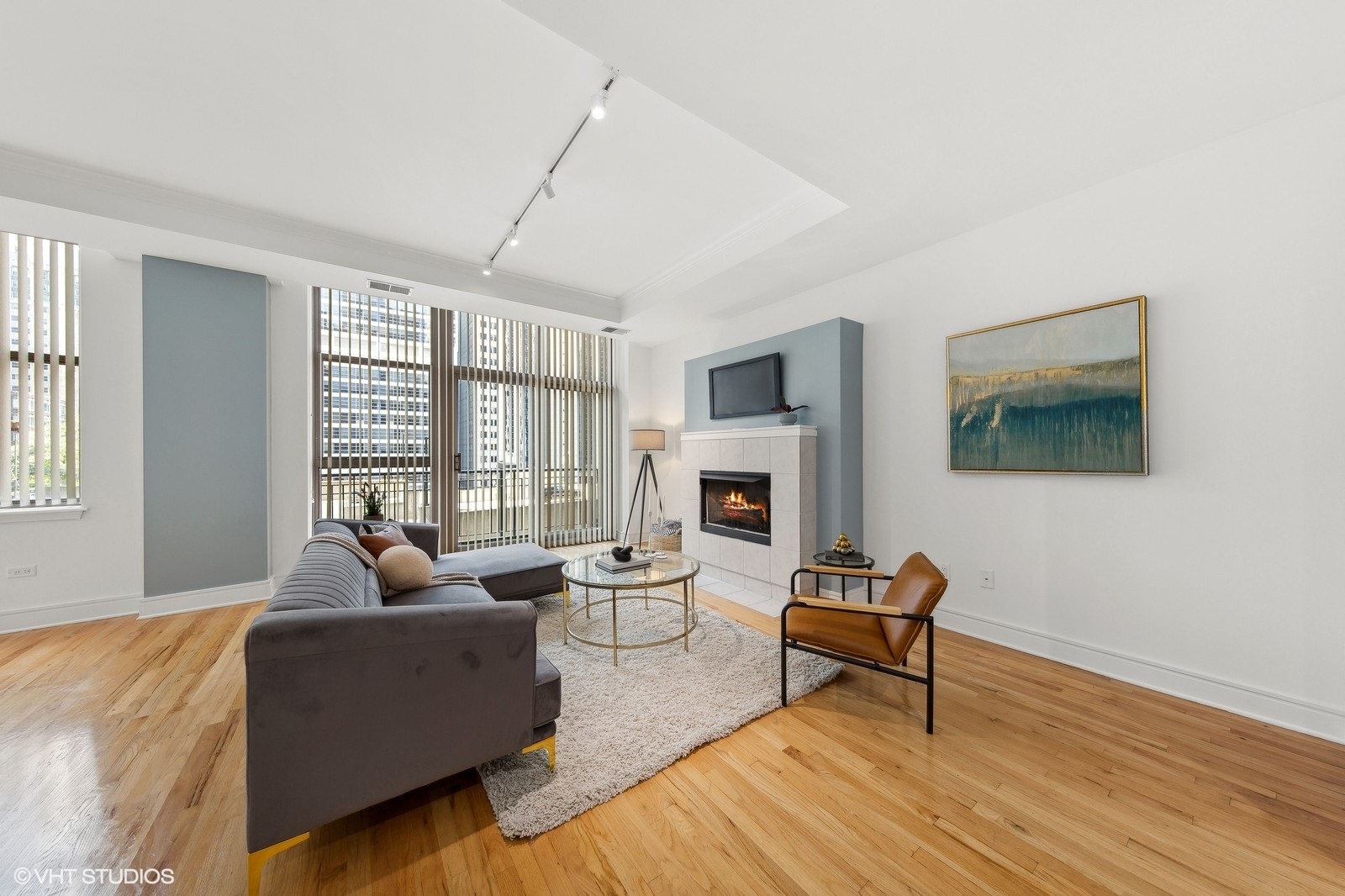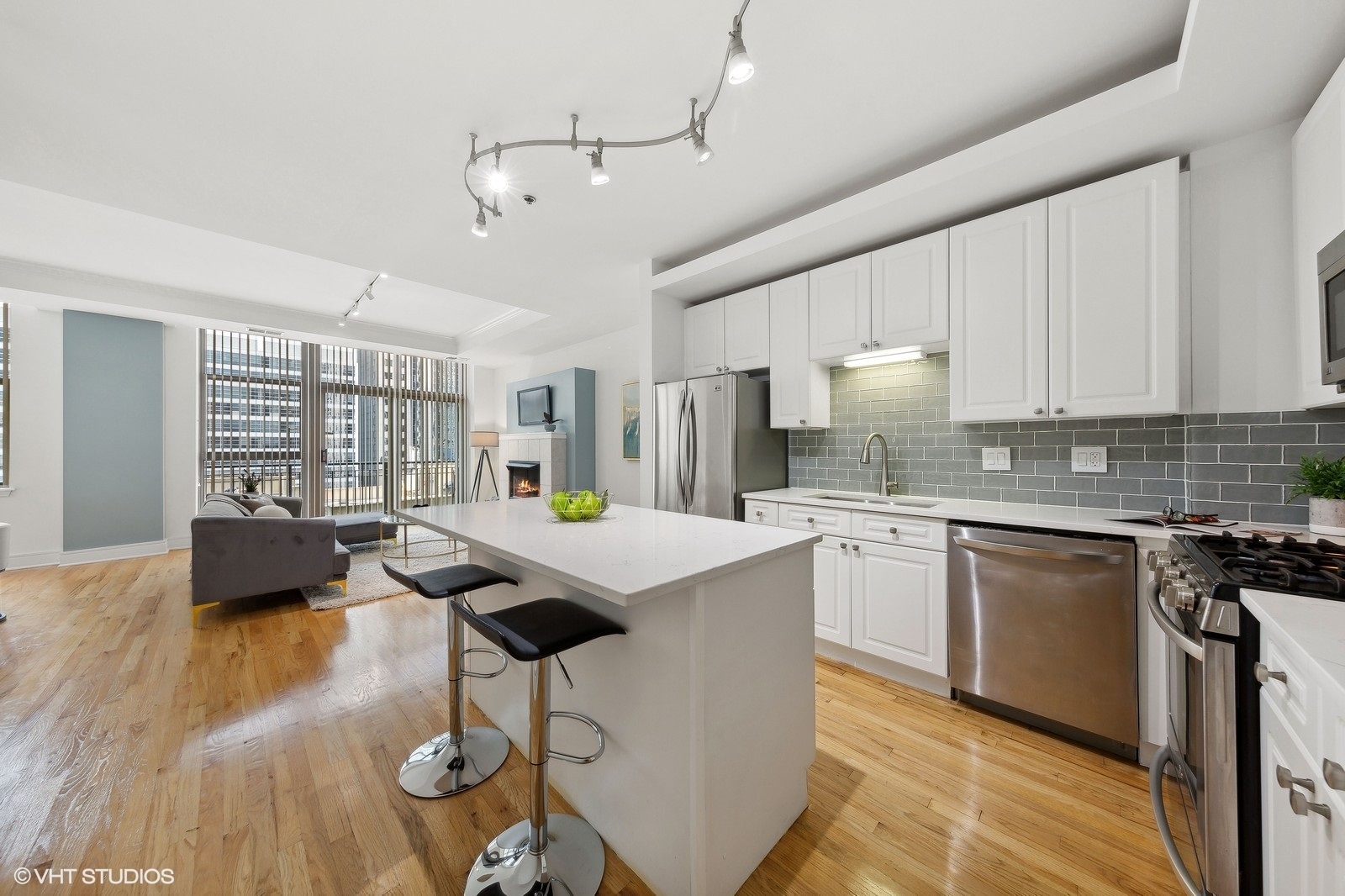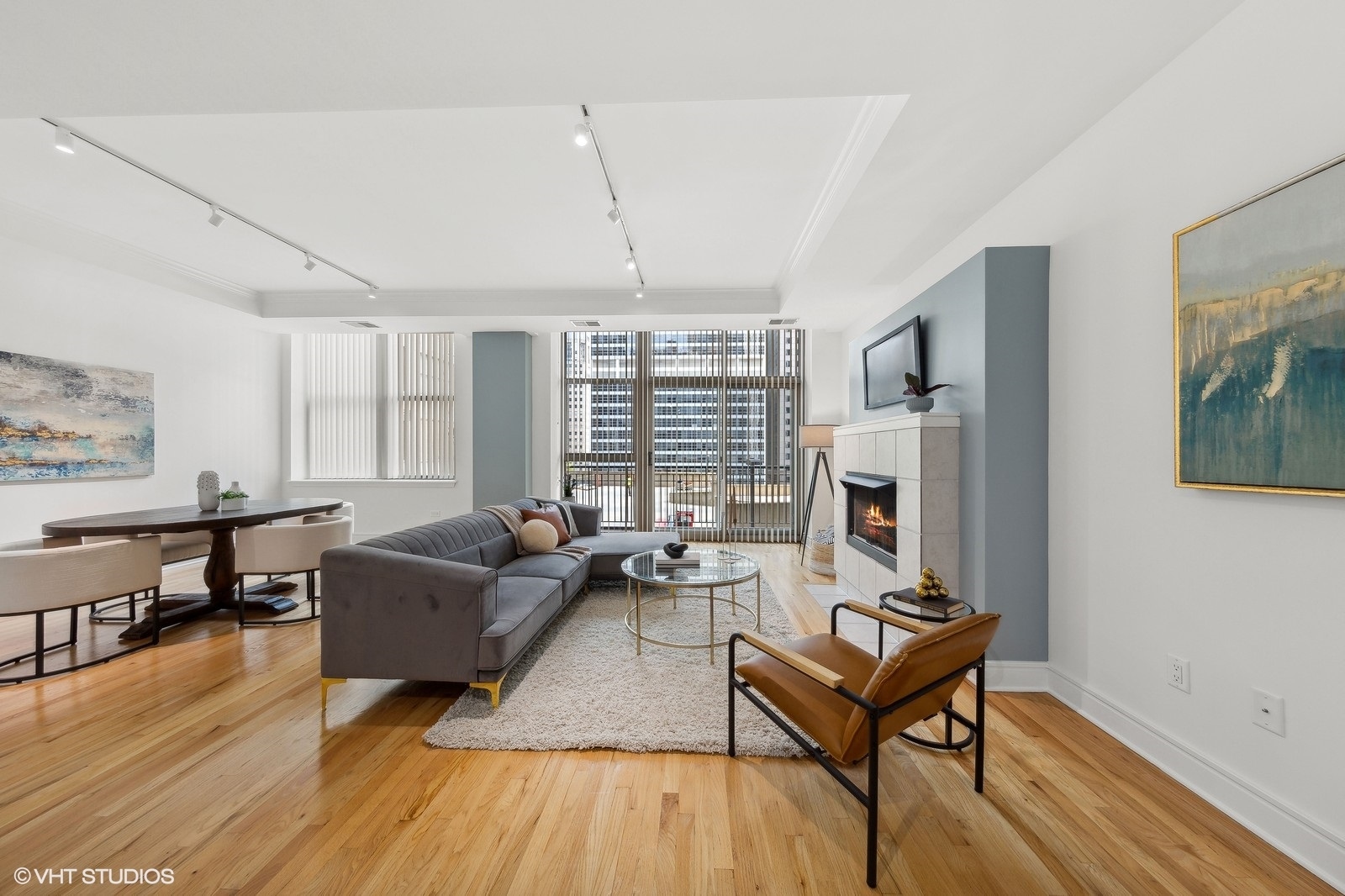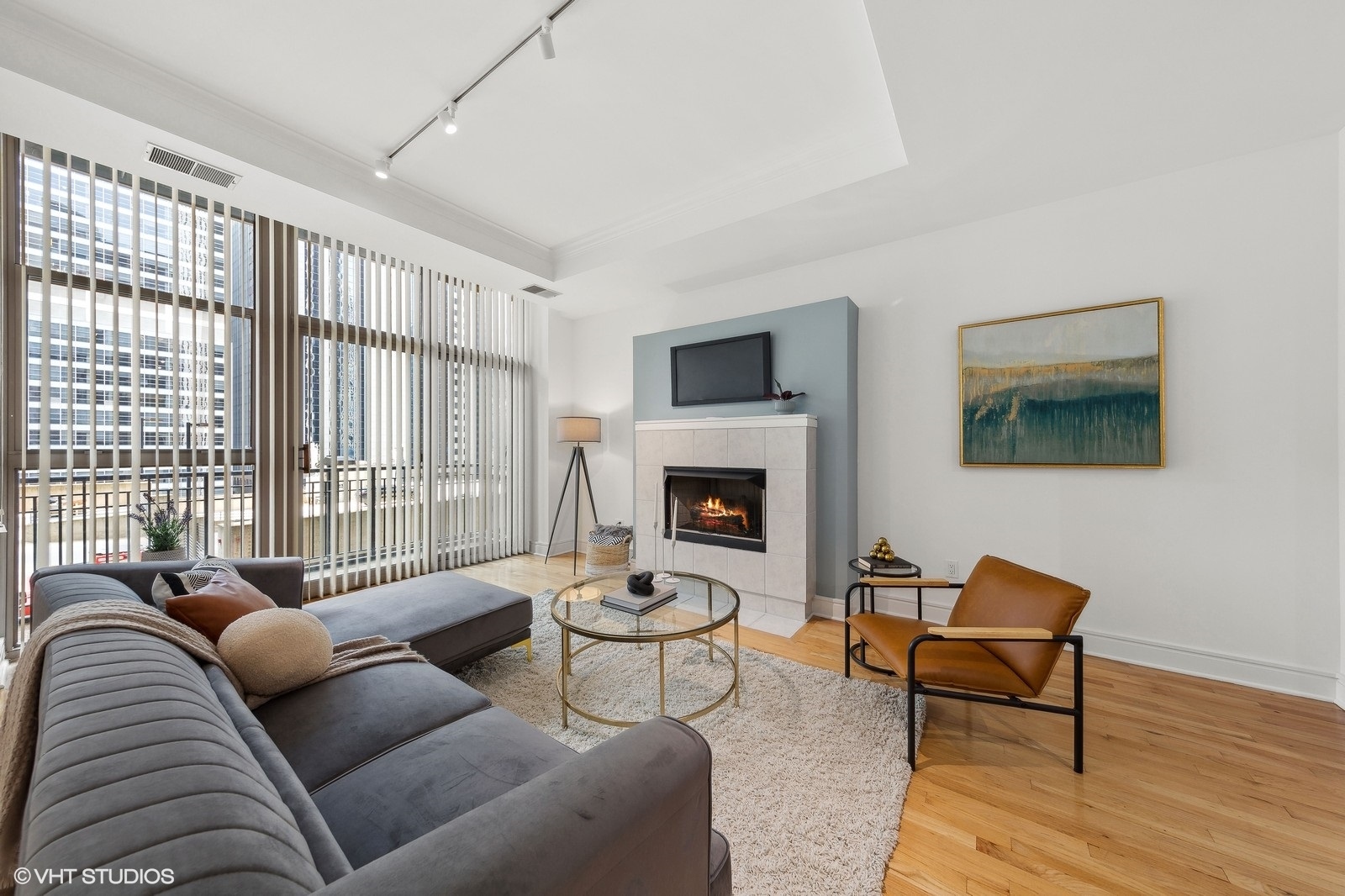 Welcome to this newly renovated, nicely sized 2 bed, 2 bath condo in the heart of Downtown Chicago! Featuring an open-concept layout, this bright unit offers natural hardwood floors and floor-to-ceiling windows that flood the space with abundant natural light. The kitchen boasts stainless steel appliances, quartz countertops, and a custom tile backsplash, perfect for both everyday cooking and entertaining. Unwind in the spacious living room by the cozy gas fireplace or step outside onto your private west-facing balcony to take in views of the city. The primary suite is a serene retreat with ample closet space, a beautiful en-suite bathroom, double vanity, and a large soaking tub. The second bedroom is perfect for guests or a home office, offering flexibility, generous closet space and an adjacent full bathroom. Additional highlights include an in-unit washer/dryer and the option to purchase deeded parking for an additional 25k. This well-managed, amenity rich building includes 24-hour door staff, on-site package delivery, a fitness center, sundeck, bike storage, and more. Situated in the vibrant Chicago Loop, you'll be just steps away from Google's extravagant office in the Thompson Center, close to top-tier West Loop dining, the Riverwalk, Millennium Park, The Art Institute, Lyric Opera, Chicago Symphony Orchestra, and many theaters. With easy access to public transit, it's also a prime location for students attending DePaul, Columbia College, The School of the Art Institute, UIC Law School, Northwestern University (Law & Business programs), or Loyola University's Water Tower Campus. Priced competitively (below Cook County Assessor's Fair Market Value for 2024!), this is an incredible opportunity to experience the ultimate urban lifestyle in one of Chicago's most sought-after neighborhoods. Don't miss out - schedule your showing today!