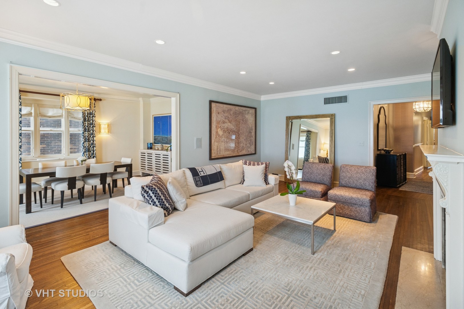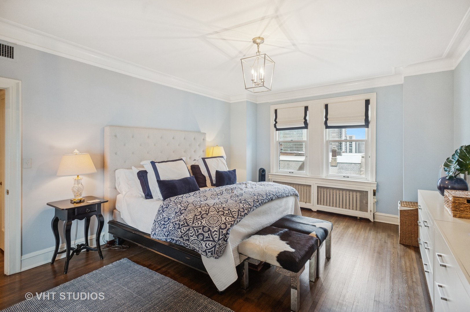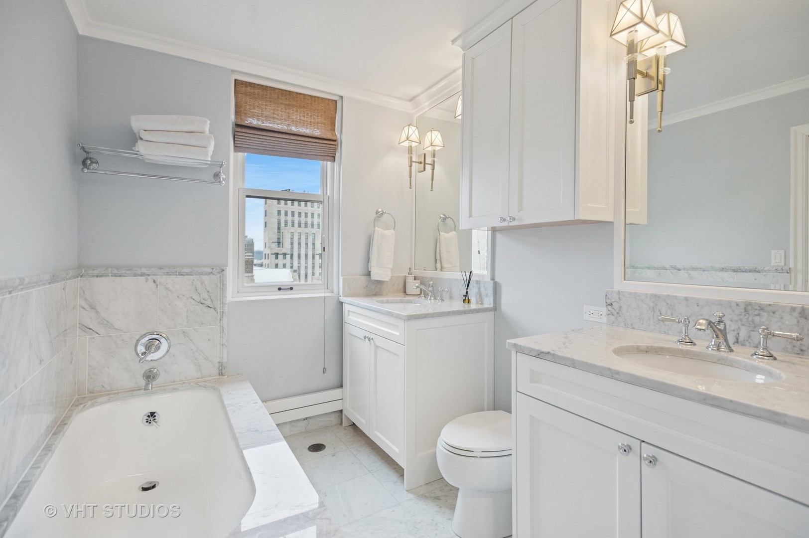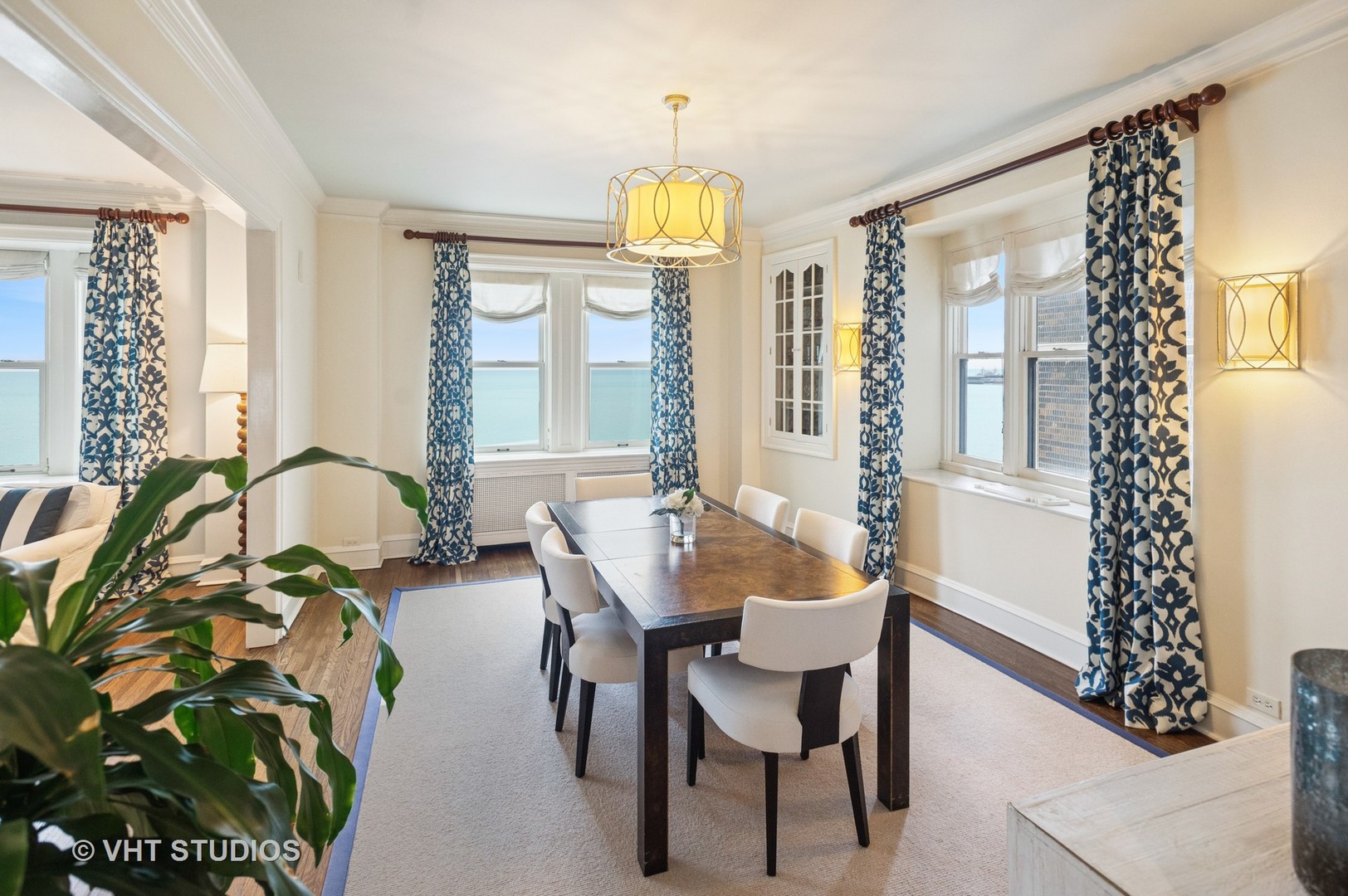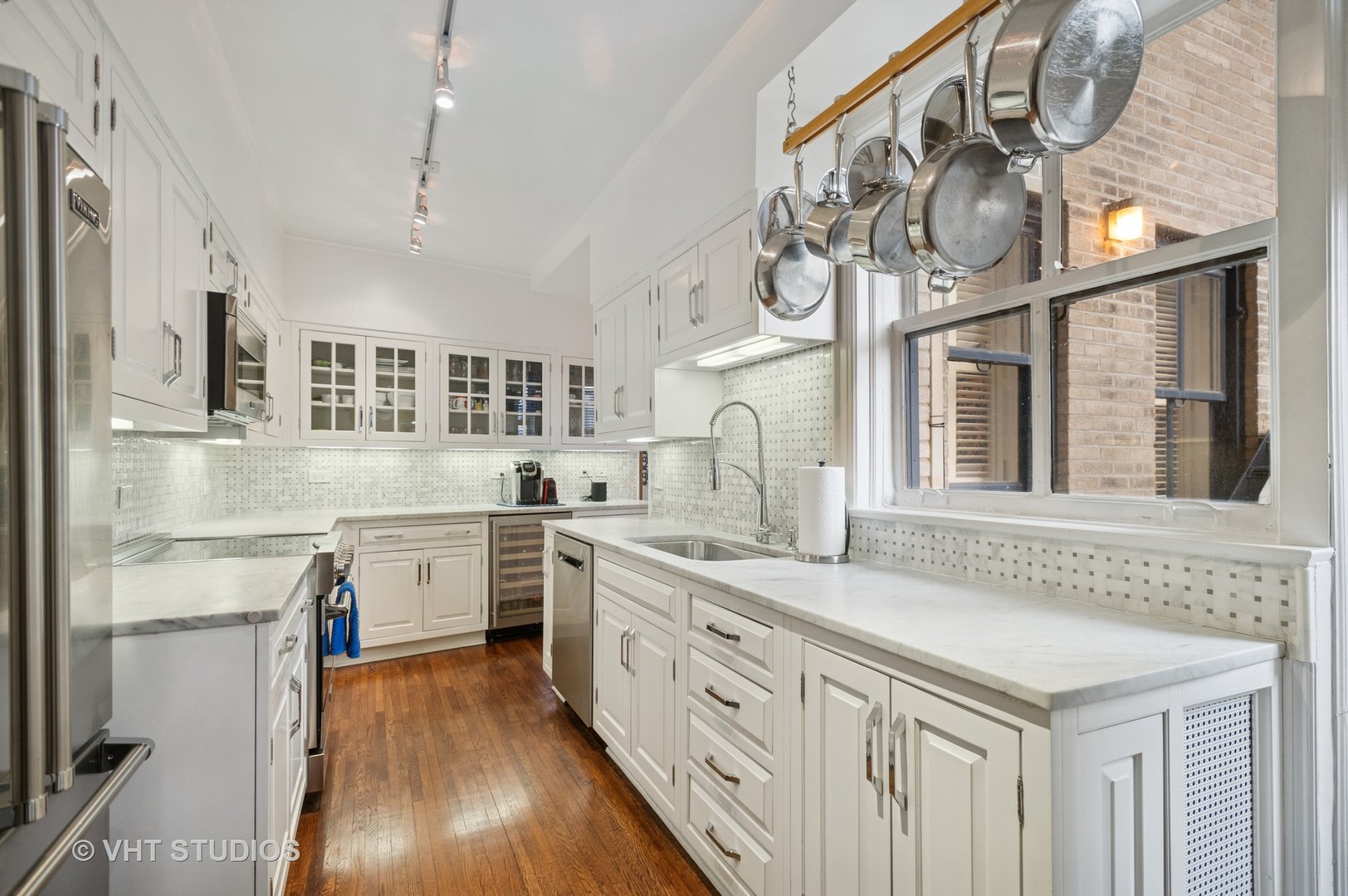 One of the most elegant buildings in the Gold Coast, 1242 LSD was designed in 1929 by the acclaimed architect Robert DeGolyer. The larger of only two apartments on the 13th floor, 13-S offers spectacular views of Lake Michigan and the neighborhood. Enjoy an ideal combination of vintage detailing and modern finishes in this fully renovated 3,000 sqft 3 bedroom, 3.5 bath home. The living and dining rooms are generously proportioned and include a fireplace, crown molding, and recessed and designer lighting. Outfitted with top quality Viking and Bosch appliances including a wine fridge, the kitchen is stunning and opens up to a family/breakfast room. All three bedrooms have beautiful new en suite baths, and the master has a walk-in closet. The maid's room (formerly a 4th bedroom) is now an office. Other features include new paint, refinished floors, and new windows. Building amenities include storage, a small exercise room and serviced oriented door, maintenance and management staff. Rental parking in the area.