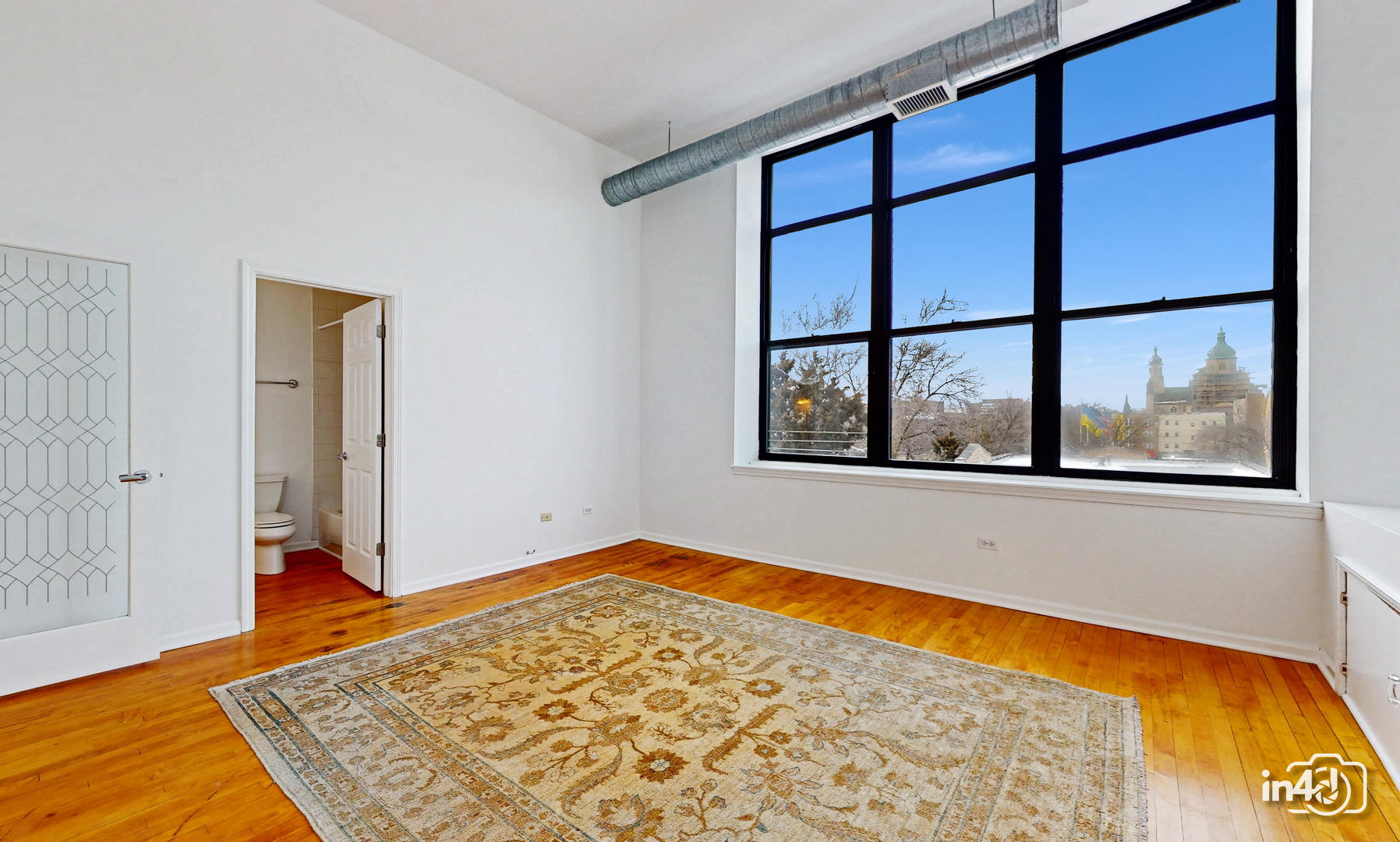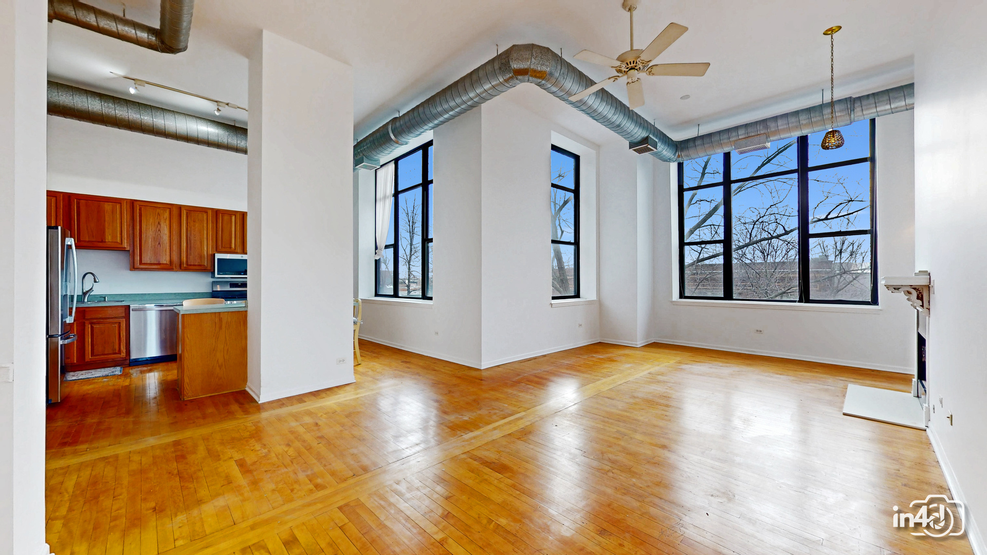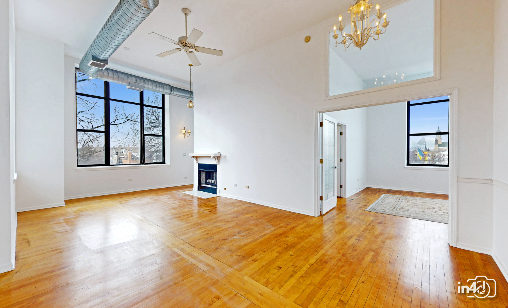 Nestled away in the heart of the Ukrainian Village, this soft loft invites you into a space where charm meets modern comfort. One of only 18 unique residences in this well-managed pet-friendly building, this 1 bedroom plus den (which can easily be used as a second bedroom) 1.5 bathroom offers a warm feel. Soaring ceilings show the exposed ductwork and creates an airy ambiance as the hardwood floors stretch across the open layout. An impressive two-sided fireplace is perfect for a chilly Chicago evening. The massive windows allow sunlight to pour through and give you beautiful city views. The kitchen has been outfitted with newer stainless-steel appliances and perfectly connects to the open living space which makes entertaining effortless. The entire unit has been freshly painted and features an in-unit washer/dryer and tons of closet and storage space. There are an abundance of entertainment options close by from acclaimed restaurants to charming shops and travel is always a breeze with the highway in such short proximity. No need to look for a parking spot when you come home after a long day, this unit comes with a deeded outdoor parking space. This urban retreat blends style, function and location so call today to schedule your tour.