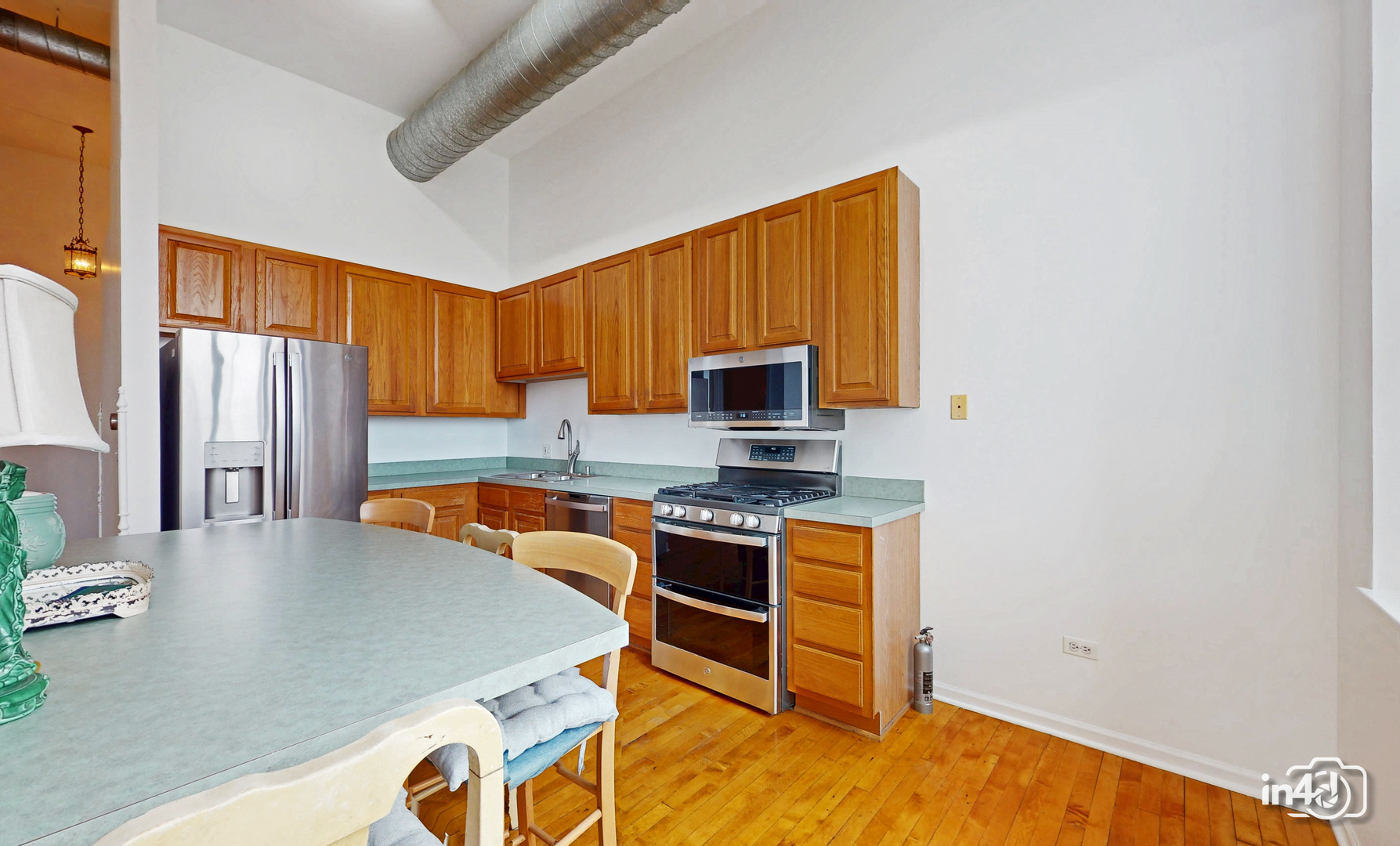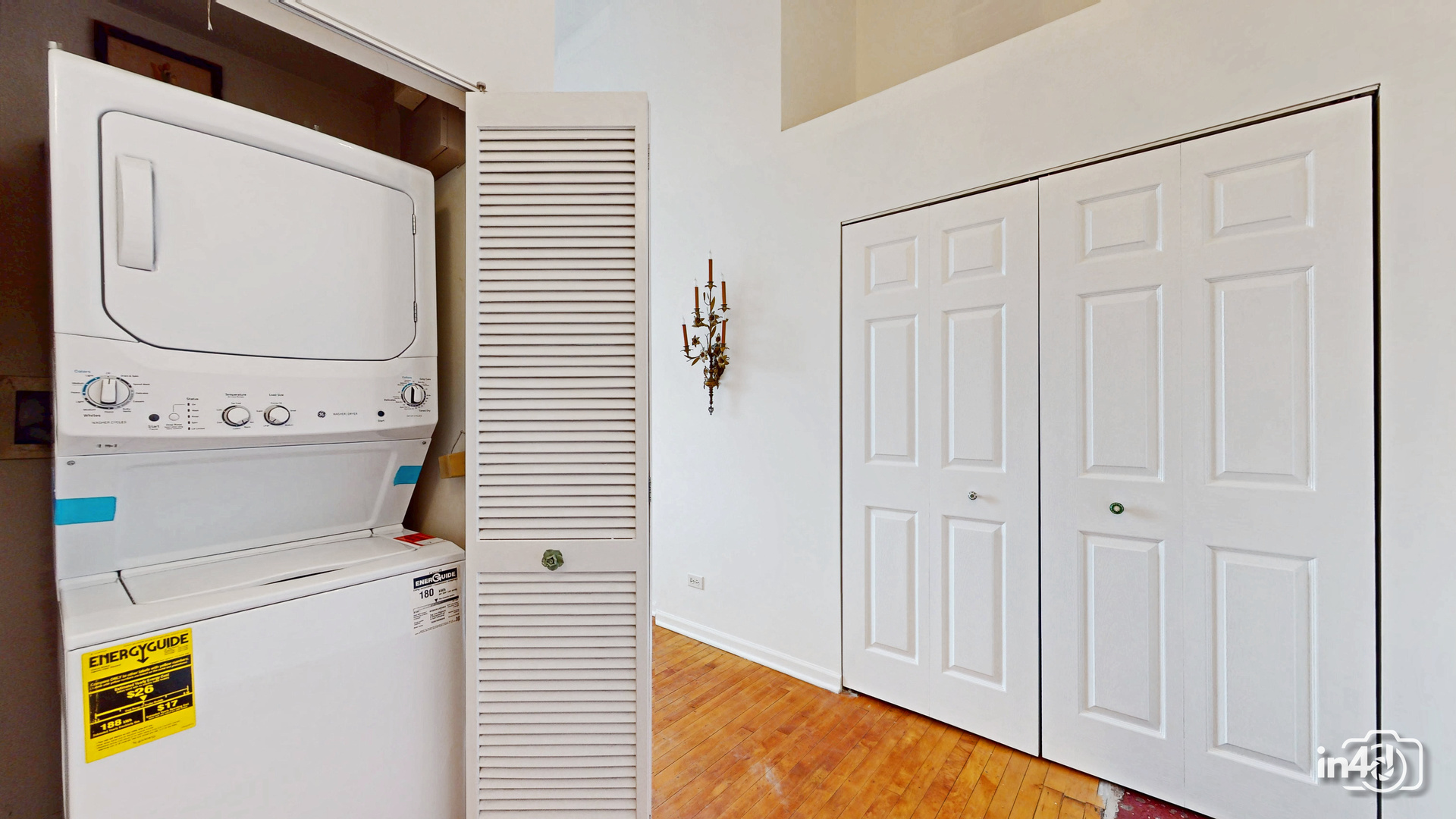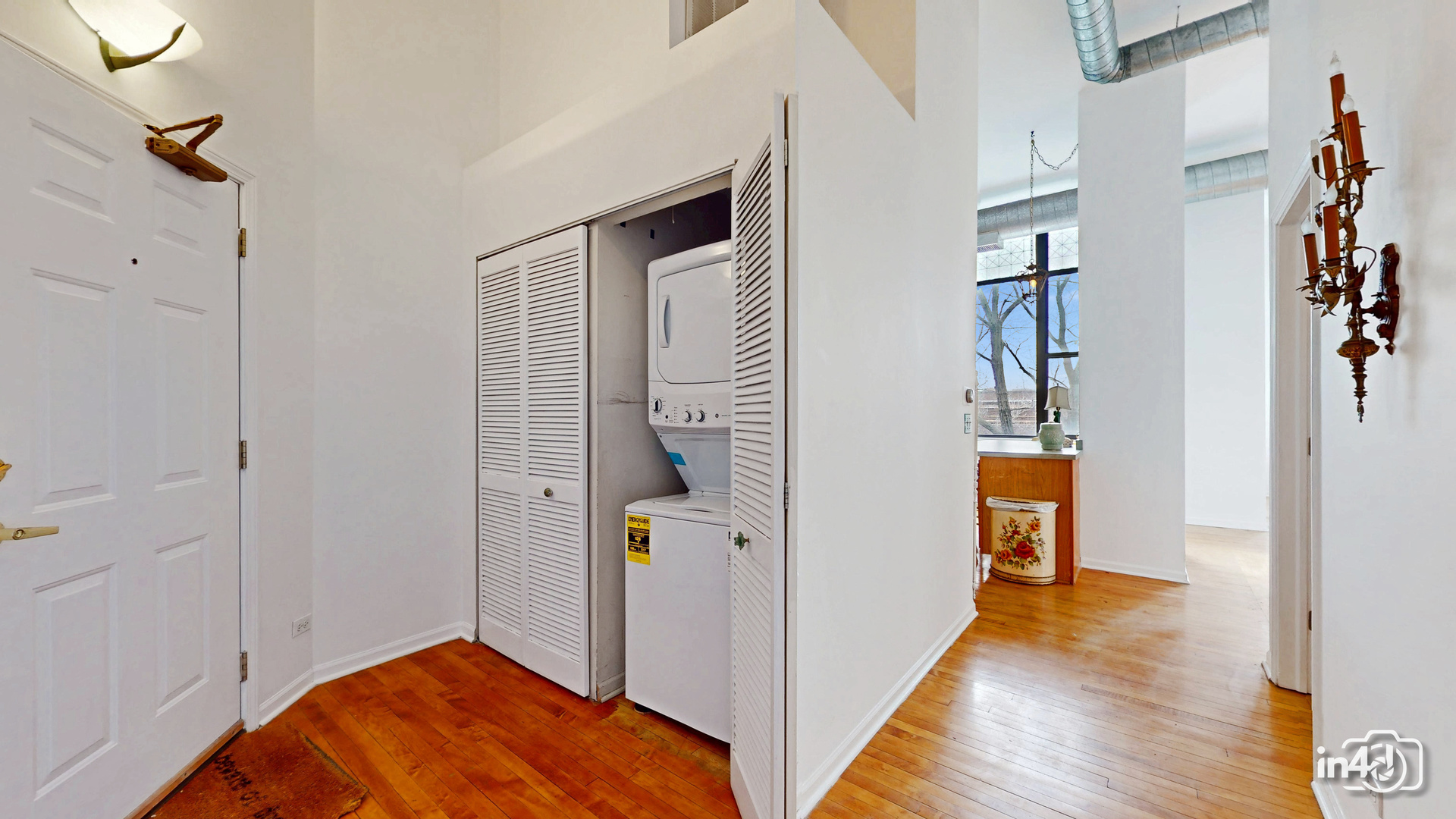 Nestled away in the heart of the Ukrainian Village, this soft loft invites you into a space where charm meets modern comfort. One of only 18 unique residences in this well-managed pet-friendly building, this 1 bedroom plus den (which can easily be used as a second bedroom) 1.5 bathroom offers a warm feel. Soaring ceilings show the exposed ductwork and creates an airy ambiance as the hardwood floors stretch across the open layout. An impressive two-sided fireplace is perfect for a chilly Chicago evening. The massive windows allow sunlight to pour through and give you beautiful city views. The kitchen has been outfitted with newer stainless-steel appliances and perfectly connects to the open living space which makes entertaining effortless. The entire unit has been freshly painted and features an in-unit washer/dryer and tons of closet and storage space. There are an abundance of entertainment options close by from acclaimed restaurants to charming shops and travel is always a breeze with the highway in such short proximity. No need to look for a parking spot when you come home after a long day, this unit comes with a deeded outdoor parking space. This urban retreat blends style, function and location so call today to schedule your tour.