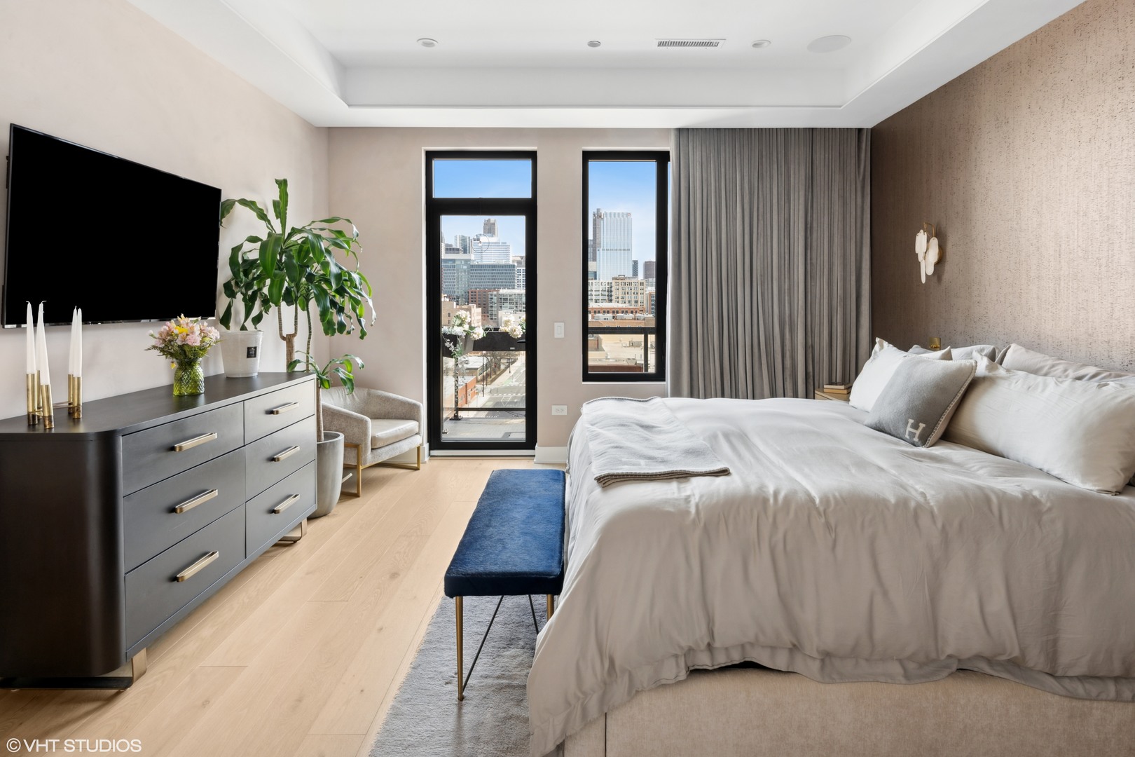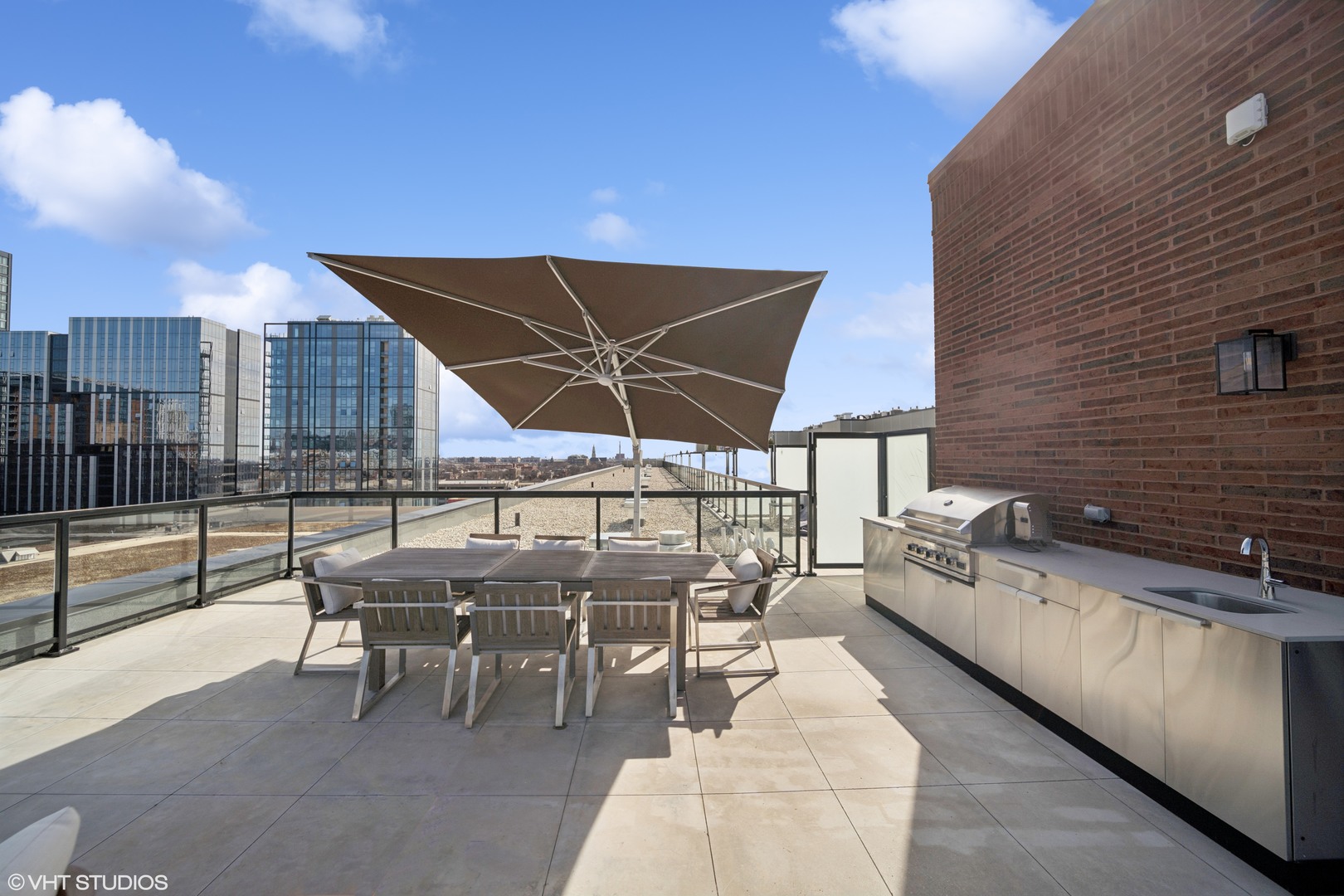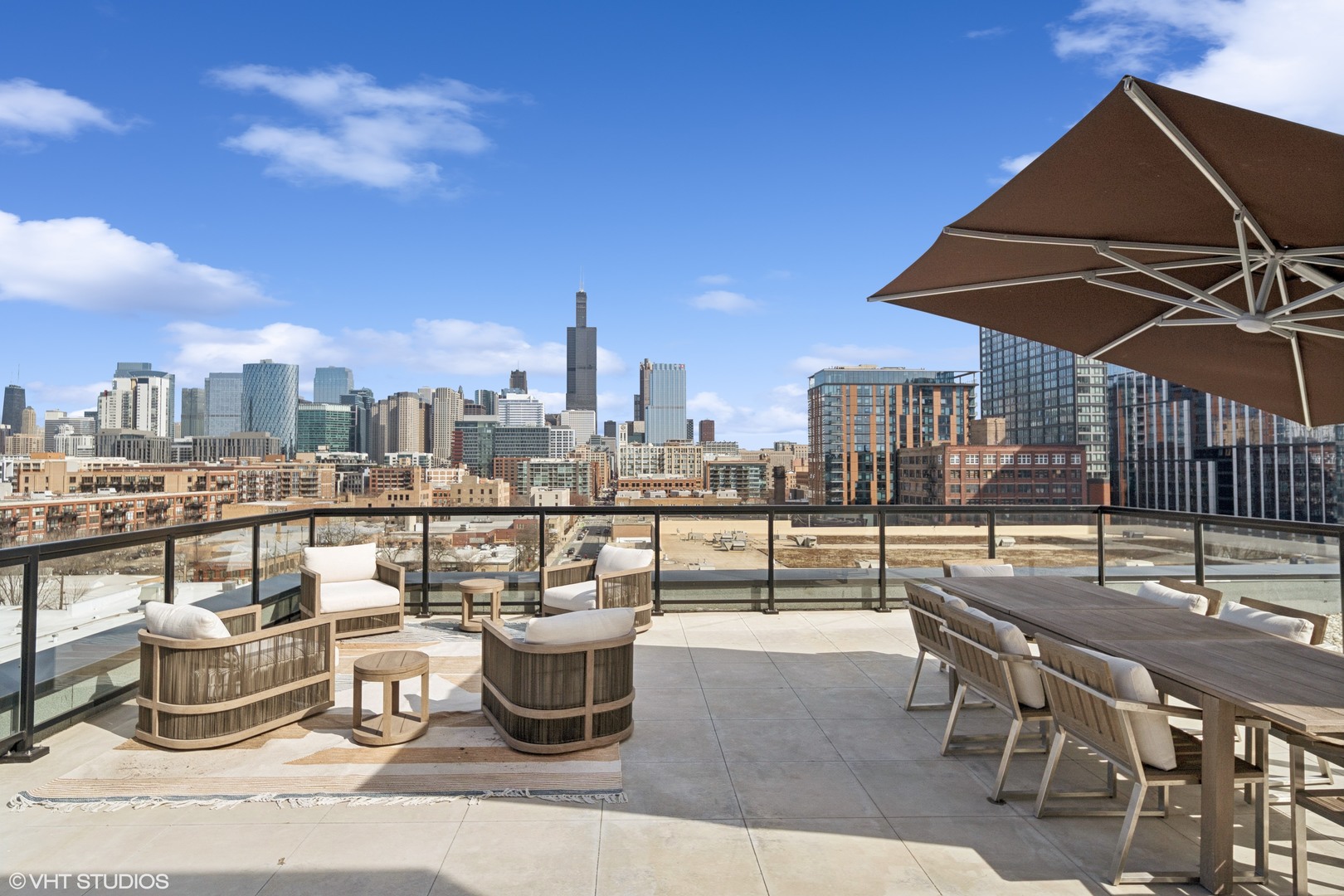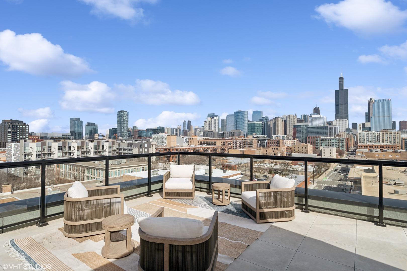 New Construction Duplex PENTHOUSE in the heart of the West Loop! This stunning 4 BEDROOM / 4.5 BATH + Office, Belgravia luxury development offers 3,179sf of interior living space and an additional 815sf PRIVATE ROOFTOP TERRACE with an outdoor kitchen, making this one of the largest private rooftops in the West Loop! With completely unobstructed city skyline views, this is the ONLY Penthouse in the building with 270-degree views from the main living area! This sun-filled condo includes 200K of developer upgrades and an additional 500K of post-construction custom upgrades, making this the most desirable Penthouse in the building! Parking for 2 cars is equipped with an EV charger inside the spacious heated garage. Some of the many interior features include a custom-built, ventless gas fireplace with Calacatta Oro stone face and Dekton stone cantilever bench with under lighting and a chef's kitchen with [calcutta stone] backsplash and island with waterfall, along with SubZero refrigerator, beverage fridge and tall wine fridge and Wolf stovetop and double ovens. Toto floor mount lavatories, fully automated blinds and drapery, electronic touch pads in multiple rooms for climate control, blinds/drapery as well the home audio/video throughout the entire home! Oversized solid-core doors, windows throughout the unit for sun-filled rooms, two additional outdoor terraces and 10' ceilings make this already massive living space feel even larger! All of the bathrooms are completely custom. Some features include a LACAVA freestanding vanity, stone mosaic flooring, Gucci custom wallpaper, Phillip Jefferies wallpaper, upgraded Robern medicine cabinets with internal and external lighting, Graff faucets and heated floors for those brisk winter mornings! In addition to the spa-quality master bath, the primary bedroom is generously sized with a custom 15'X6' runway-style closet with internal lighting, audio, boutique jewelry cases, hanging valets with steam setup and a hidden wardrobe. The second living area is located on the upper level of the home perfect for a large home office or a family room. This large 22'X17' space is sundrenched with large windows to the north and to the east, showcasing the incredible unobstructed city views! The laundry room is equipped with full-sized front loaders and a cutom-built Dog Bath. Along with the endless upscale restaurants the West Loop has to offer, this property is also located steps from shopping, grocery, nightlife, Mary Bartelme Park, Whitney Young H.S. and inside of Skinner School District! -- Owner Occupied until May. Reciepts of upgrades available upon request.