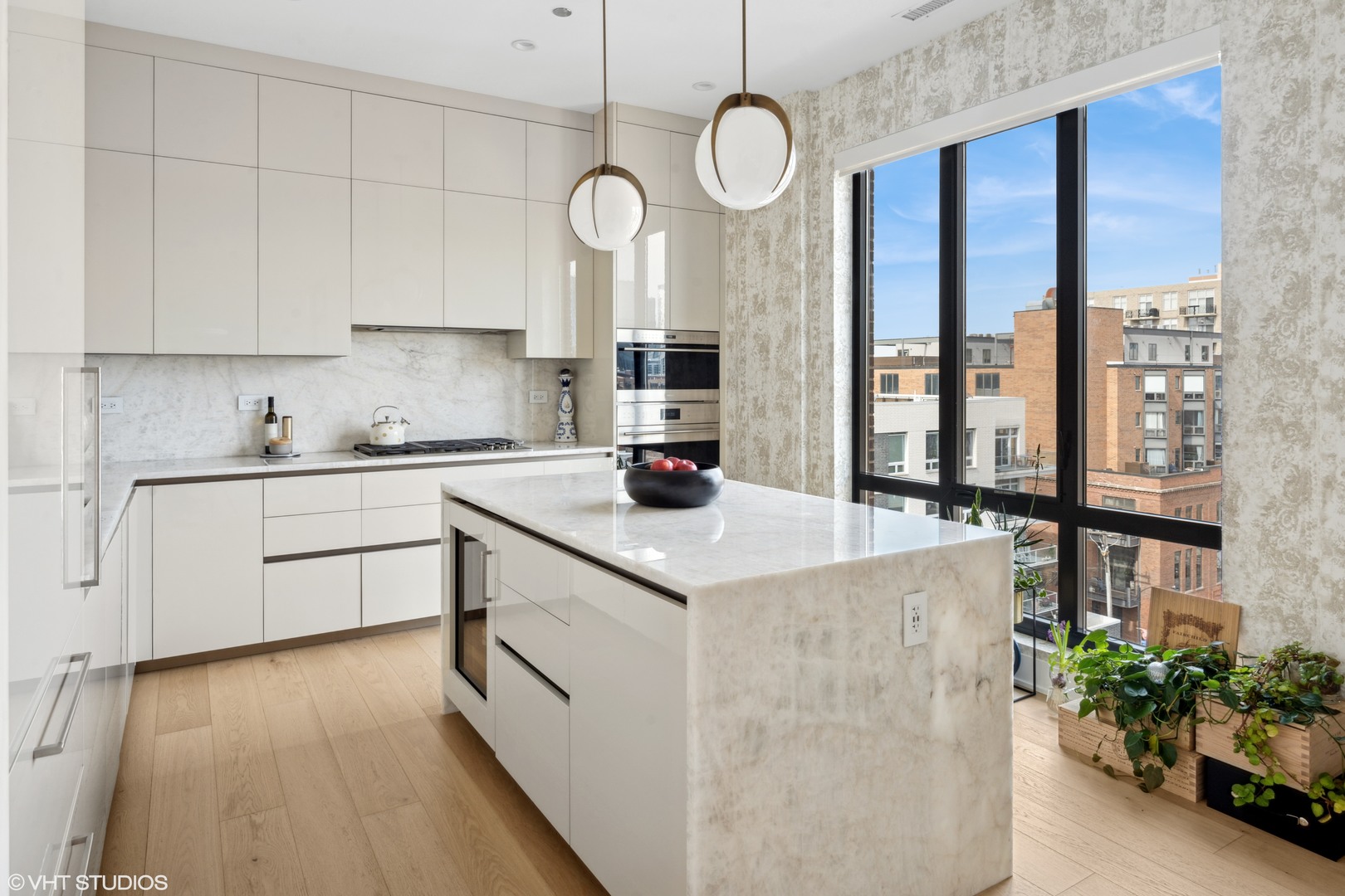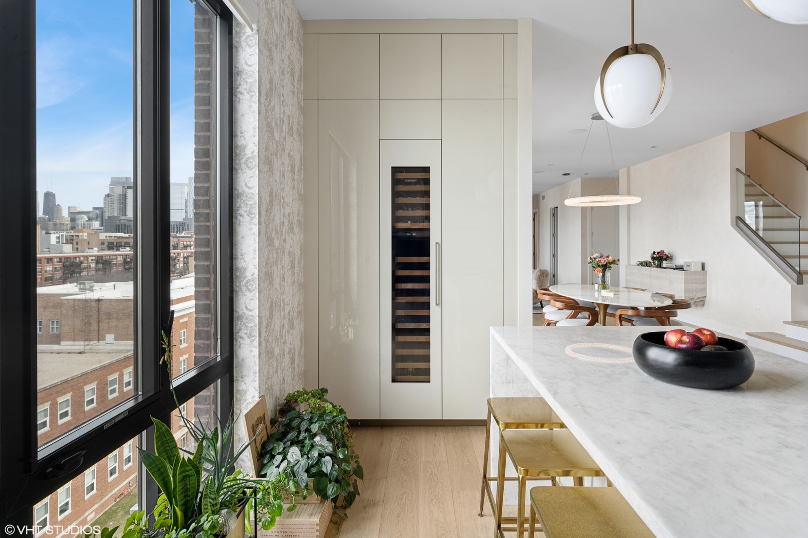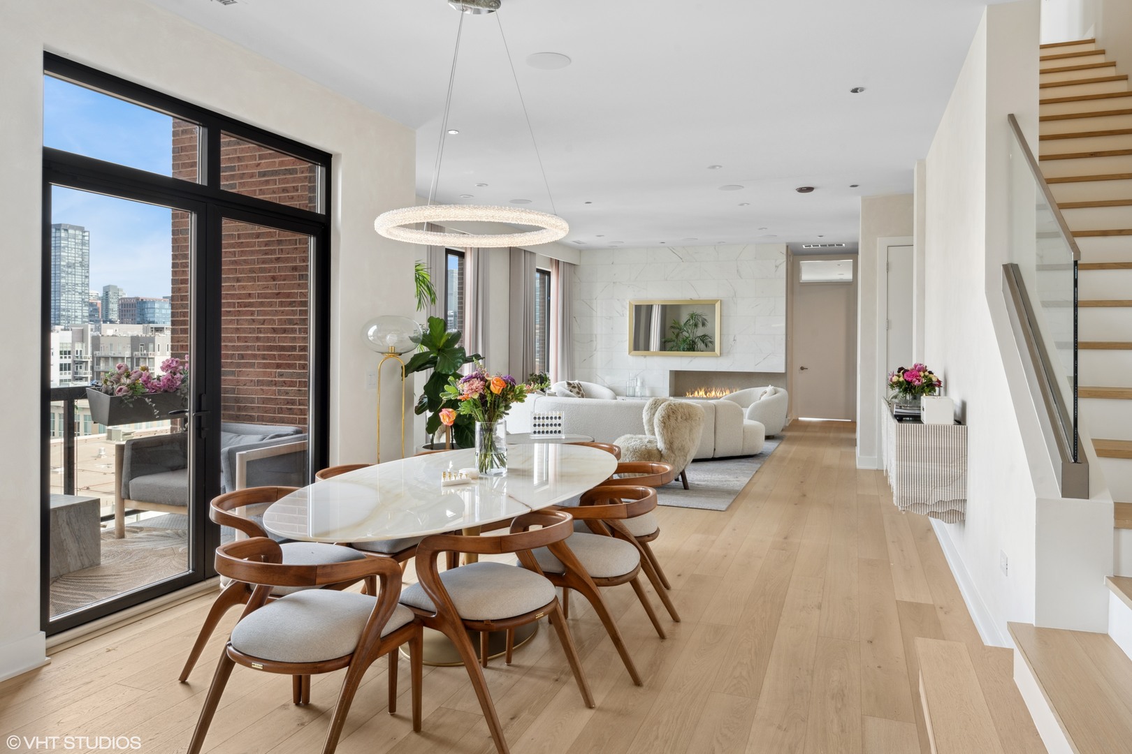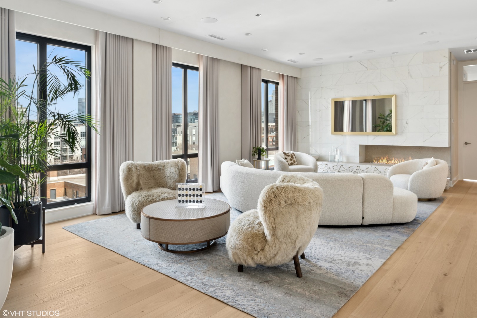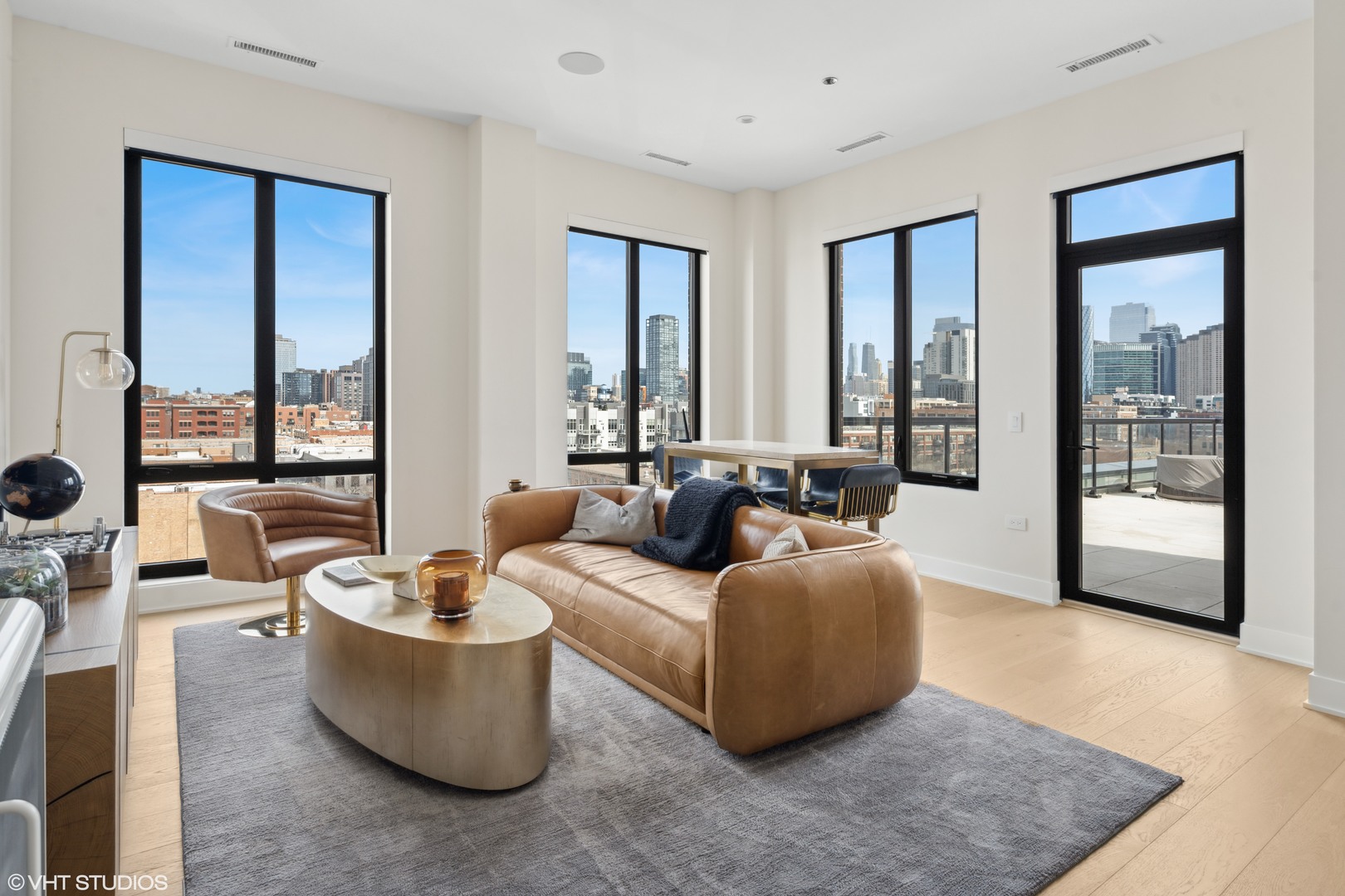 New Construction Duplex PENTHOUSE in the heart of the West Loop! This stunning 4 BEDROOM / 4.5 BATH + Office, Belgravia luxury development offers 3,179sf of interior living space and an additional 815sf PRIVATE ROOFTOP TERRACE with an outdoor kitchen, making this one of the largest private rooftops in the West Loop! With completely unobstructed city skyline views, this is the ONLY Penthouse in the building with 270-degree views from the main living area! This sun-filled condo includes 200K of developer upgrades and an additional 500K of post-construction custom upgrades, making this the most desirable Penthouse in the building! Parking for 2 cars is equipped with an EV charger inside the spacious heated garage. Some of the many interior features include a custom-built, ventless gas fireplace with Calacatta Oro stone face and Dekton stone cantilever bench with under lighting and a chef's kitchen with [calcutta stone] backsplash and island with waterfall, along with SubZero refrigerator, beverage fridge and tall wine fridge and Wolf stovetop and double ovens. Toto floor mount lavatories, fully automated blinds and drapery, electronic touch pads in multiple rooms for climate control, blinds/drapery as well the home audio/video throughout the entire home! Oversized solid-core doors, windows throughout the unit for sun-filled rooms, two additional outdoor terraces and 10' ceilings make this already massive living space feel even larger! All of the bathrooms are completely custom. Some features include a LACAVA freestanding vanity, stone mosaic flooring, Gucci custom wallpaper, Phillip Jefferies wallpaper, upgraded Robern medicine cabinets with internal and external lighting, Graff faucets and heated floors for those brisk winter mornings! In addition to the spa-quality master bath, the primary bedroom is generously sized with a custom 15'X6' runway-style closet with internal lighting, audio, boutique jewelry cases, hanging valets with steam setup and a hidden wardrobe. The second living area is located on the upper level of the home perfect for a large home office or a family room. This large 22'X17' space is sundrenched with large windows to the north and to the east, showcasing the incredible unobstructed city views! The laundry room is equipped with full-sized front loaders and a cutom-built Dog Bath. Along with the endless upscale restaurants the West Loop has to offer, this property is also located steps from shopping, grocery, nightlife, Mary Bartelme Park, Whitney Young H.S. and inside of Skinner School District! -- Owner Occupied until May. Reciepts of upgrades available upon request.