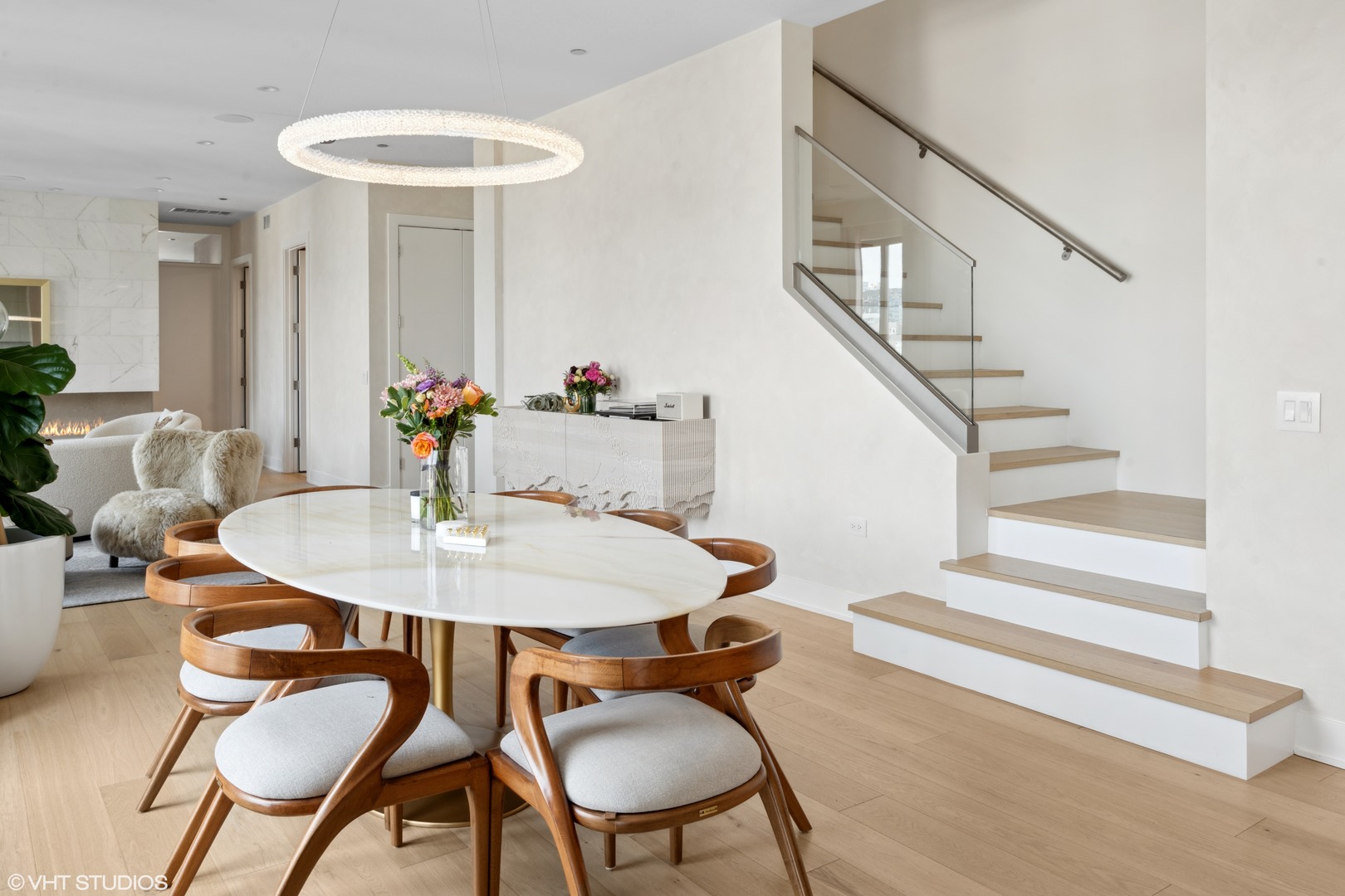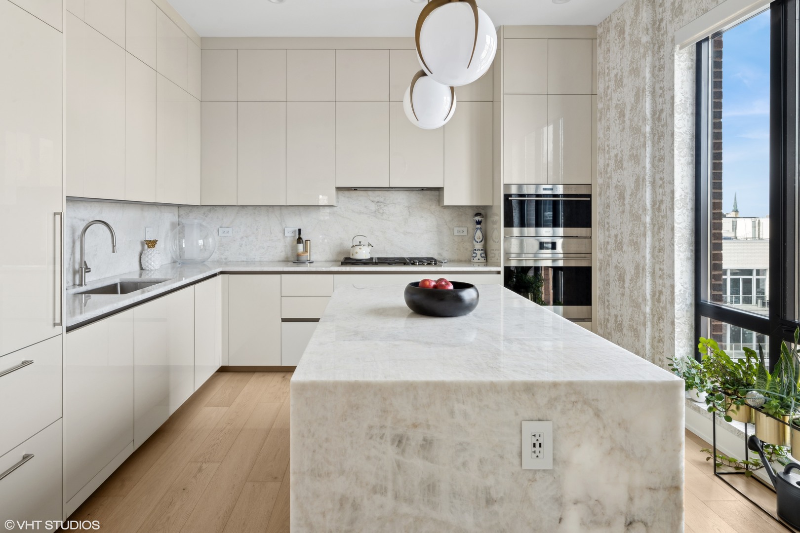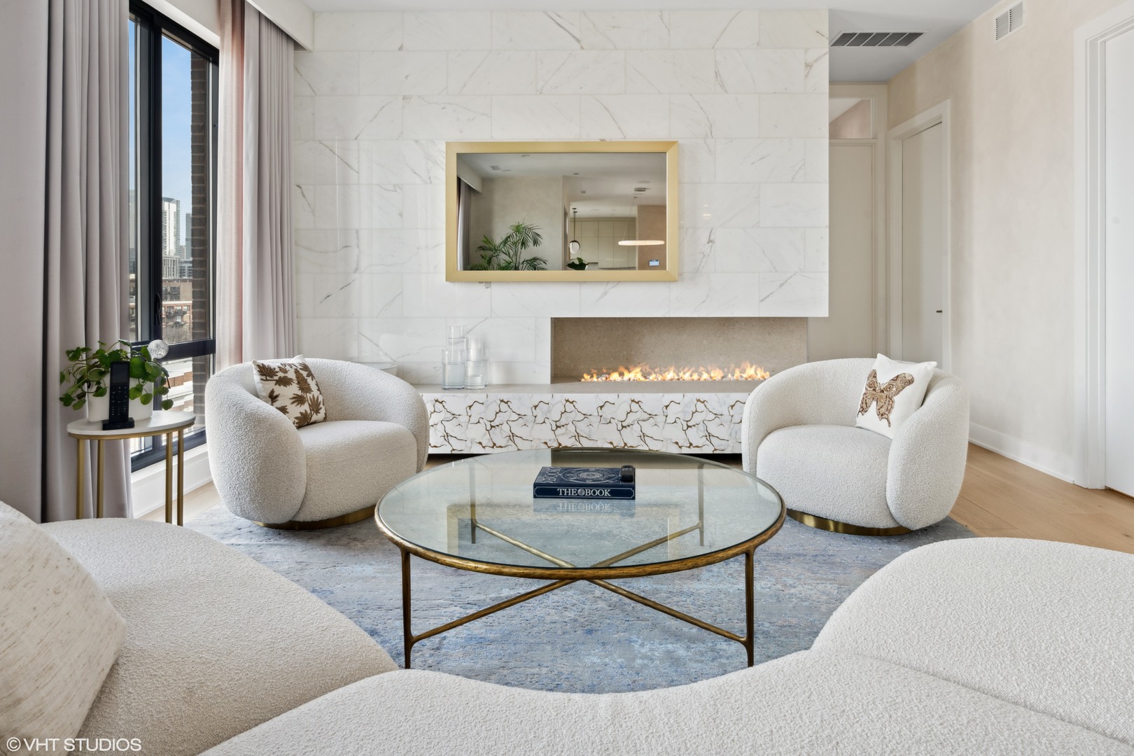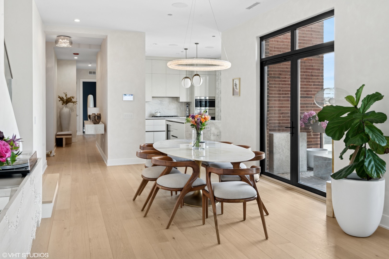 New Construction Duplex PENTHOUSE in the heart of the West Loop! This stunning 4 BEDROOM / 4.5 BATH + Office, Belgravia luxury development offers 3,179sf of interior living space and an additional 815sf PRIVATE ROOFTOP TERRACE with an outdoor kitchen, making this one of the largest private rooftops in the West Loop! With completely unobstructed city skyline views, this is the ONLY Penthouse in the building with 270-degree views from the main living area! This sun-filled condo includes 200K of developer upgrades and an additional 500K of post-construction custom upgrades, making this the most desirable Penthouse in the building! Parking for 2 cars is equipped with an EV charger inside the spacious heated garage. Some of the many interior features include a custom-built, ventless gas fireplace with Calacatta Oro stone face and Dekton stone cantilever bench with under lighting and a chef's kitchen with [calcutta stone] backsplash and island with waterfall, along with SubZero refrigerator, beverage fridge and tall wine fridge and Wolf stovetop and double ovens. Toto floor mount lavatories, fully automated blinds and drapery, electronic touch pads in multiple rooms for climate control, blinds/drapery as well the home audio/video throughout the entire home! Oversized solid-core doors, windows throughout the unit for sun-filled rooms, two additional outdoor terraces and 10' ceilings make this already massive living space feel even larger! All of the bathrooms are completely custom. Some features include a LACAVA freestanding vanity, stone mosaic flooring, Gucci custom wallpaper, Phillip Jefferies wallpaper, upgraded Robern medicine cabinets with internal and external lighting, Graff faucets and heated floors for those brisk winter mornings! In addition to the spa-quality master bath, the primary bedroom is generously sized with a custom 15'X6' runway-style closet with internal lighting, audio, boutique jewelry cases, hanging valets with steam setup and a hidden wardrobe. The second living area is located on the upper level of the home perfect for a large home office or a family room. This large 22'X17' space is sundrenched with large windows to the north and to the east, showcasing the incredible unobstructed city views! The laundry room is equipped with full-sized front loaders and a cutom-built Dog Bath. Along with the endless upscale restaurants the West Loop has to offer, this property is also located steps from shopping, grocery, nightlife, Mary Bartelme Park, Whitney Young H.S. and inside of Skinner School District! -- Owner Occupied until May. Reciepts of upgrades available upon request.
