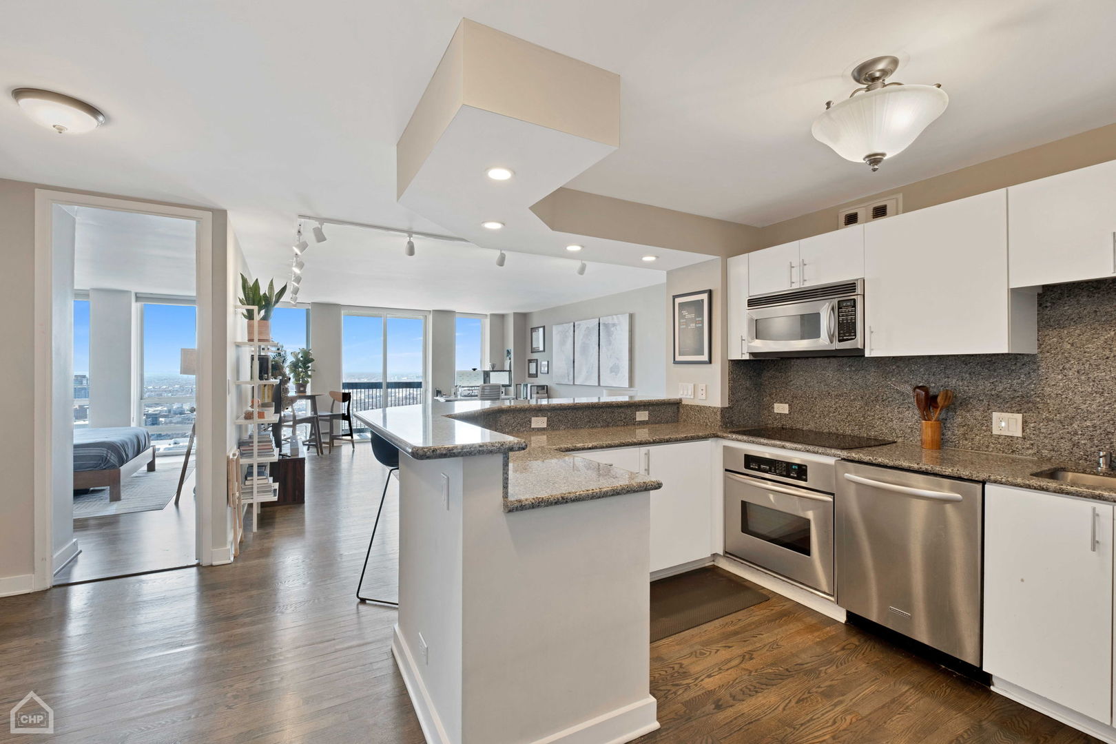 Experience Condo Living at its Finest! This stunning 1bed/1bath high-floor unit sits above the rest and is Move In Ready. Enjoy all of the bells and whistles including a Beautiful Expansive and Open Kitchen - Hardwood Flooring - Customized Built In Cabinetry - Spacious Unit with Work From Home Lifestyle - Floor to Ceiling Windows - Private Balcony with Stunning Western Views - Closets/Storage Galore! Enjoy the sunlight that floods in during the day and mesmerizing sunsets at night. 1660 is a full amenity building with 24-hour door staff, fitness center, outdoor pool, beautiful rooftop deck with jaw dropping views of the lake and skyline, newly renovated party room, dry cleaners, laundry room, etc. Attached garage parking available for rent starting at $121. Unbeatable Old Town location across Lake Michigan, Parks and Wells Street. CTA - 156 bus stops directly in front of building, 22 bus across the street, Brown and Red lines just a short walk. Enjoy all of the Wells St action through the back of the building; restaurants, coffee shops, salons, nightlife, entertainment, etc. Annual neighborhood highlights include the Old Town/Wells Street Art Fair and the annual Air and Water Show. Summer Farmer's Market at Lincoln Park every Wednesday & Saturday. Extremely healthy building with $14.1M in reserves (as of 1/31/25). 1660 has never had a special assessment. Investor friendly with strong rental prices in building. No rental restrictions except must be a minimum of a 12-month lease. 1660 is a non-dog friendly building.