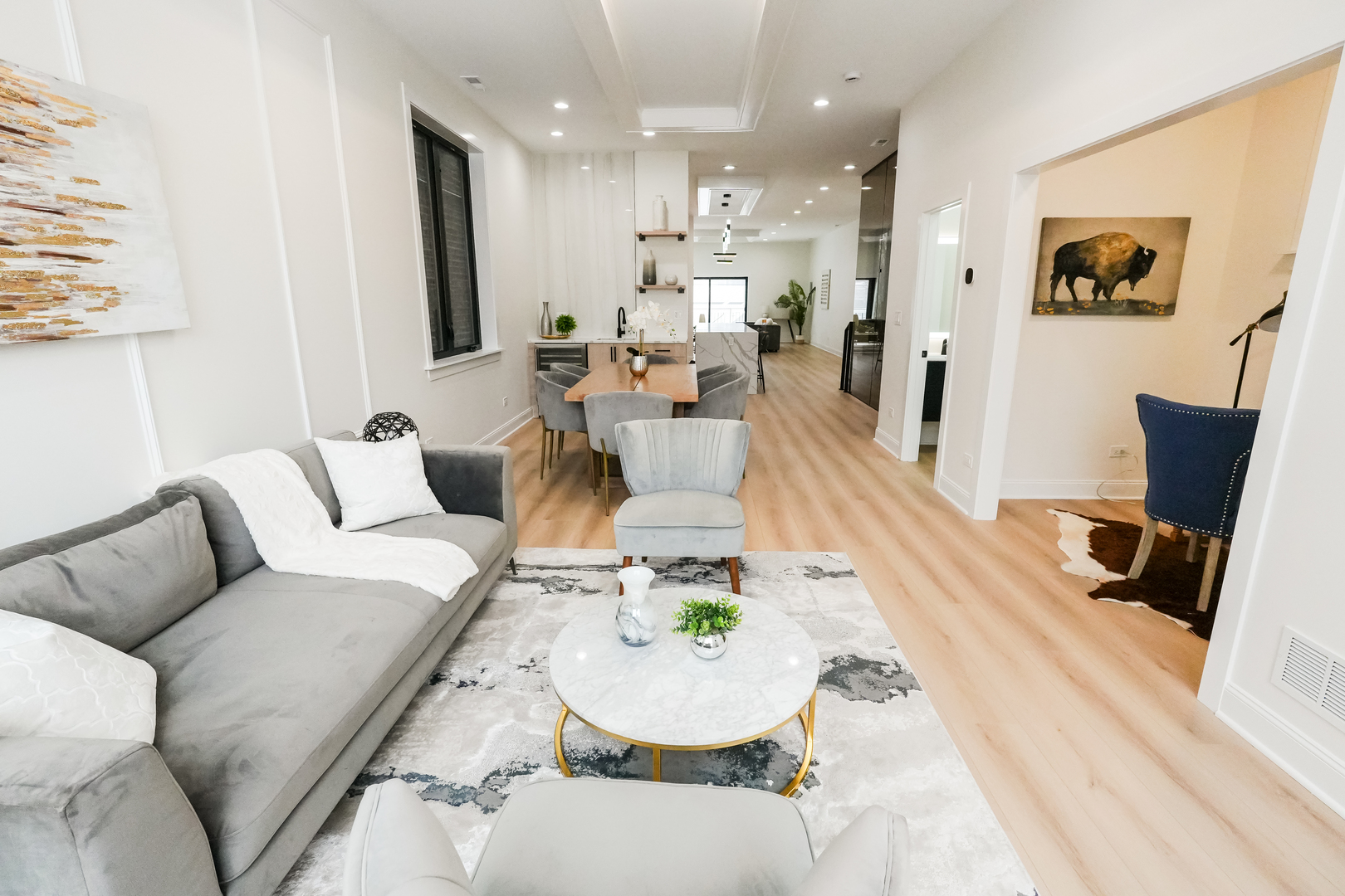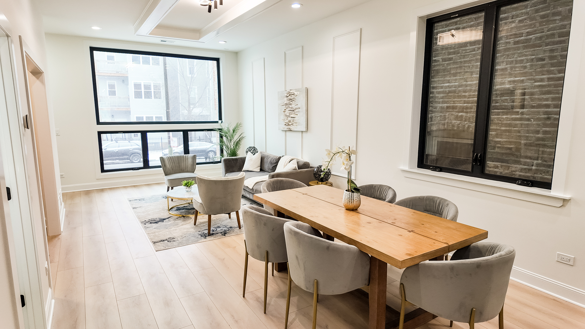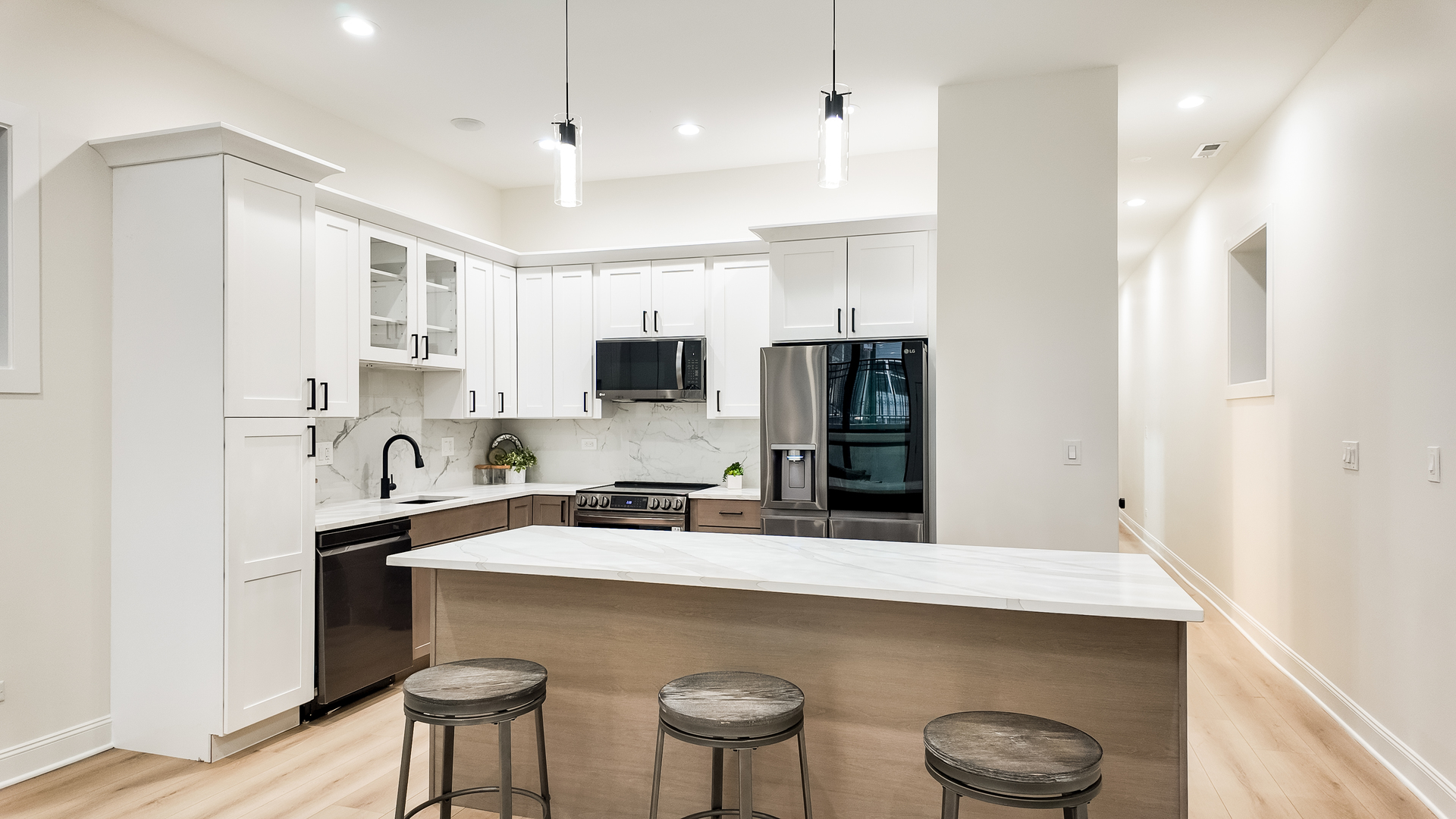 Welcome to 1832 N. Kimball, a stunning new construction luxury 2-flat in the heart of Chicago's sought-after Logan Square neighborhood. This meticulously designed property offers an exceptional opportunity for both homeowners and investors. Unit A (Owner's Duplex): Featuring 3 spacious bedrooms, each with its own ensuite bath, plus an additional powder room. The open-concept floor plan is ideal for entertaining, with a chef's kitchen boasting quartz countertops, a waterfall island, premium ZLINE stainless steel appliances, and a walk-in pantry. The expansive living and dining areas feature elegant coffered ceilings and wide plank flooring. Relax in the luxurious primary suite, complete with a fireplace, dual walk-in closets, and a spa-like bath featuring a soaking tub, glass-enclosed walk-in shower with dual heads, and double vanities. Enjoy breathtaking city views from the massive rooftop deck, perfect for entertaining with gas and water lines for easy outdoor dining. Garden Unit (In-Law Suite or Rental): This well-appointed unit includes 2 bedrooms, each with an ensuite bath, an open floor plan with a modern kitchen featuring quartz countertops and stainless steel appliances, and a bright, airy living space. A separate entrance and private laundry make this unit ideal for guests, extended family, or rental income. The property also features a fully fenced yard and two rooftop decks, including a garage rooftop deck perfect for summer gatherings. With separate utilities and HVAC systems for each unit, privacy and convenience are ensured. Prime Logan Square Location: Just steps from the Healy Metra stop, you can reach downtown Chicago or O'Hare International Airport with ease. The vibrant Logan Square community offers award-winning restaurants, trendy cafes, boutique shopping, and the beloved 606 Trail. Enjoy the renowned Logan Square Farmers Market and easy access to Armitage Avenue's dining scene. This is more than a home; it's a lifestyle. Experience the perfect blend of luxury, comfort, and investment potential in one of Chicago's most desirable neighborhoods. Schedule your private tour today!