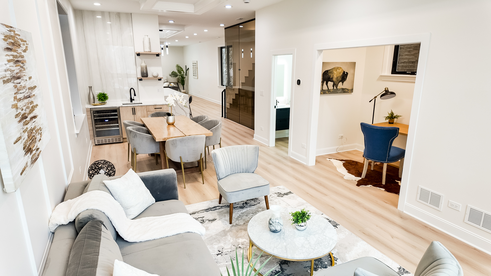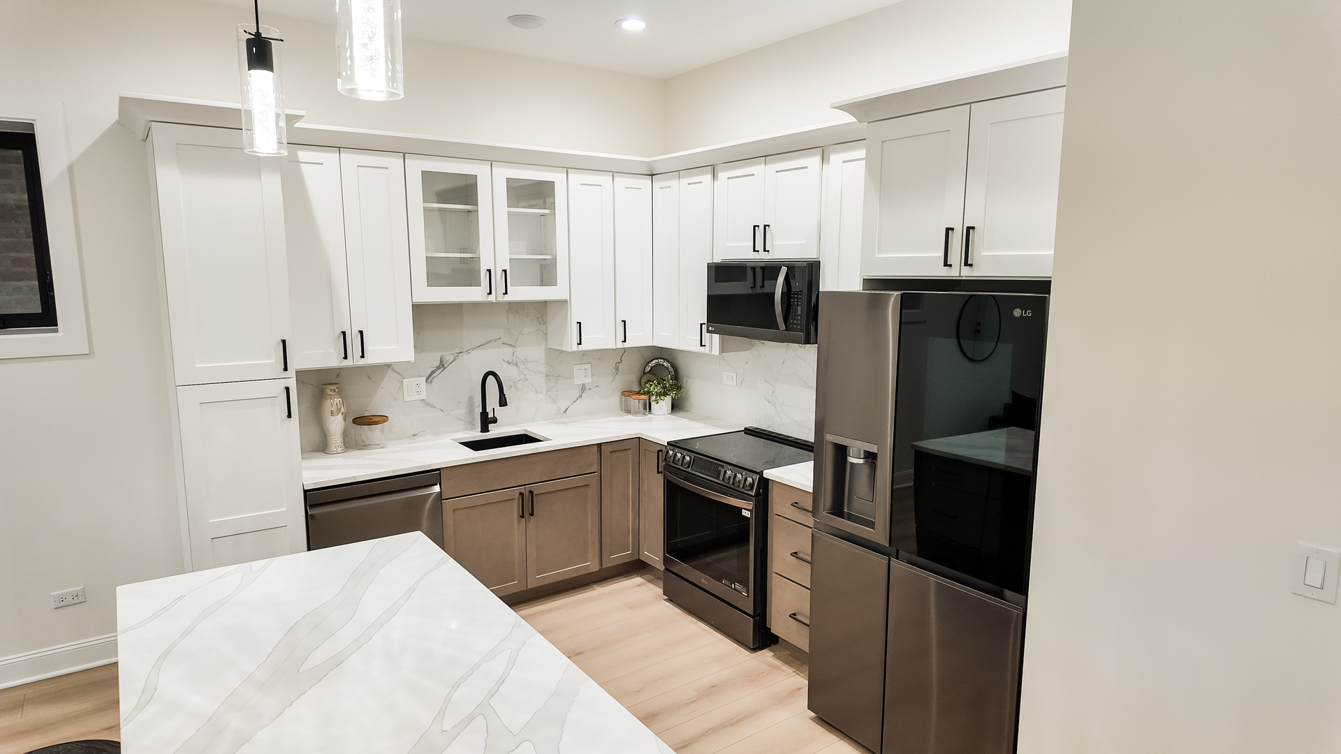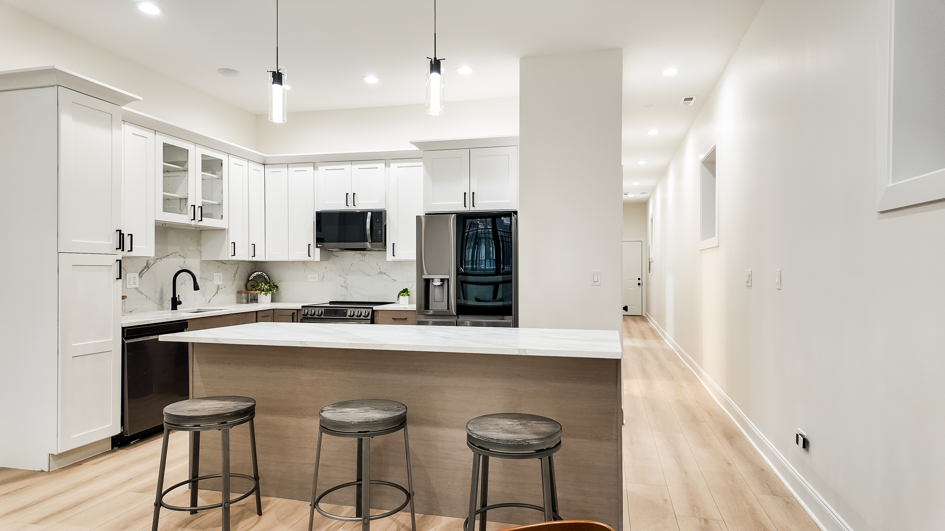 Welcome to 1832 N. Kimball, a stunning new construction luxury 2-flat in the heart of Chicago's sought-after Logan Square neighborhood. This meticulously designed property offers an exceptional opportunity for both homeowners and investors. Unit A (Owner's Duplex): Featuring 3 spacious bedrooms, each with its own ensuite bath, plus an additional powder room. The open-concept floor plan is ideal for entertaining, with a chef's kitchen boasting quartz countertops, a waterfall island, premium ZLINE stainless steel appliances, and a walk-in pantry. The expansive living and dining areas feature elegant coffered ceilings and wide plank flooring. Relax in the luxurious primary suite, complete with a fireplace, dual walk-in closets, and a spa-like bath featuring a soaking tub, glass-enclosed walk-in shower with dual heads, and double vanities. Enjoy breathtaking city views from the massive rooftop deck, perfect for entertaining with gas and water lines for easy outdoor dining. Garden Unit (In-Law Suite or Rental): This well-appointed unit includes 2 bedrooms, each with an ensuite bath, an open floor plan with a modern kitchen featuring quartz countertops and stainless steel appliances, and a bright, airy living space. A separate entrance and private laundry make this unit ideal for guests, extended family, or rental income. The property also features a fully fenced yard and two rooftop decks, including a garage rooftop deck perfect for summer gatherings. With separate utilities and HVAC systems for each unit, privacy and convenience are ensured. Prime Logan Square Location: Just steps from the Healy Metra stop, you can reach downtown Chicago or O'Hare International Airport with ease. The vibrant Logan Square community offers award-winning restaurants, trendy cafes, boutique shopping, and the beloved 606 Trail. Enjoy the renowned Logan Square Farmers Market and easy access to Armitage Avenue's dining scene. This is more than a home; it's a lifestyle. Experience the perfect blend of luxury, comfort, and investment potential in one of Chicago's most desirable neighborhoods. Schedule your private tour today!