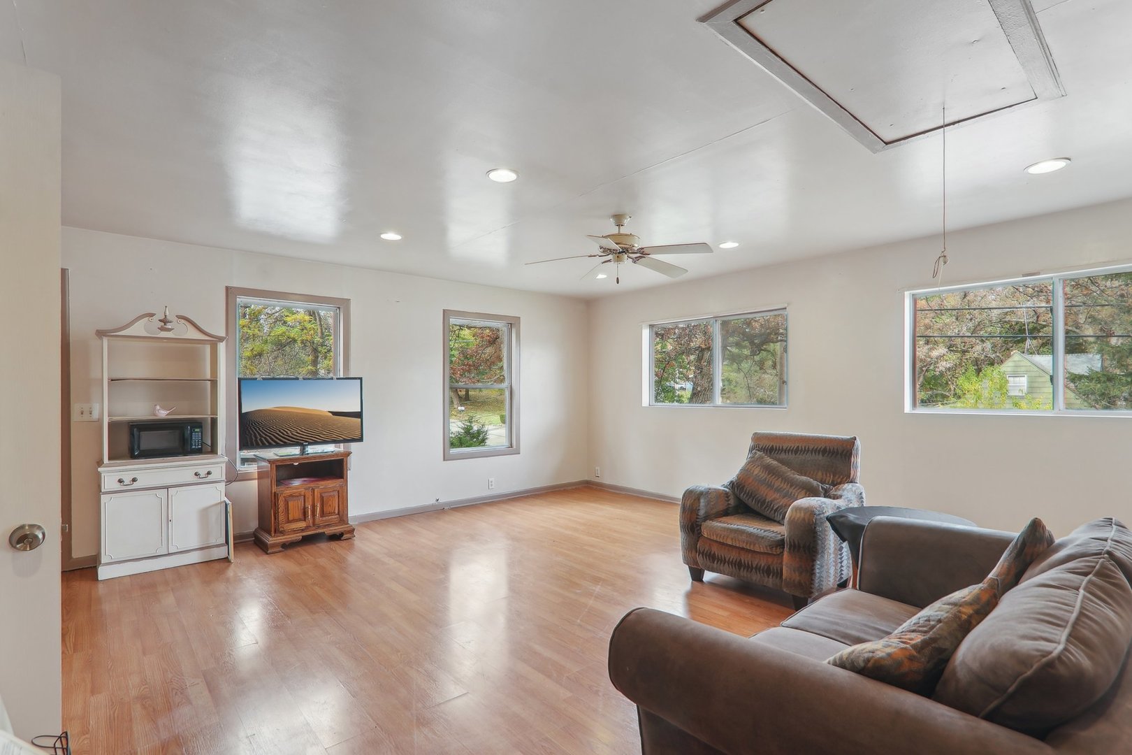This 3-bed/2-bath Wooded Shores home offers space, privacy, & unbeatable versatility! Sitting on a large lot backed by trees, enjoy peaceful surroundings with no backyard neighbors-just nature at its best. Step inside & discover a smart, functional layout designed to make everyday living easier. The main level offers a bright eat-in kitchen, a first-floor bedroom with sunroom access, & a laundry room-because convenience matters. On the second floor, you'll find a spacious living room, primary bedroom, guest bedroom, & full bath. Now, here's what sets this home apart: the third-floor in-law suite above the attached 2-car garage. With a private entrance, full bath, kitchen area, & balcony, it's the perfect space for extended family or guests to enjoy privacy while staying close. Step outside to mature trees, two storage sheds, and a fenced side patio, perfect for relaxing or entertaining. The best homes bring people together, creating a space where memories are made. Ready to take the first step toward your next chapter?