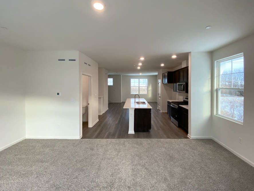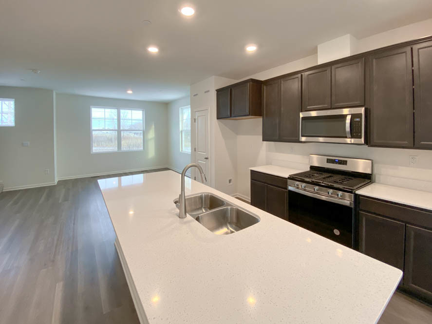 Discover yourself at 2371 Glacier Street in Mundelein, Illinois, a modern new townhome in our Townes at Oak Creek community. This new construction townhome is ready for a quick move-in. Homesite includes a fully sodded yard that is maintained throughout the year as well as snow removal in the winter. Located in Stevenson High School district! This End Unit Gregory townhome plan offers 1,798 square feet of living space with 3 bedrooms, 2.5 baths, and a flex room. As you step inside the front door, you'll be greeted by the flex room, perfect for a home office, playroom, or 2nd family room. Walking up the stairs you will find this home's open concept living with 9-foot ceilings and luxury vinyl plank flooring throughout the main level kitchen and dining, and bathrooms. The expansive kitchen overlooks both the front dining and back great room areas making it the perfect space to entertain. Additionally, your kitchen features Quartz countertops, a large island that is ideal for everyday living, 42 cabinetry with soft close doors and crown molding, stainless steel appliances and pantry. The great room leads out to an elongated deck over the 2-car garage. Arriving at the top floor, you'll find the primary suite, secondary bedrooms with a full second bath, linen closet, and laundry room. Enjoy a spacious primary bedroom suite with a large walk-in closet and connecting en suite bathroom with a walk-in shower. The Townes at Oak Creek will be adjacent to a future dog park, playground and common firepit along with plenty of walking travels. Enjoy being 5 minutes from Hawthorn Mall, a plethora of fabulous restaurants and miles of trails that stretch of over 10 Forest Preserves, while being less than 10 minutes away from 2 Metra Train stations, 30 minutes from O'Hare and easy access to I94/294! Our Chicago home includes our America's Smart Home Technology featuring Smart Home Features including video doorbell, Honeywell thermostat, Door Lock, Garage Door Opener, Deako smart light switches and an Amazon Echo Pop which allows you to monitor and control your home from the comfort of your sofa or far away from your smartphone. Impressive technology and efficiencies give you the most innovative home on the market including ERV furnace system, tankless water heater and Rheia ductwork delivery system. Builder Warranty 1-2-10 is included. Photos are of actual home within construction process.