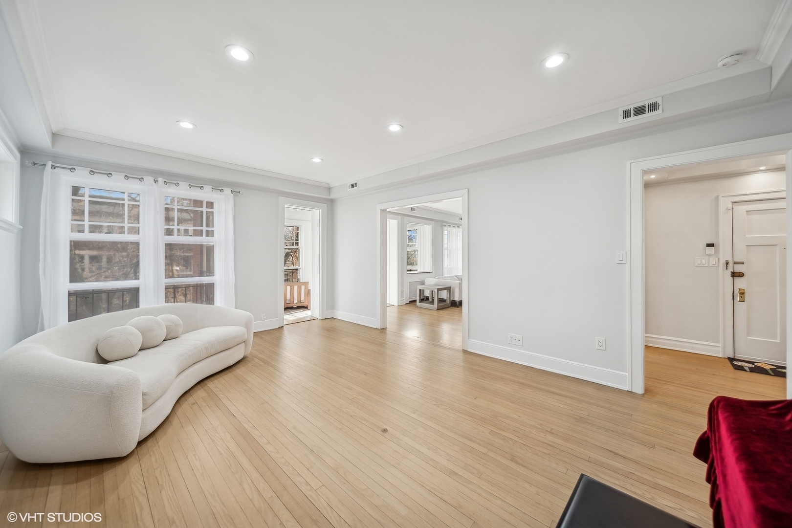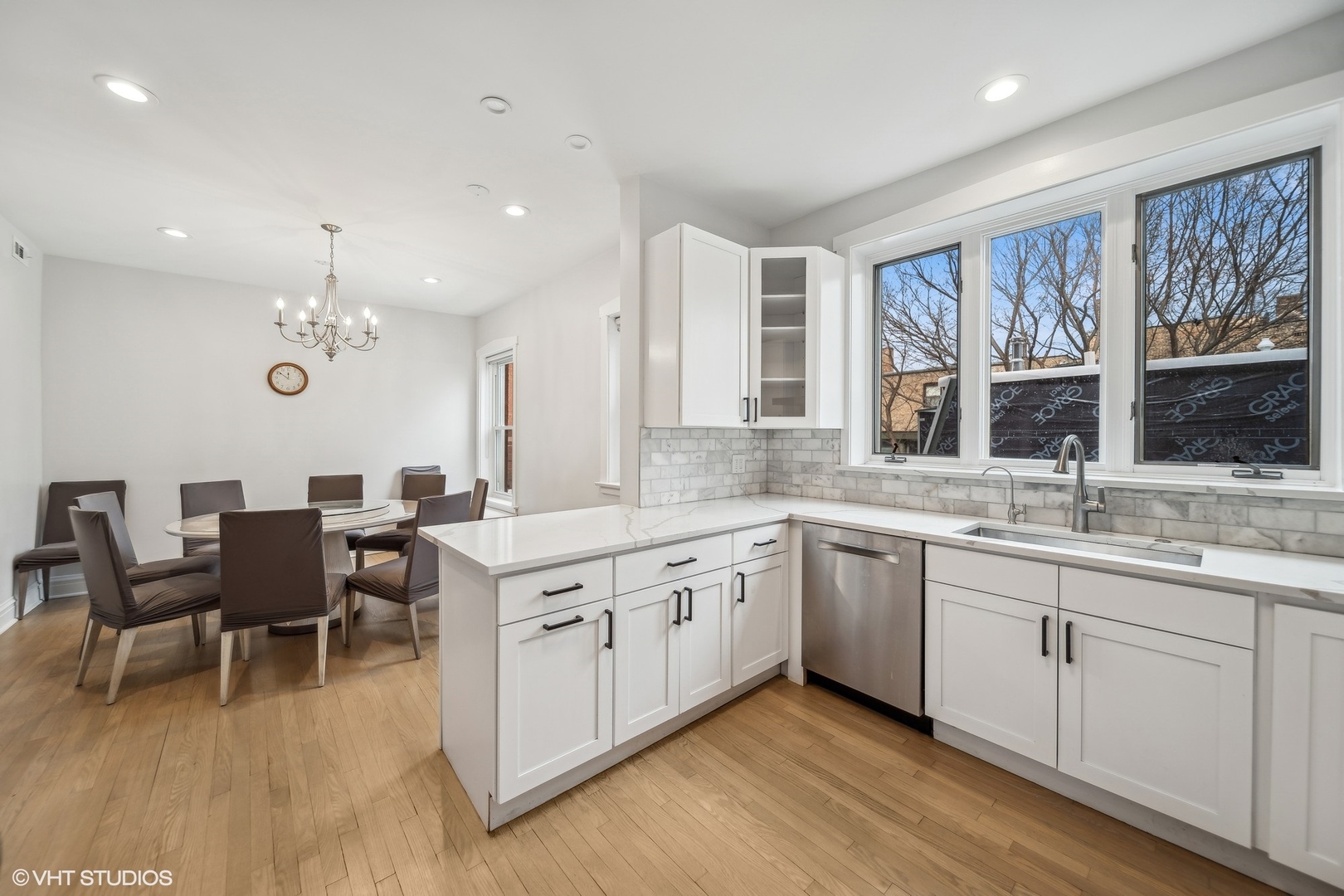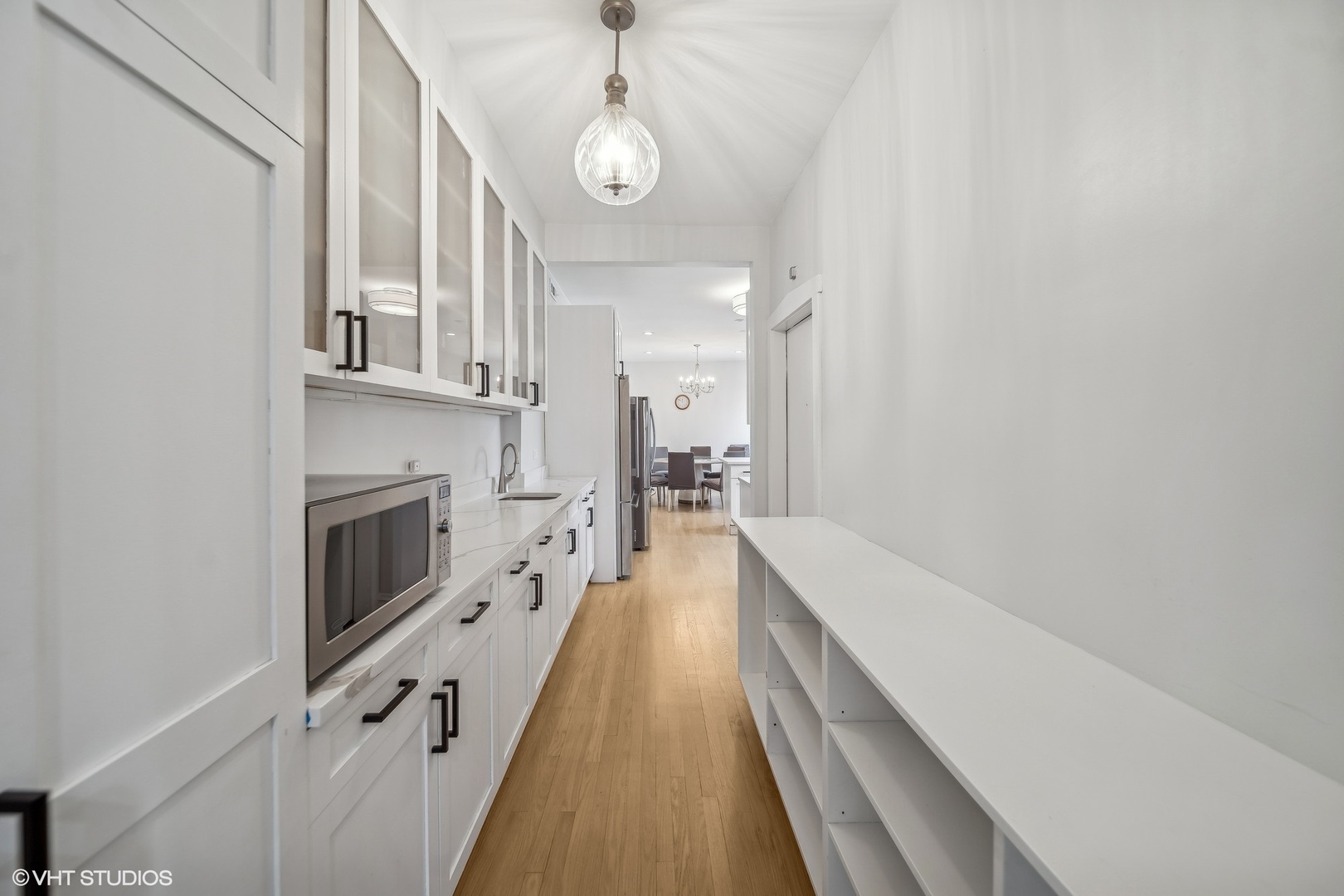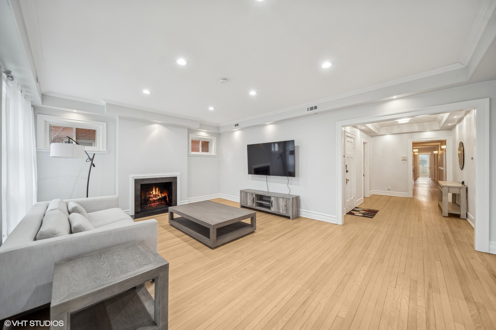 Rarely avail palatial 3200+ Sqft single floor walkup condo in coveted UC campus location. This exquisite 5 bedroom, 4 bath unit retains the character and flow of grandiose residences of yesteryear, while offering modern amenities with an extensive list of upgrades. Upon entering the home, you are greeted by an immense living room with wood burning fireplace and large windows, an adjacent equally sized formal dining room that can also function as a family room, and an amazing sunroom with walls of windows that let in abundance of natural light. The recently upgraded gourmet kitchen features a large butler's pantry, loads of white cabinetry, quartz counters, Viking stove and full suite of stainless steel appliances. The adjoining eating area has seating space for 8 or more. The gigantic primary suite is fitting for loyalty with large walk in closets finished with custom organizers, a stunning bath with soaking tub, walk in shower, double sink vanity and beautiful finishes. There are two more bedroom suites each with its own, recently rehabbed full baths finished with gorgeous tiles, vanities and hardware. The hall full bath is equally dazzling with a custom walk in shower and double sink vanity. The bedrooms are all spacious and upgraded with loads of custom built-ins and closet organizers. Additional features include garage parking and on site storage room. This special home is in one of the best locations in Hyde Park within walking distance to UC Campus, Univ Lab school, The Obama Library, and Metra station.