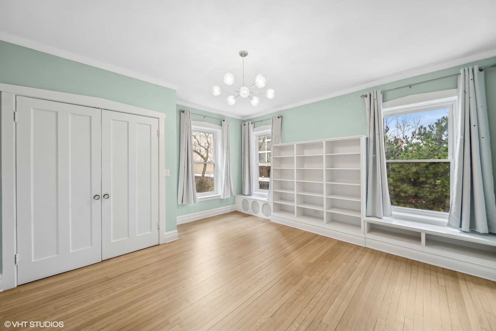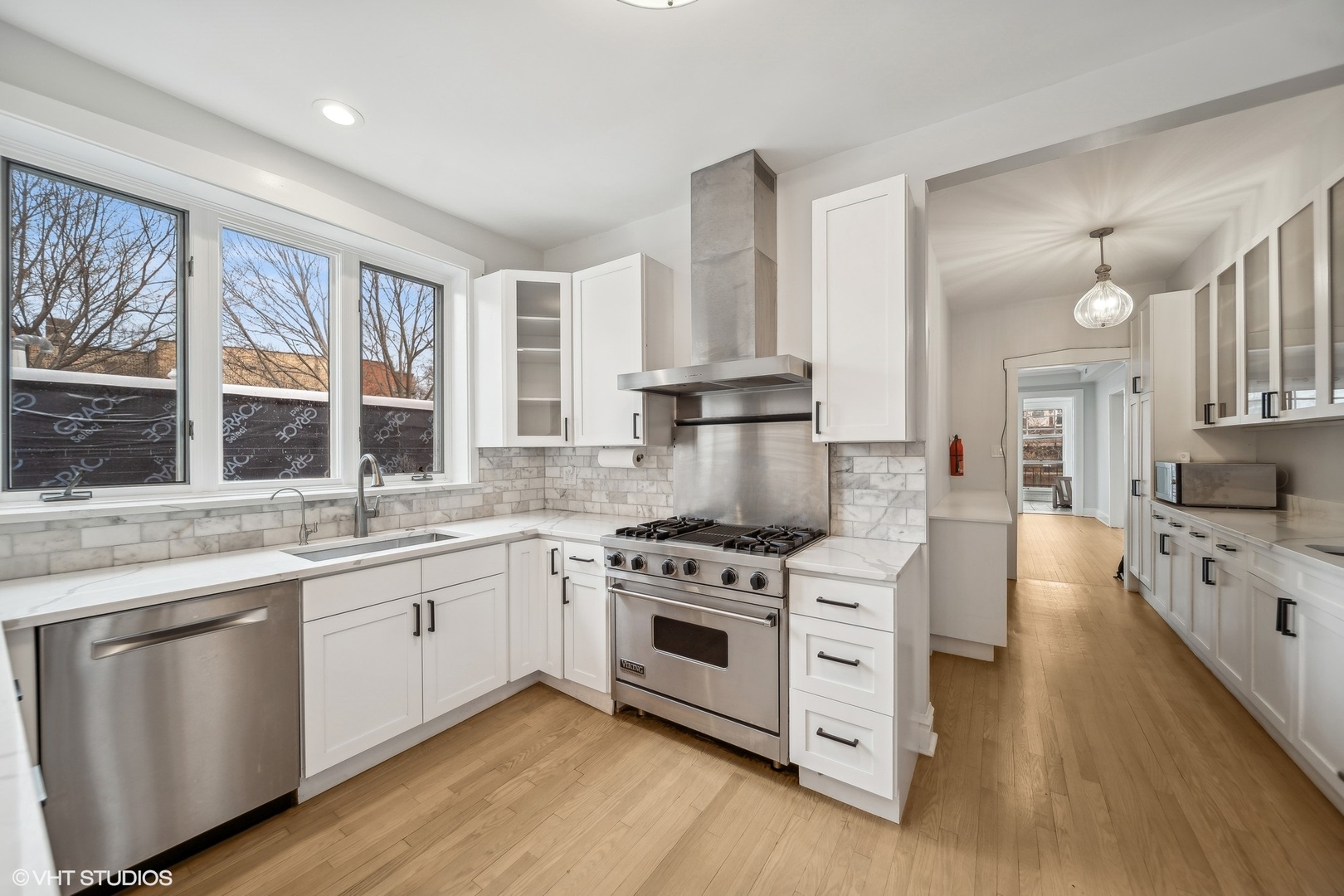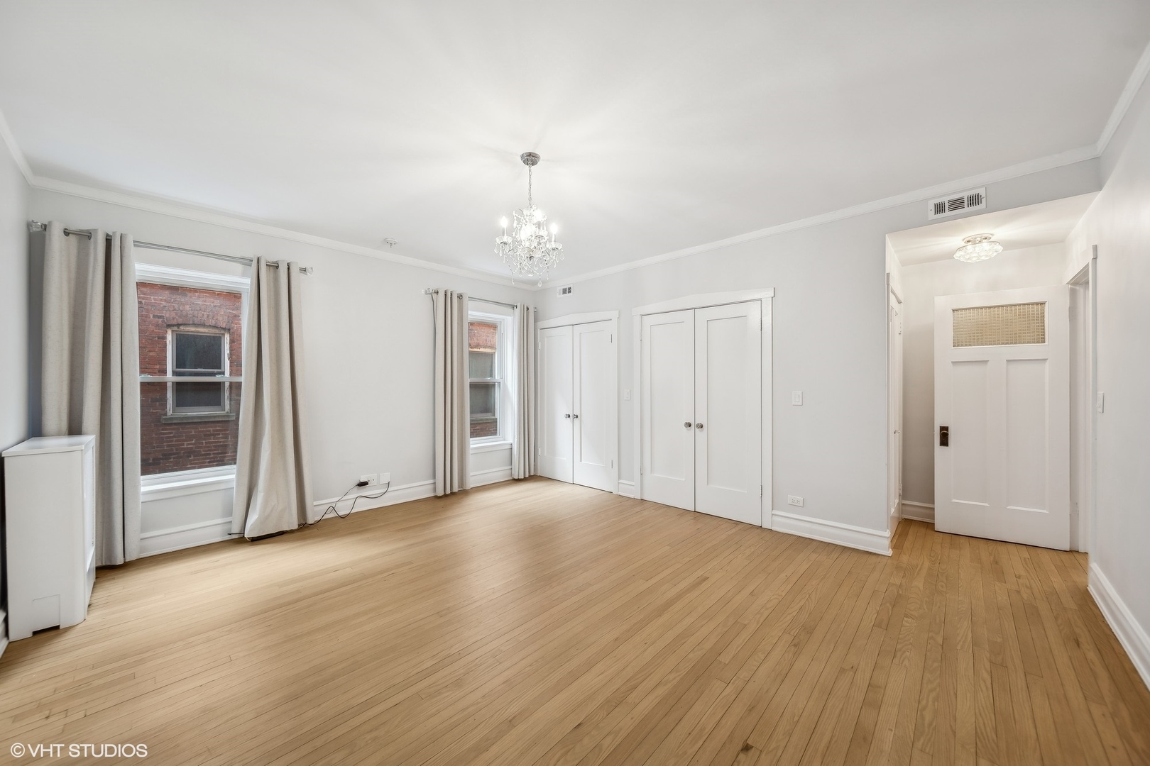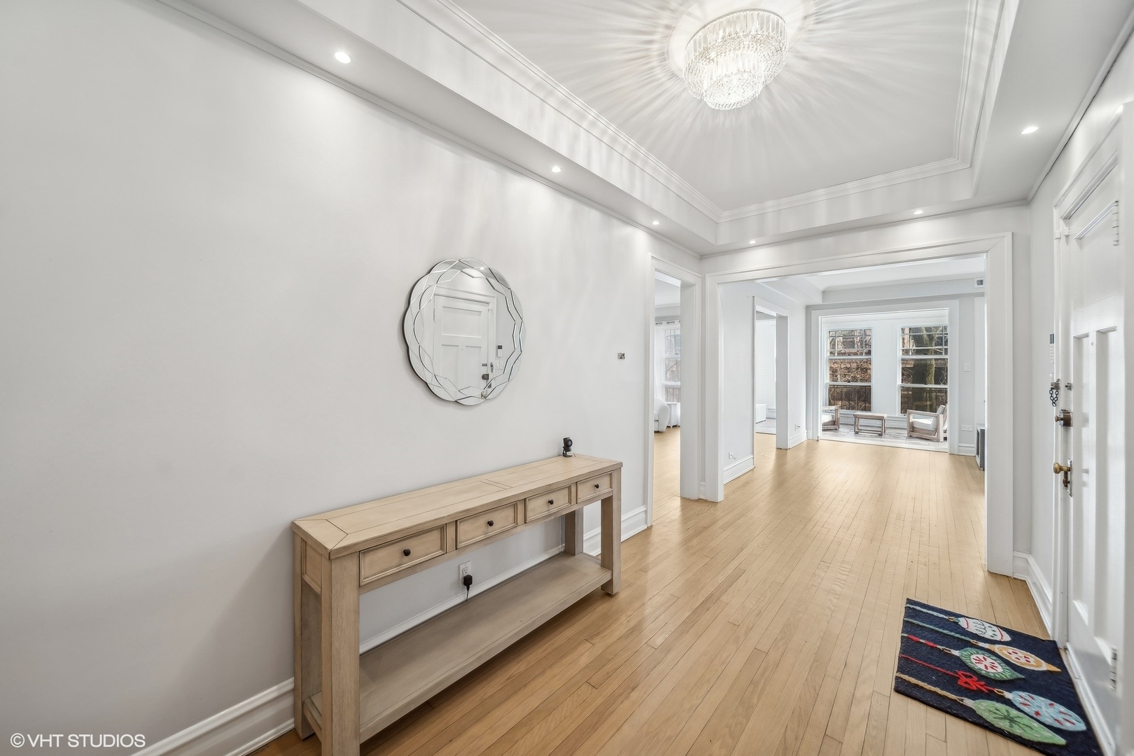 Rarely avail palatial 3200+ Sqft single floor walkup condo in coveted UC campus location. This exquisite 5 bedroom, 4 bath unit retains the character and flow of grandiose residences of yesteryear, while offering modern amenities with an extensive list of upgrades. Upon entering the home, you are greeted by an immense living room with wood burning fireplace and large windows, an adjacent equally sized formal dining room that can also function as a family room, and an amazing sunroom with walls of windows that let in abundance of natural light. The recently upgraded gourmet kitchen features a large butler's pantry, loads of white cabinetry, quartz counters, Viking stove and full suite of stainless steel appliances. The adjoining eating area has seating space for 8 or more. The gigantic primary suite is fitting for loyalty with large walk in closets finished with custom organizers, a stunning bath with soaking tub, walk in shower, double sink vanity and beautiful finishes. There are two more bedroom suites each with its own, recently rehabbed full baths finished with gorgeous tiles, vanities and hardware. The hall full bath is equally dazzling with a custom walk in shower and double sink vanity. The bedrooms are all spacious and upgraded with loads of custom built-ins and closet organizers. Additional features include garage parking and on site storage room. This special home is in one of the best locations in Hyde Park within walking distance to UC Campus, Univ Lab school, The Obama Library, and Metra station.