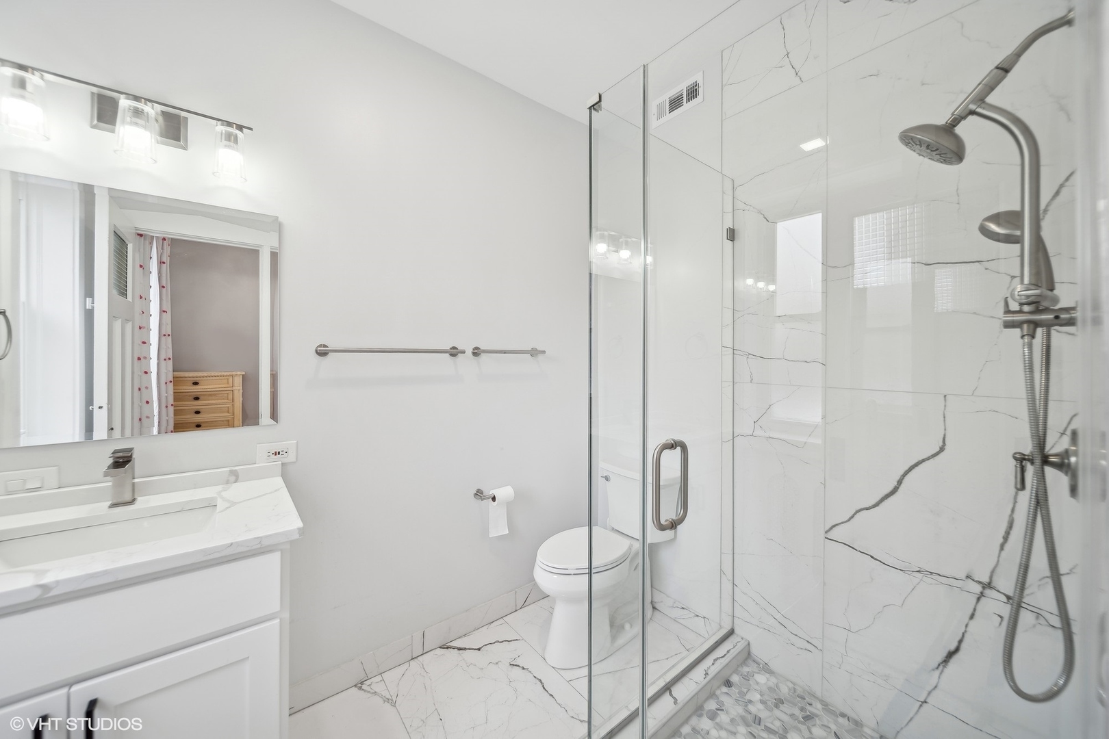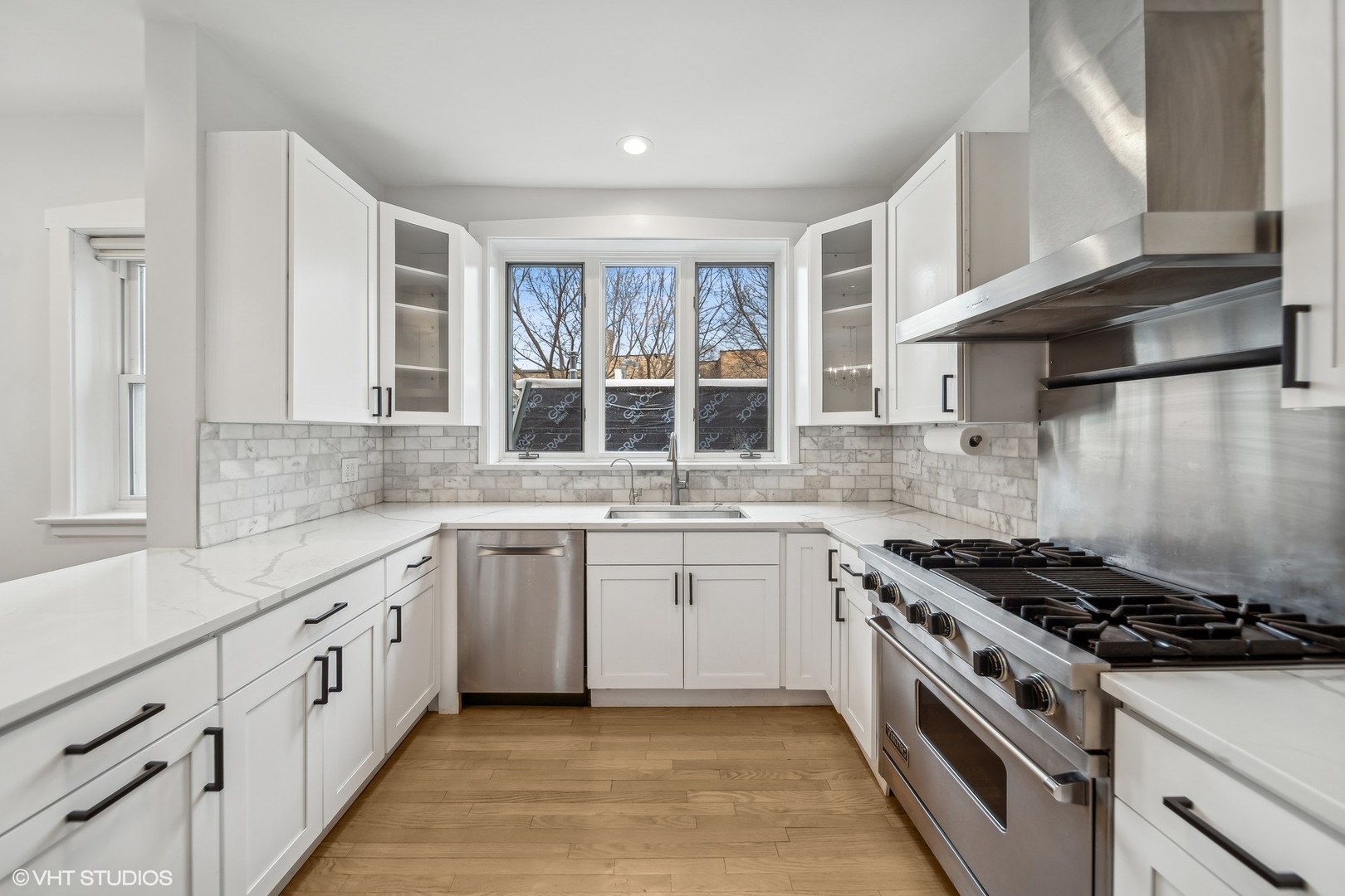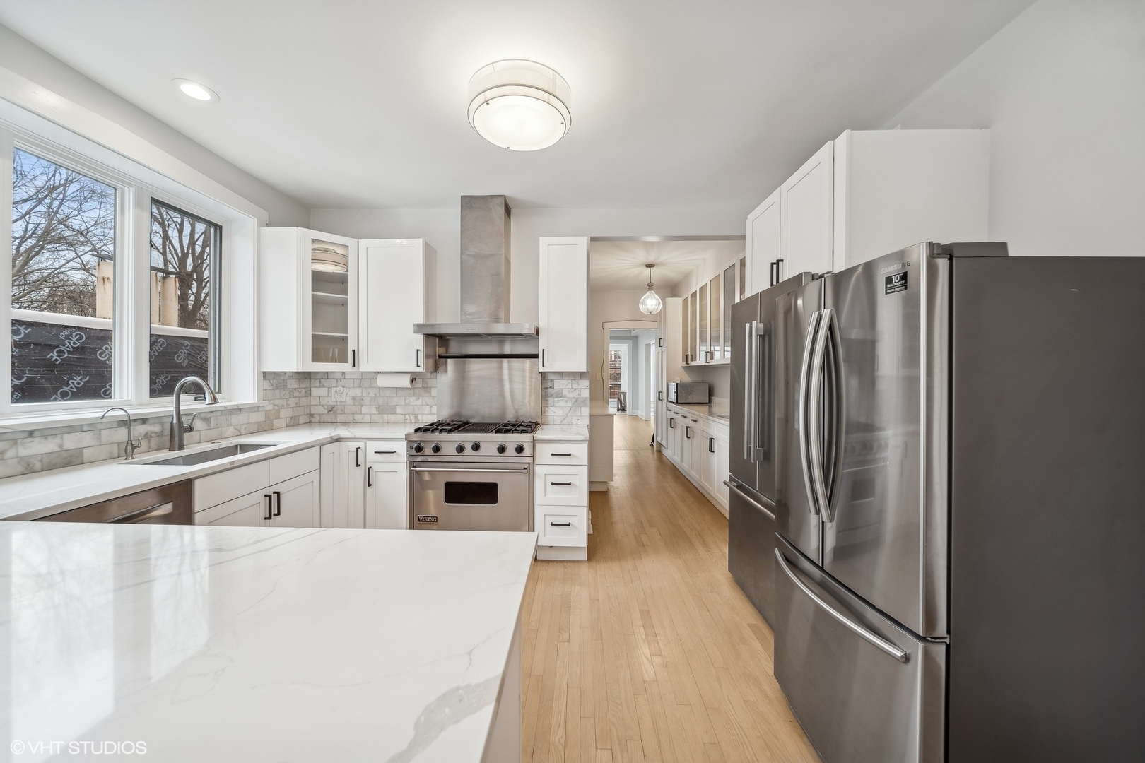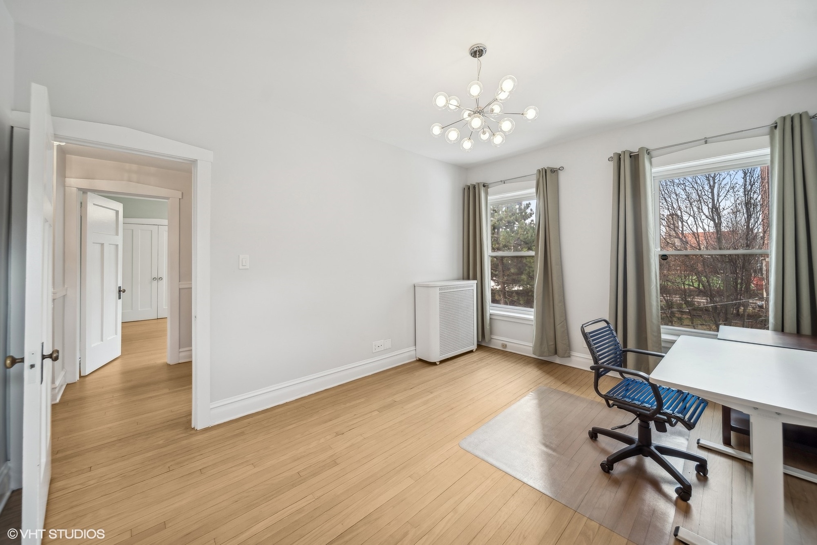 Rarely avail palatial 3200+ Sqft single floor walkup condo in coveted UC campus location. This exquisite 5 bedroom, 4 bath unit retains the character and flow of grandiose residences of yesteryear, while offering modern amenities with an extensive list of upgrades. Upon entering the home, you are greeted by an immense living room with wood burning fireplace and large windows, an adjacent equally sized formal dining room that can also function as a family room, and an amazing sunroom with walls of windows that let in abundance of natural light. The recently upgraded gourmet kitchen features a large butler's pantry, loads of white cabinetry, quartz counters, Viking stove and full suite of stainless steel appliances. The adjoining eating area has seating space for 8 or more. The gigantic primary suite is fitting for loyalty with large walk in closets finished with custom organizers, a stunning bath with soaking tub, walk in shower, double sink vanity and beautiful finishes. There are two more bedroom suites each with its own, recently rehabbed full baths finished with gorgeous tiles, vanities and hardware. The hall full bath is equally dazzling with a custom walk in shower and double sink vanity. The bedrooms are all spacious and upgraded with loads of custom built-ins and closet organizers. Additional features include garage parking and on site storage room. This special home is in one of the best locations in Hyde Park within walking distance to UC Campus, Univ Lab school, The Obama Library, and Metra station.