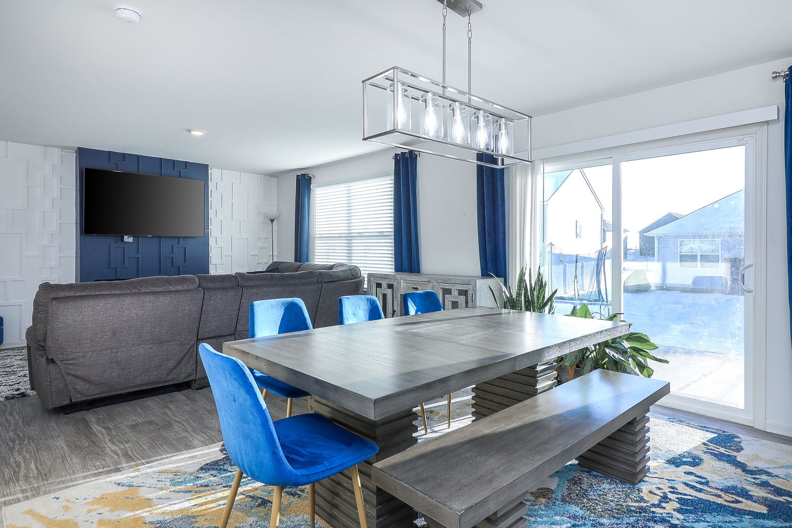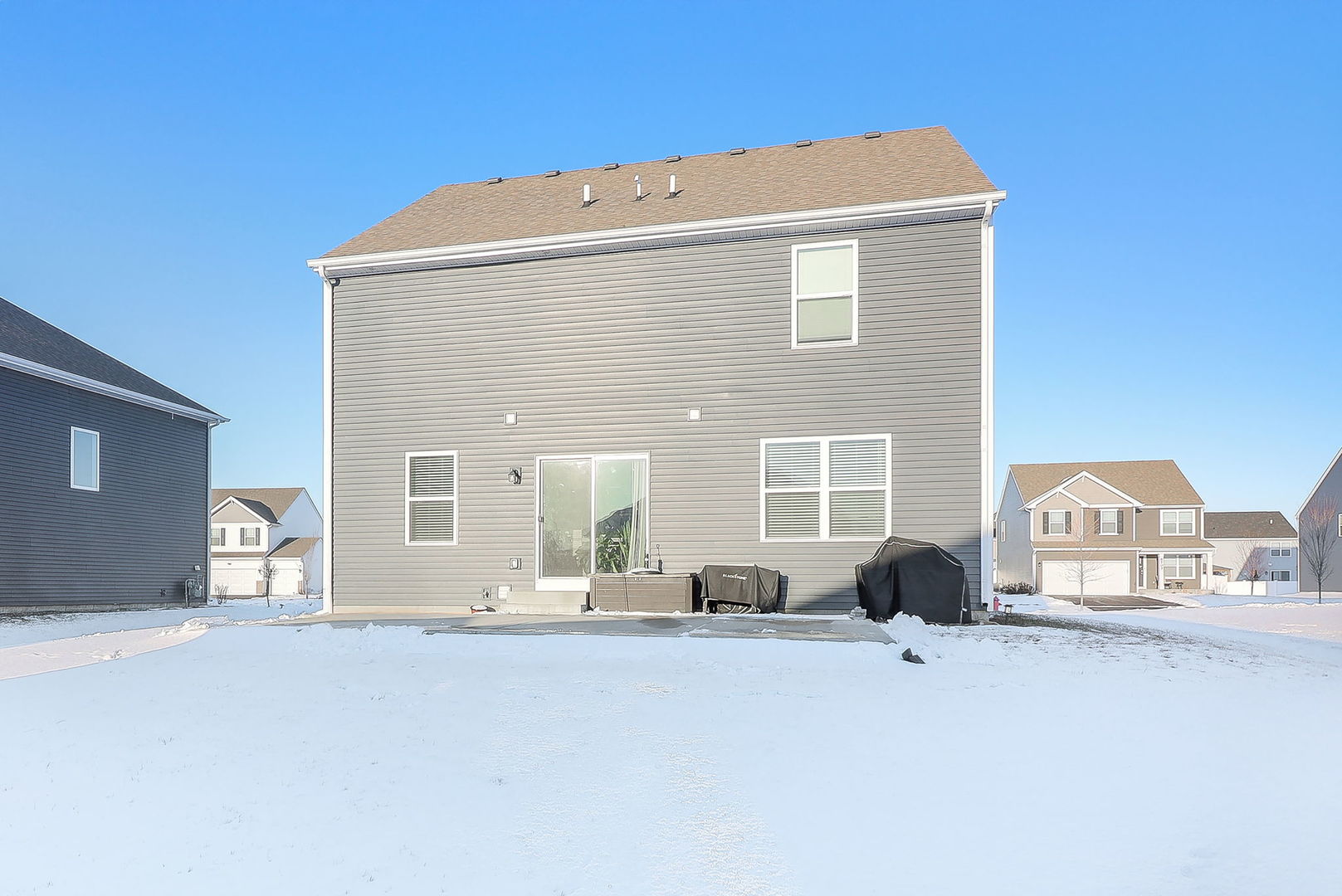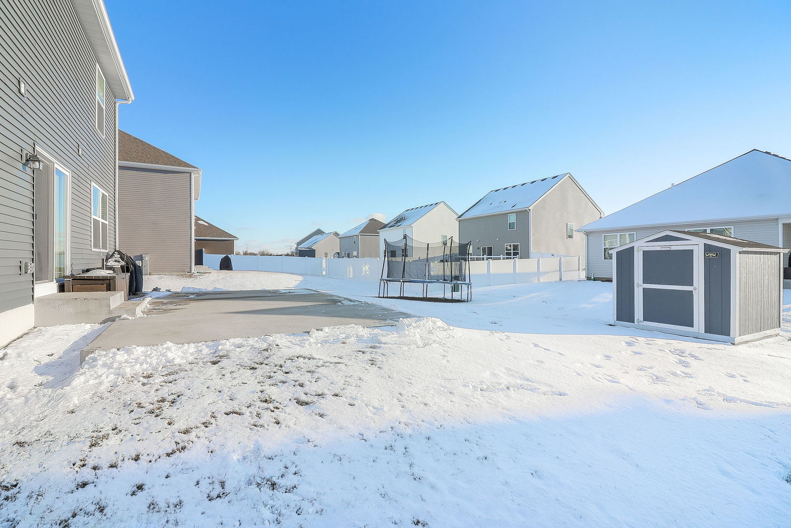 The motivated seller has significantly reduced the price, offering the buyer immediate equity! This move-in-ready home requires no work and is ready for you to enjoy! A newer property in the desirable Legacy Pointe community is now available. The Belford floor plan is highly popular, with a well-thought-out design. Upon entering through the beautiful craftsman-style front door, you'll be welcomed by an entry hall that offers a direct view of the backyard. To the side, a spacious study adds to the inviting atmosphere. As you move through the hall, you'll find a large living room with a modern fireplace, a dining area, and a stunning kitchen. The open-concept layout is bathed in natural light, making it perfect for both entertaining and daily living. At the center of the kitchen is an expanded island that seats four, surrounded by designer white cabinetry, quartz countertops, and a large walk-in pantry. Just off the kitchen, you'll find access to the garage and a coat closet. This two-story home includes 4 bedrooms and 2.5 bathrooms. A turnback staircase leads to the second floor, where the bedrooms and a laundry room with a tankless water heater await, saving you time and energy by eliminating the need to run up and down the stairs. Your private retreat is in the master bedroom, complete with an en-suite bathroom featuring a cultured-marble, raised double vanity, a walk-in shower, and a separate water closet. This smart home offers control of various features through your smartphone, tablet, or computer for added convenience. Adjust the ambiance using your voice, phone, or the Qolsys panel, and sync with most smart devices via Bluetooth, Wi-Fi, Z-Wave, or cellular connections. The large patio is ideal for entertaining, and the spacious outdoor shed provides additional storage. The unfinished basement, with epoxy-coated flooring, is ready for your customization and has the potential to add an extra bedroom. Come see this wonderful home today!