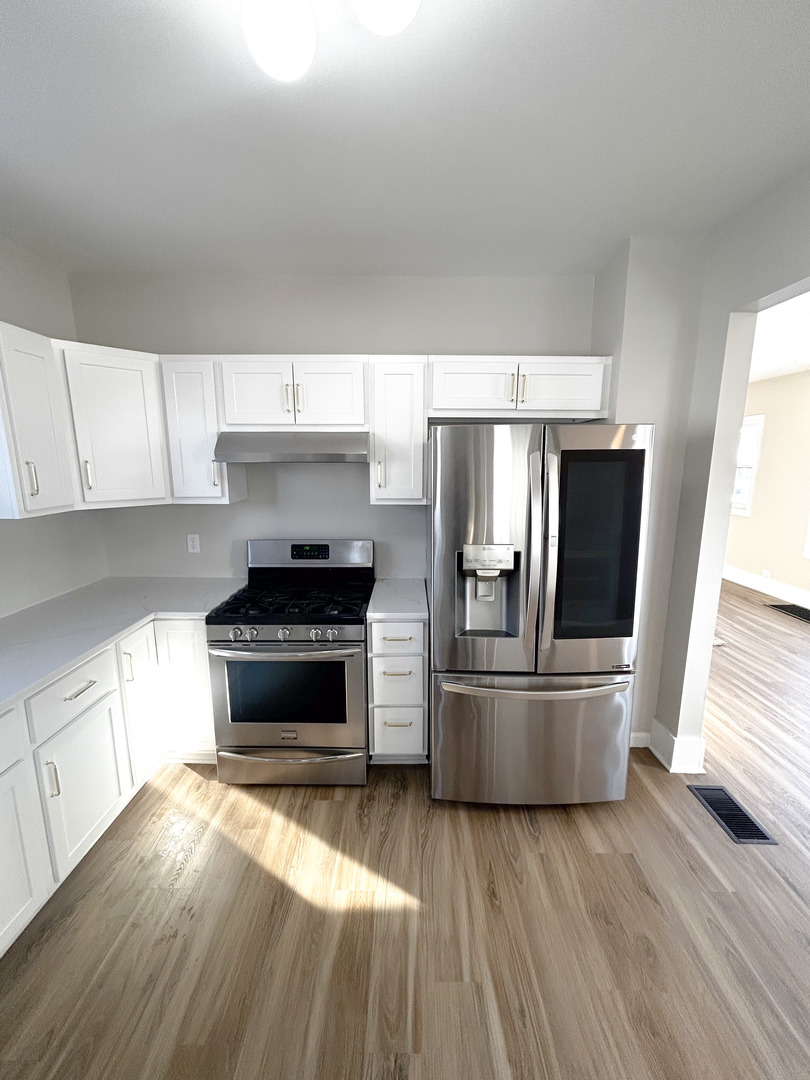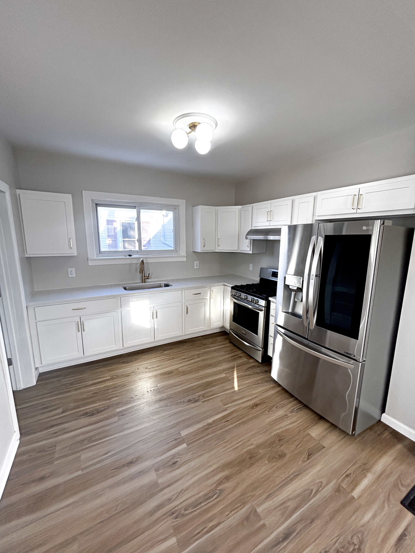This beautifully renovated 3-bedroom, 1-bath home, located in the highly sought-after heart of Bradley, offers modern style and thoughtful updates. The exterior features crisp, brand-new vinyl siding, newly installed gutters and downspouts, and a roof that's less than 10 years old, ensuring long-lasting curb appeal durability, and peace of mind. Step inside to a bright, open-concept living area, where fresh drywall, sleek new overhead lighting, and expansive bay windows bathe the space in an abundance of natural light. The spacious living room seamlessly flows into a stunning kitchen, complete with luxurious quartz countertops, custom cabinetry, and brand-new stainless steel appliances, perfect for both cooking and entertaining. The bathroom has been completely transformed, showcasing a new tub surround, elegant vanity, updated toilet, and stylish vinyl plank flooring. One of the three bedrooms is conveniently located on the main floor with easy-to-maintain vinyl plank flooring, while the remaining two bedrooms on the second floor feature new carpet and have been freshly painted with a calming, neutral palette. Additional updates include electrical, plumbing supply lines, and drain, with the entire home freshly painted in modern, neutral tones. This turnkey gem offers the perfect opportunity to own a completely updated, low-maintenance home in a fantastic location-schedule your private showing today and experience all that this beautiful property has to offer!
