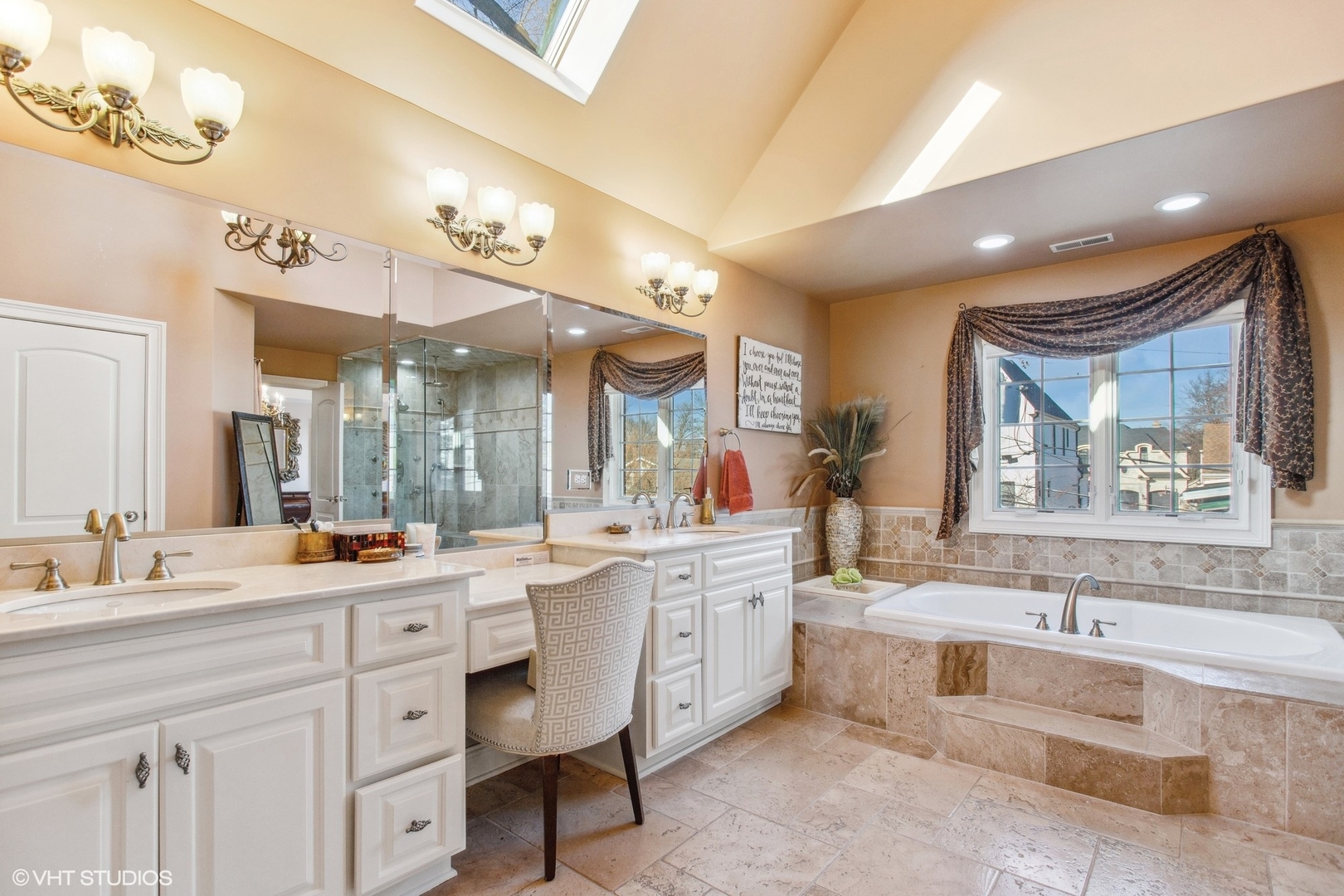 Welcome to 127 East Oneida Avenue, an exquisite masonry residence by long time, local, and well respected custom home builder located in the award winning new Lincoln School District on a rare 60-ft wide lot. This thoughtfully designed masonry home offers an impressive 6,500 sq ft of luxurious living space (including 4,533 sq ft above grade), blending elegance, comfort, and modern convenience. The heart of the home is the gourmet kitchen, a chef's dream featuring stainless steel appliances, built in oven, Thermador oven/range, and island vegetable sink and beverage fridge, all anchored by rich hardwood floors. The functional layout includes an eat-in kitchen, family room with fireplace, separate living room and dining room, 1st floor office/bedroom, 1st floor full bath (for multi gen scenario), main-floor laundry, and a large mudroom entry from the heated garage. The second floor boasts five beautifully appointed bedrooms, a versatile loft, and a primary ensuite with a separate shower featuring rainmaker, body sprays, and a handheld, plus a fireplace and walk-in closet, offering ample living space. The lower level is a true retreat, boasting radiant heated floors, a state-of-the-art theater room, home gym, office/bedroom, custom bar, and a full bathroom - all perfectly tailored for relaxation and entertainment. Outside, the beautifully landscaped & fenced backyard invites you to unwind. The space includes a paver patio with fire pit, play area, and plenty of room for entertaining. Additional highlights include a heated oversized 2.5 car garage with radiant flooring and EV ready charging station. Don't miss this opportunity to own a truly exceptional home in one of Elmhurst's most sought-after Lincoln Elementary neighborhoods walking distance to York Commons Pool, Pioneer, and Illinois Prairie Path Parks as well as the Vallette & York shops, bars, and restaurants. ***Service of HVAC and radiant boiler 12/18/24. Whole house generator service was 10/23/24. Irrigation winterization on 10/31/24 & backflow test and turn on May 2024***
