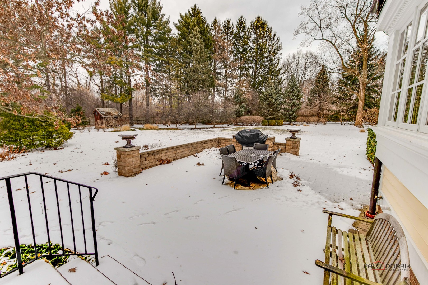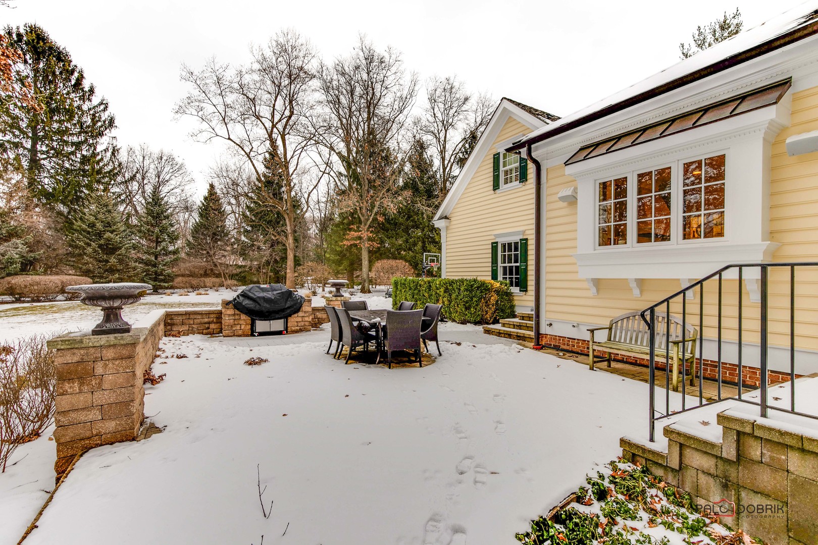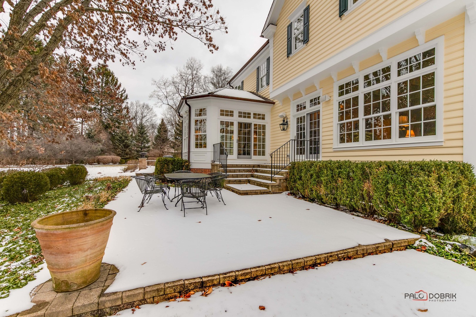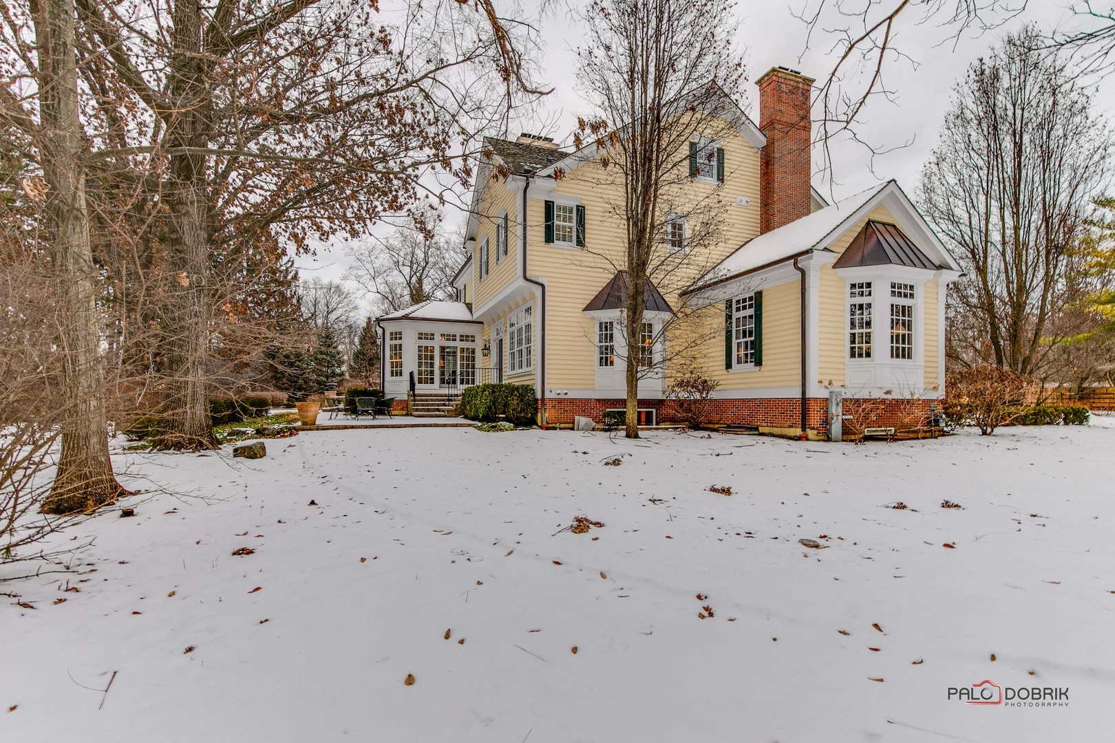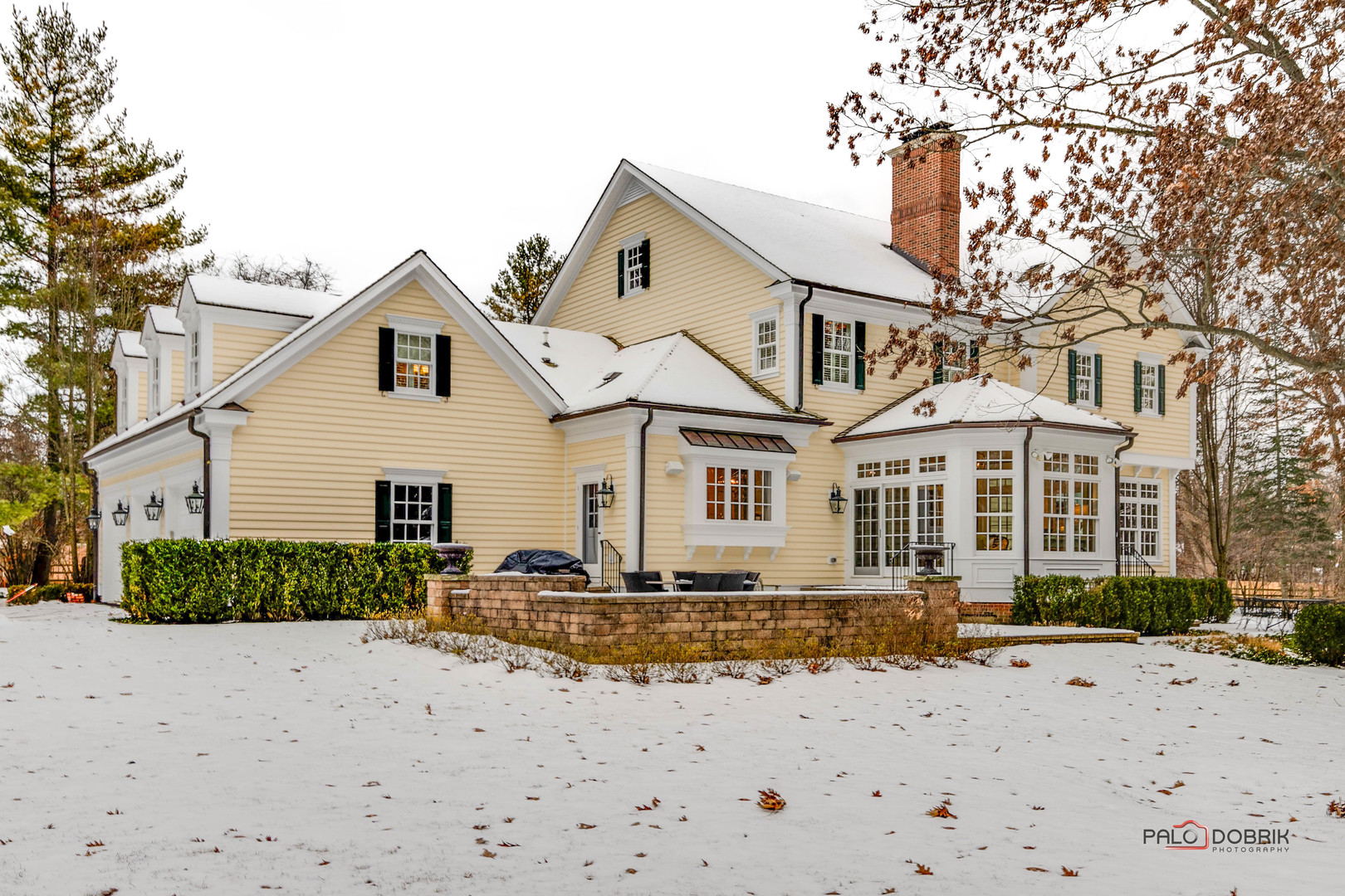 Welcome to this elegant and timeless colonial residence, perfectly nestled in a serene and private setting. Offering classic charm and modern comfort, this newer home boasts over 7,000 sq feet of living space with 5 bedrooms, 5.2 baths, 5 fireplaces and finished lower level. The thoughtfully designed interior features spacious living areas bathed in natural light and complemented by both stone and rich hardwood floors, coffered ceilings, custom millwork and refined finishes throughout. The 1st floor features 10-foot ceilings, 9 foot on the 2nd floor and lower level. Step inside to be greeted by the foyer, gracefully positioned between the living room and dining room, creating a seamless flow throughout the space. The handsome mahogany paneled library with fireplace is a warm and sophisticated retreat with its rich wood tones and refined craftsmanship. The gourmet kitchen is a chef's dream featuring white custom cabinetry, a spacious center island with seating, two sinks and high end appliances including Wolf cooktop with custom hood, Thermador double oven, SubZero refrigerator and Miele dishwasher that are seamlessly integrated for a sleek look. The large hearth room area is a great space to enjoy your meals next to the stone fireplace and opens out to the fabulous heated sunroom with French limestone floors and access to your choice of two brick patios to enjoy. Just off the kitchen is a wet bar with copper sink and beverage refrigerator that leads to the family room. Spacious and bright, this room really is the heart of this home with walls of built-in cabinetry, warm fireplace and beautiful coffered ceiling. Two powder rooms and a large mudroom/laundry room complete the 1st floor. Make your way to the 2nd floor from one of two staircases where you will find four en-suite bedrooms, all with custom wood shutters. The primary suite features a stunning vaulted ceiling with wood beams, two generous sized walk-in closets and luxurious spa-like bath with soaking tub. The fully finished lower level provides space for relaxing or entertaining. Flooded with natural light a 2nd family room awaits with fireplace and kitchenette with sink and refrigerator On this level you will also find the fifth bedroom and full bath, office and large storage room. Outside, the sprawling backyard greets you with mature landscaping, surrounded by natural beauty and is adjacent to Lake Forest Open Lands. This property offers the perfect retreat while still being conveniently located near schools, shops, park and the train. A rare opportunity to own a classic home in such a tranquil and sought-after location. This is more than a house - it's a lifestyle. Complete exterior painting and new driveway in 2024.