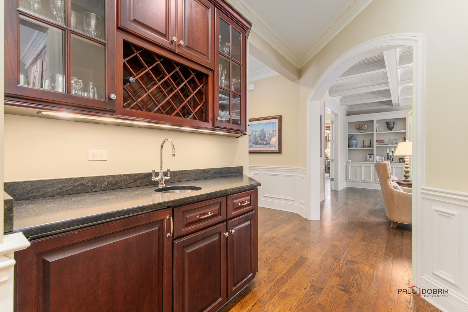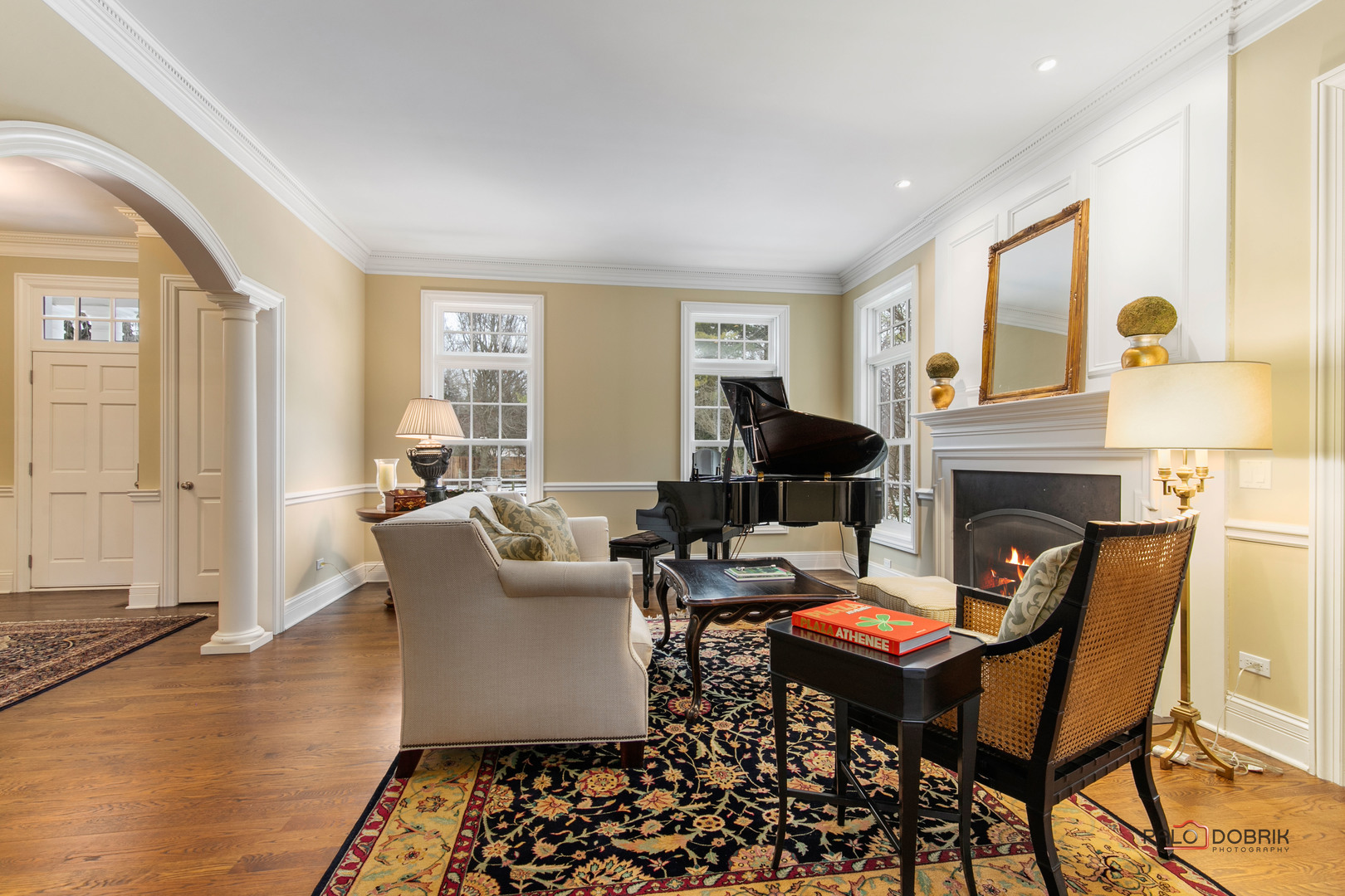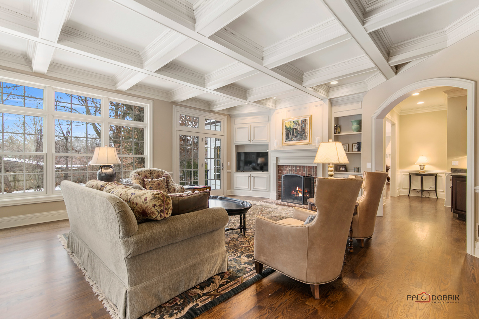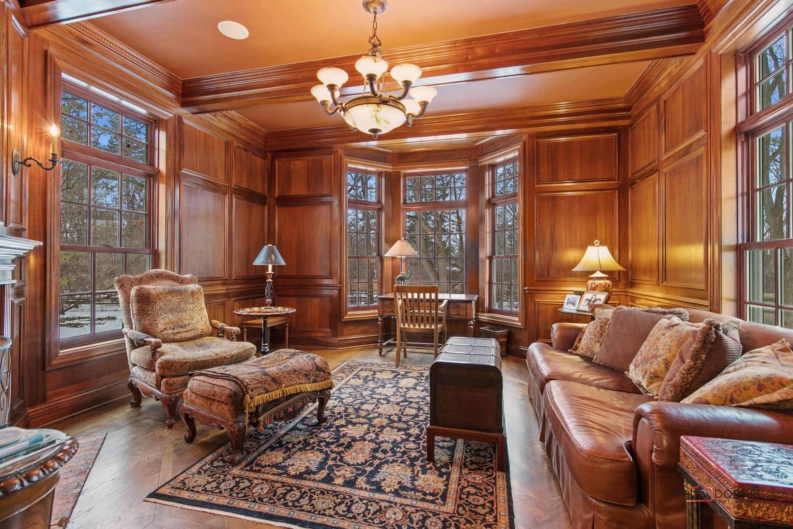 Welcome to this elegant and timeless colonial residence, perfectly nestled in a serene and private setting. Offering classic charm and modern comfort, this newer home boasts over 7,000 sq feet of living space with 5 bedrooms, 5.2 baths, 5 fireplaces and finished lower level. The thoughtfully designed interior features spacious living areas bathed in natural light and complemented by both stone and rich hardwood floors, coffered ceilings, custom millwork and refined finishes throughout. The 1st floor features 10-foot ceilings, 9 foot on the 2nd floor and lower level. Step inside to be greeted by the foyer, gracefully positioned between the living room and dining room, creating a seamless flow throughout the space. The handsome mahogany paneled library with fireplace is a warm and sophisticated retreat with its rich wood tones and refined craftsmanship. The gourmet kitchen is a chef's dream featuring white custom cabinetry, a spacious center island with seating, two sinks and high end appliances including Wolf cooktop with custom hood, Thermador double oven, SubZero refrigerator and Miele dishwasher that are seamlessly integrated for a sleek look. The large hearth room area is a great space to enjoy your meals next to the stone fireplace and opens out to the fabulous heated sunroom with French limestone floors and access to your choice of two brick patios to enjoy. Just off the kitchen is a wet bar with copper sink and beverage refrigerator that leads to the family room. Spacious and bright, this room really is the heart of this home with walls of built-in cabinetry, warm fireplace and beautiful coffered ceiling. Two powder rooms and a large mudroom/laundry room complete the 1st floor. Make your way to the 2nd floor from one of two staircases where you will find four en-suite bedrooms, all with custom wood shutters. The primary suite features a stunning vaulted ceiling with wood beams, two generous sized walk-in closets and luxurious spa-like bath with soaking tub. The fully finished lower level provides space for relaxing or entertaining. Flooded with natural light a 2nd family room awaits with fireplace and kitchenette with sink and refrigerator On this level you will also find the fifth bedroom and full bath, office and large storage room. Outside, the sprawling backyard greets you with mature landscaping, surrounded by natural beauty and is adjacent to Lake Forest Open Lands. This property offers the perfect retreat while still being conveniently located near schools, shops, park and the train. A rare opportunity to own a classic home in such a tranquil and sought-after location. This is more than a house - it's a lifestyle. Complete exterior painting and new driveway in 2024.