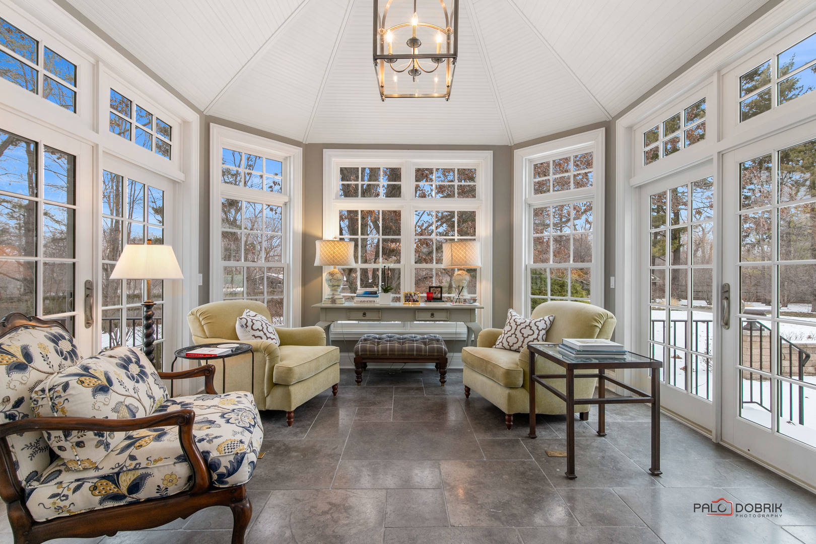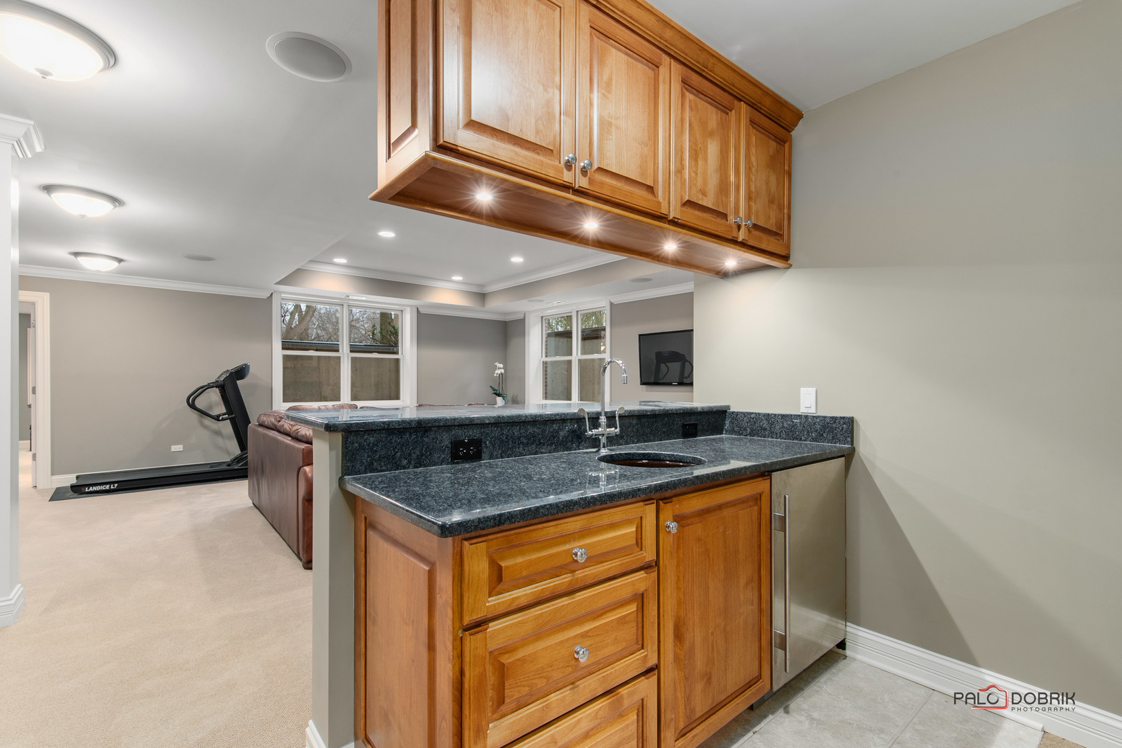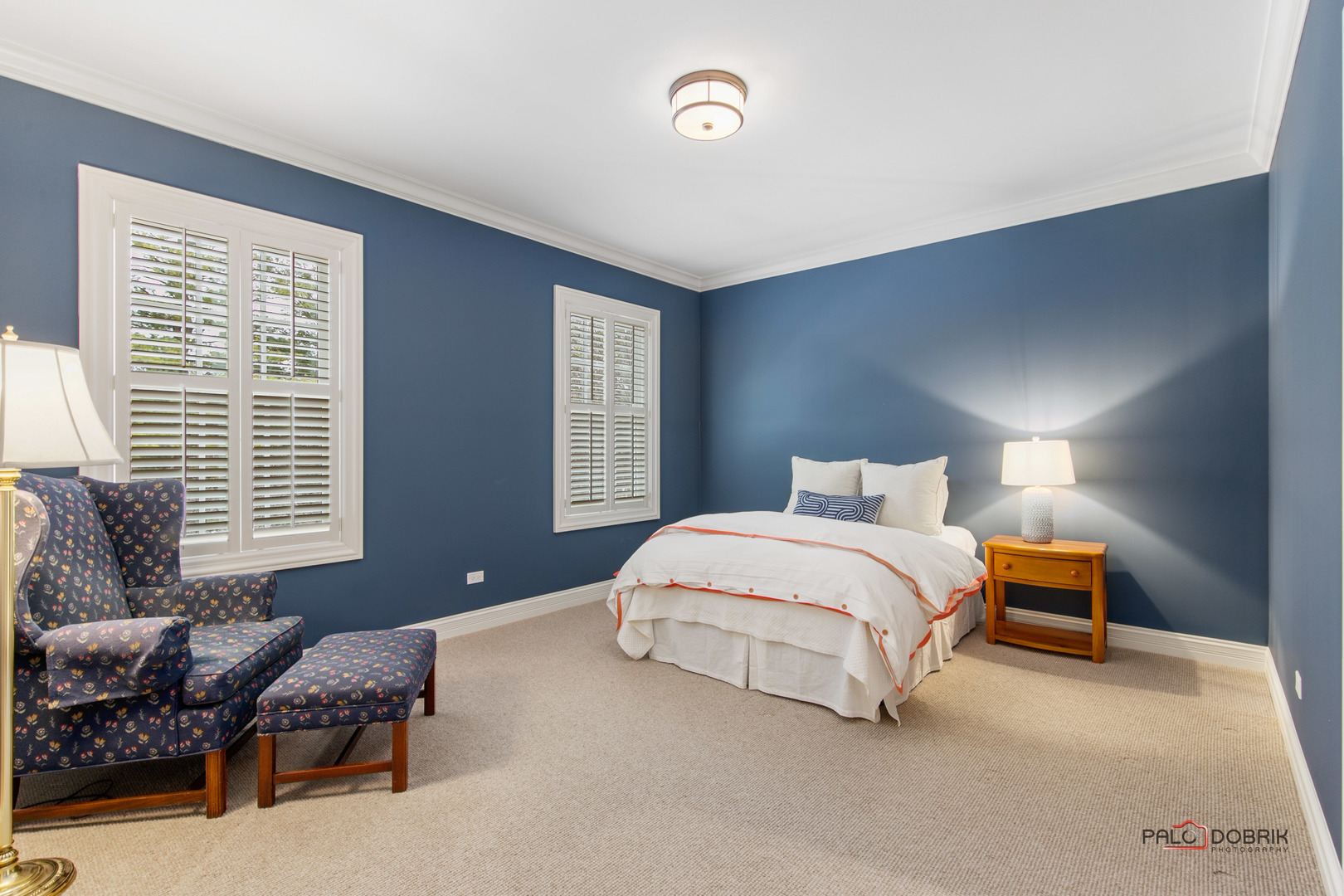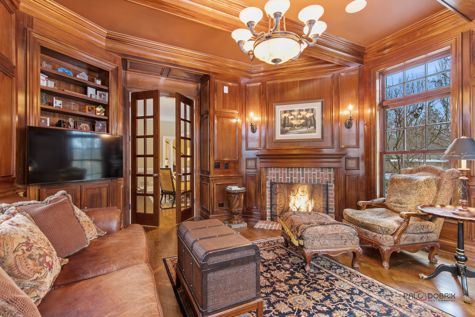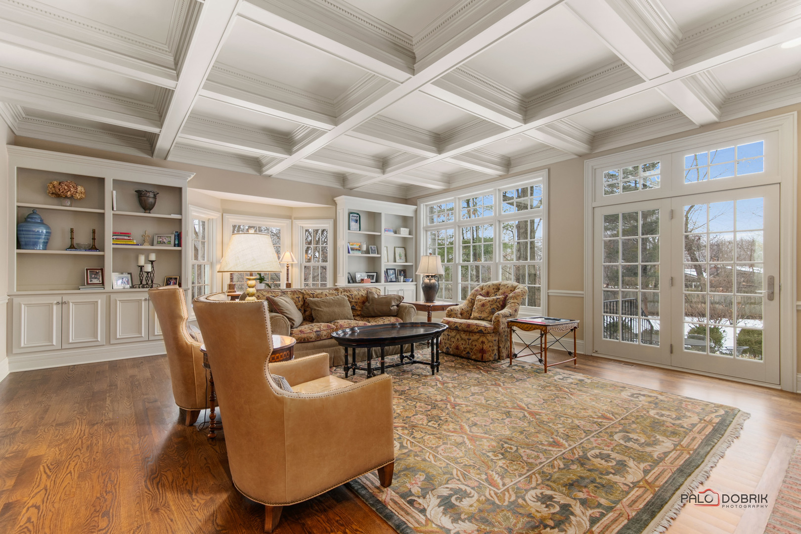 Welcome to this elegant and timeless colonial residence, perfectly nestled in a serene and private setting. Offering classic charm and modern comfort, this newer home boasts over 7,000 sq feet of living space with 5 bedrooms, 5.2 baths, 5 fireplaces and finished lower level. The thoughtfully designed interior features spacious living areas bathed in natural light and complemented by both stone and rich hardwood floors, coffered ceilings, custom millwork and refined finishes throughout. The 1st floor features 10-foot ceilings, 9 foot on the 2nd floor and lower level. Step inside to be greeted by the foyer, gracefully positioned between the living room and dining room, creating a seamless flow throughout the space. The handsome mahogany paneled library with fireplace is a warm and sophisticated retreat with its rich wood tones and refined craftsmanship. The gourmet kitchen is a chef's dream featuring white custom cabinetry, a spacious center island with seating, two sinks and high end appliances including Wolf cooktop with custom hood, Thermador double oven, SubZero refrigerator and Miele dishwasher that are seamlessly integrated for a sleek look. The large hearth room area is a great space to enjoy your meals next to the stone fireplace and opens out to the fabulous heated sunroom with French limestone floors and access to your choice of two brick patios to enjoy. Just off the kitchen is a wet bar with copper sink and beverage refrigerator that leads to the family room. Spacious and bright, this room really is the heart of this home with walls of built-in cabinetry, warm fireplace and beautiful coffered ceiling. Two powder rooms and a large mudroom/laundry room complete the 1st floor. Make your way to the 2nd floor from one of two staircases where you will find four en-suite bedrooms, all with custom wood shutters. The primary suite features a stunning vaulted ceiling with wood beams, two generous sized walk-in closets and luxurious spa-like bath with soaking tub. The fully finished lower level provides space for relaxing or entertaining. Flooded with natural light a 2nd family room awaits with fireplace and kitchenette with sink and refrigerator On this level you will also find the fifth bedroom and full bath, office and large storage room. Outside, the sprawling backyard greets you with mature landscaping, surrounded by natural beauty and is adjacent to Lake Forest Open Lands. This property offers the perfect retreat while still being conveniently located near schools, shops, park and the train. A rare opportunity to own a classic home in such a tranquil and sought-after location. This is more than a house - it's a lifestyle. Complete exterior painting and new driveway in 2024.