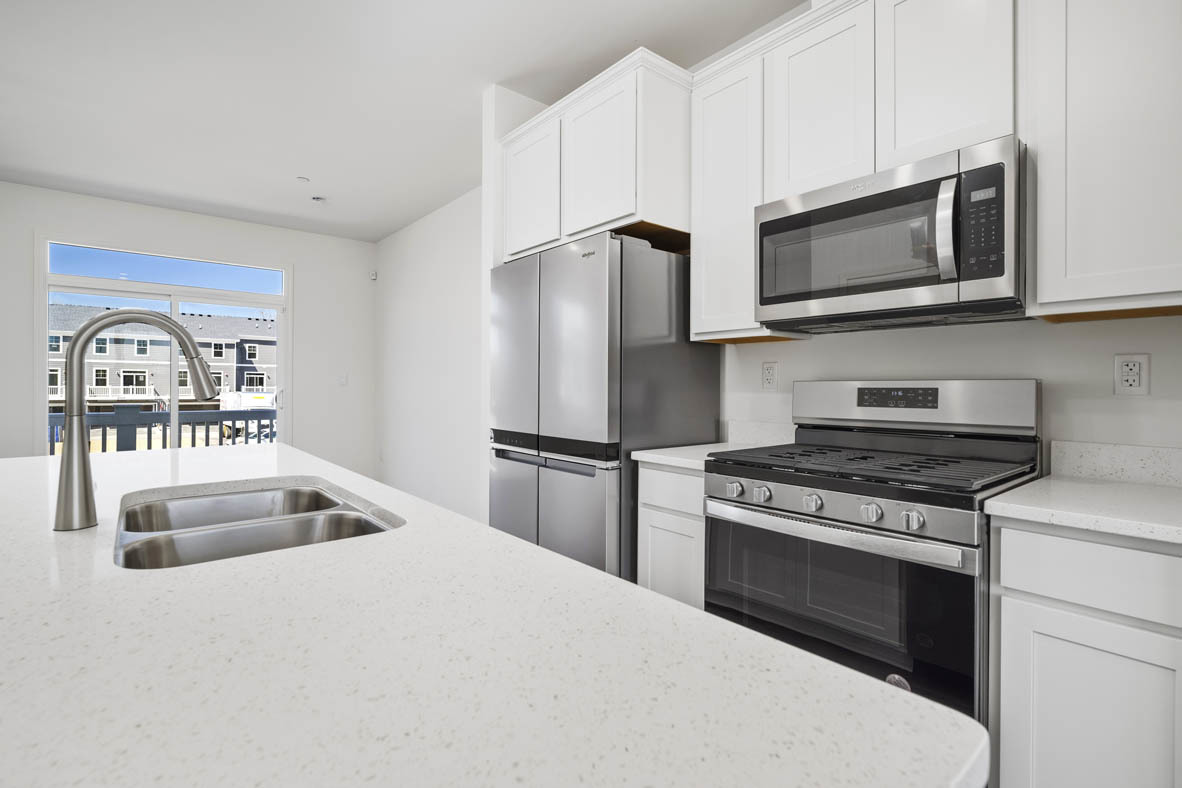 Discover modern living at its finest at 2159 Yellowstonw Blvd. in Mundelein, Illinois, a brand-new townhome in the Townes at Oak Creek community. Ready for you in the spring, this home includes a fully sodded yard with professional, year-round upkeep as well as snow removal in the winter. The Townes at Oak Creek is adjacent to a future dog park, playground and common firepit along with plenty of walking travels. Enjoy being 5 minutes from Hawthorn Mall, a plethora of fabulous restaurants and miles of trails that stretch of over 10 Forest Preserves, while being less than 10 minutes away from 2 Metra Train stations, 30 minutes from O'Hare and easy access to I94/294! Also located in Stevenson High School district! Beautiful landscaping greets you as you step into this charming McKinley townhome. The flexible floor plan boasts 2 bedrooms, plus an upstairs loft, 2.5 baths, and a finished lower-level flex room, all intuitively spaced within 1,577 square feet of living space. Once inside, you'll be greeted by the flex room, perfect for a home office, playroom, or 2nd family room. This is a home design full of closet space, and here on the entry level, you'll enjoy the huge walk-in closet off the flex room plus a large closet right off the garage. Walking up the stairs, you will find this home's open concept living with 9-foot ceilings and luxury vinyl plank flooring throughout the main level kitchen and dining, and bathrooms. The expansive kitchen is designed with views from the plethora of countertop space with an overhang for stools that overlooks the dining area and flows into the great room. Additionally, your kitchen features Quartz countertops, 42 flagstone cabinetry with soft close doors and crown molding, stainless steel appliances and pantry. The great room leads out to an elongated deck over the 2-car garage. Arriving at the top floor, you'll find the primary suite, second bedroom and loft area with a full second bath, linen closet, and laundry room. Enjoy a spacious primary bedroom suite with a large walk-in closet and connecting en-suite bathroom with Quartz counters, and a walk-in shower. Our Chicago home includes our America's Smart Home Technology featuring Smart Home Features including video doorbell, Honeywell thermostat, Door Lock, Garage Door Opener, Deako smart light switches and an Amazon Echo Pop which allows you to monitor and control your home from the comfort of your sofa or far away from your smartphone. Impressive technology and efficiencies give you the most innovative home on the market including ERV furnace system, tankless water heater and Rheia ductwork delivery system. Builder Warranty 1-2-10 is included. Photos are of a similar home. Actual home built may vary