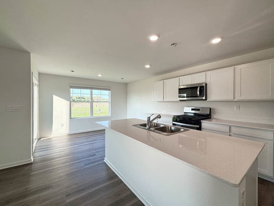 Check out 106 Fieldcrest Avenue in Hampshire, Illinois, a beautiful new home in our Prairie Ridge community. This home will be ready for an early spring move-in! This homesite includes a fully sodded yard. This Sloan plan offers over 1,900 square feet of living space with 4 bedrooms and 2.5 baths. Enjoy this open concept home with natural light throughout your main level. Coming through your front door you'll find your powder room and coat closet in your foyer. The great room, dining room, and kitchen flow effortlessly together, making it your home the perfect entertainment space. Your kitchen features white designer cabinetry with quartz countertops, and a pantry. Walking upstairs you find your private oasis with your primary bedroom on its own side of the top floor complete with an en suite bathroom complete with a raised dual quartz vanity and walk in closet, and linen closet. Enjoy the convenience of a top floor walk in laundry room and all secondary bedrooms upstairs with a full second bathroom with a dual vanity and linen closet. Impressive innovative ERV furnace system and tankless water heater round out the amazing features this home has to offer! All Chicago homes include our America's Smart Home Technology, featuring a smart video doorbell, smart Honeywell thermostat, Amazon Echo Pop, smart door lock, Deako smart light switches and more. Exterior photo of actual home, Interior photos are of similar home and model home. Actual home built may vary.