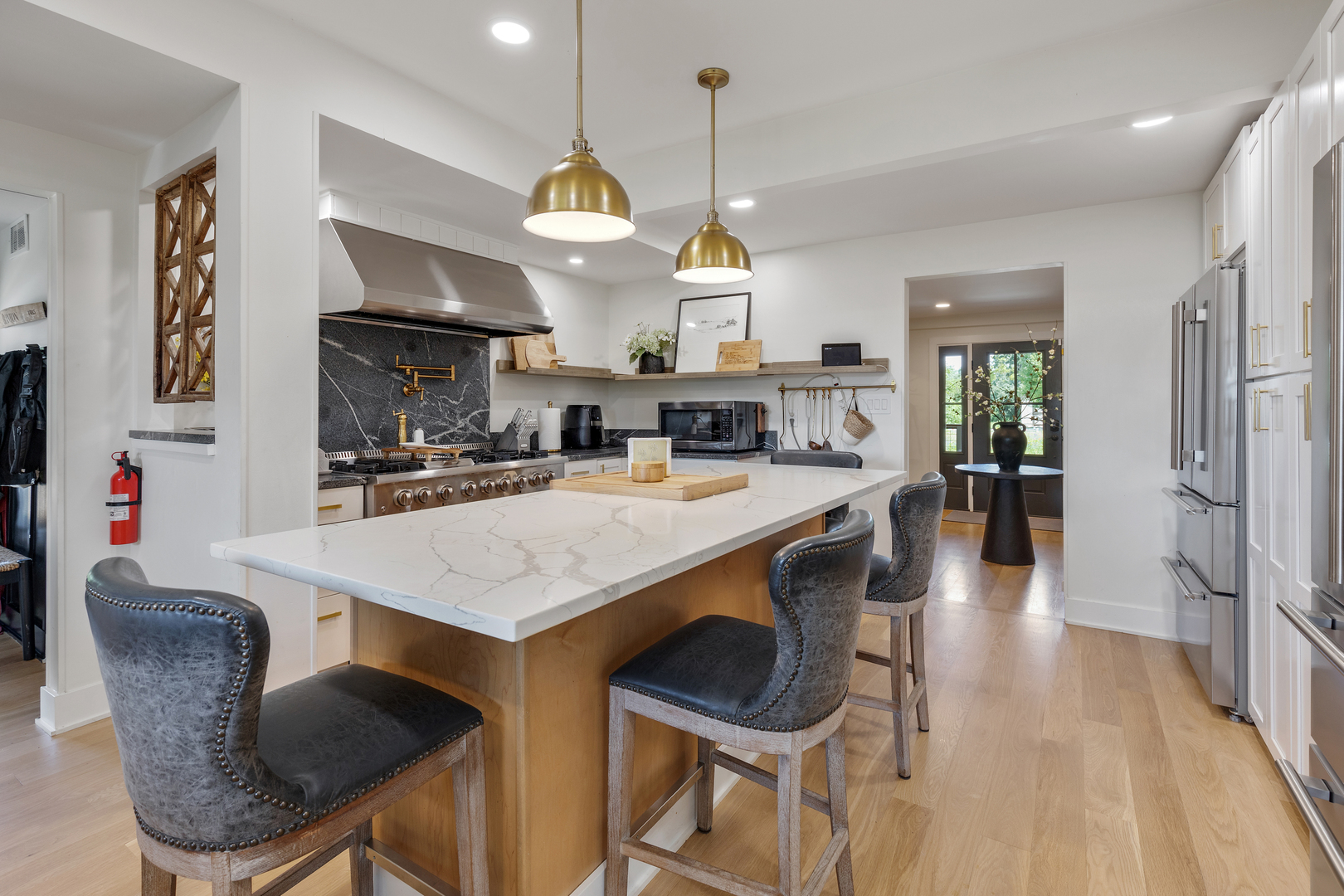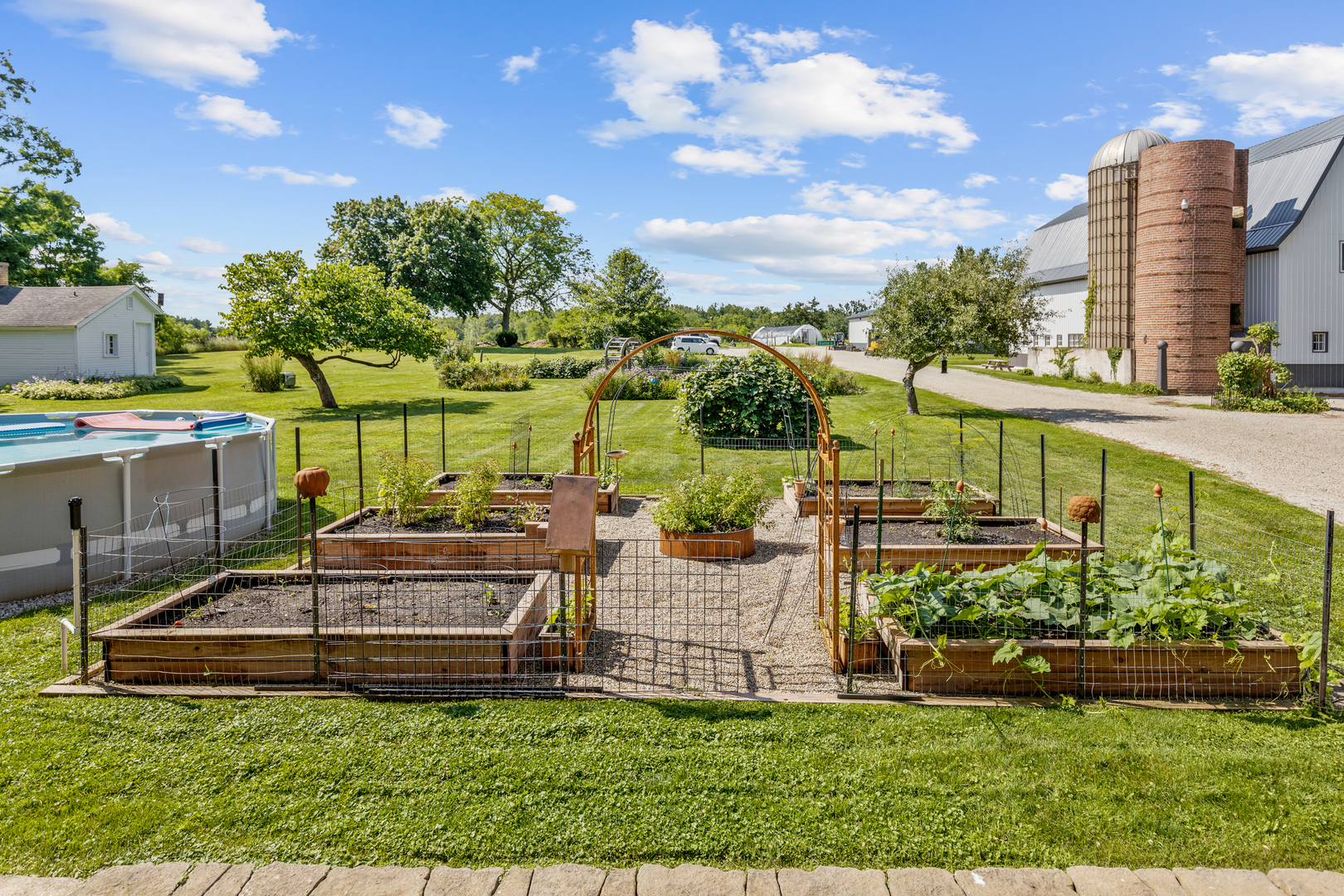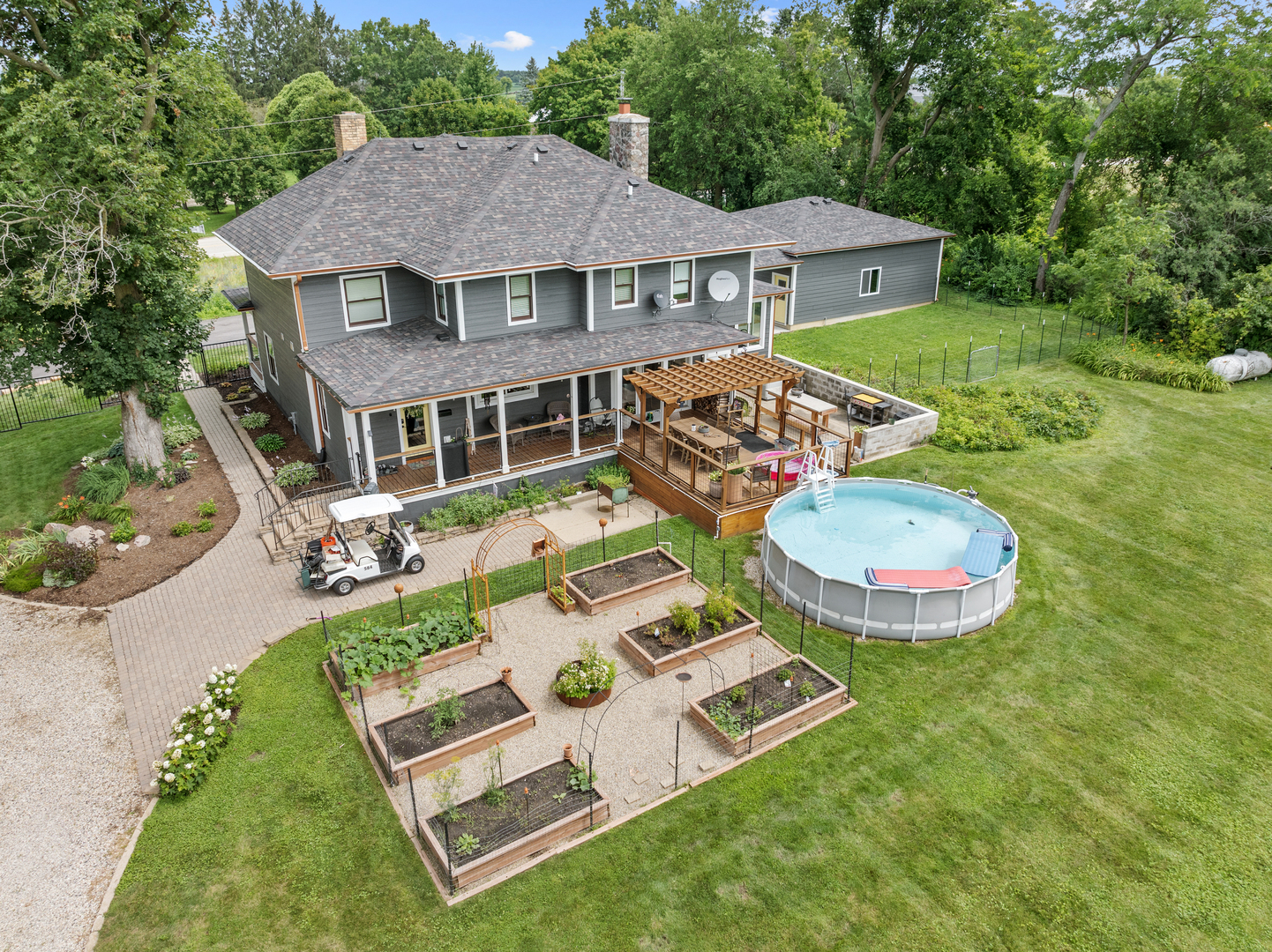 FANTASTIC 13 ACRE FARMETTE FOR SALE. Thoughtfully composed improvements have been executed to the highest standard of quality to create a turn key property of singular style and value. This renovated home elevates and honors the American Foursquare design where a sweeping floorplan balances bountiful room dimensions with snug, private spaces. 2 fireplaces. There are 2 sizable bedroom suites and 2 additional bedrooms upstairs. 3 1/2 baths. The kitchen is sunny and airy with high end everything, gleaming counter space and expansive table and breakfast bar seating. 2 refrigerators, custom cabinets, pot fillers at the stove and at the coffee bar and glass doors to the decks. Spray foam insulation, newer electric, windows and roof. No worries because there is a whole house Generac generator. Large 2+ oversized garage is connected to the home by a beautiful breezeway. Timeless, classic barn with an abundance of clean, secure rooms on the main level, a gorgeous studio apartment (16' vaulted ceiling in the apartment great room) and an unbelievable 36x80 party room with outside balcony on the upper level. Massive workshop in the 2nd barn for your hobby or collections. Inviting block house with 2 fireplaces (pool table is included). 13.47 Acres on the Nippersink Creek, bordering conservation land. Enjoy trails, wildflowers, mature woods and cultivated gardens. Please request a brochure because there are many more lovely and exciting details for you to discover.