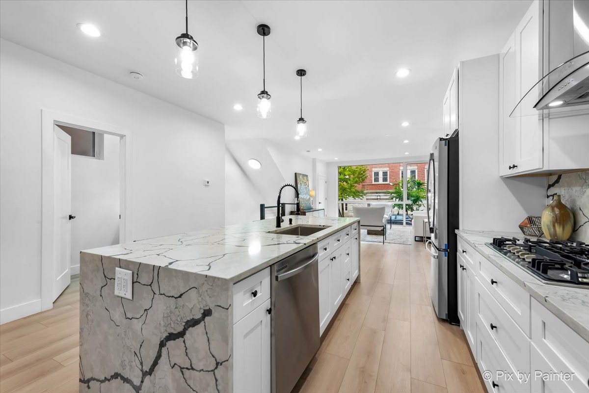 BRAND NEW CONSTRUCTION - LUXURY DUPLEX DOWN - SPACIOUS 2396sf INTERIOR & 3 OUTDOOR SPACES! Wonderful open concept living/dining/kitchen area, with 3 bedrooms + 3 baths, plus Big Bonus family room. Dynamic contemporary architecture, bright sundrenched spacious interiors, with every amenity. Elegant primary bedroom suite with walk-in closet and ensuite bath including dual vanities, soaking tub and step-in shower. Back porch and common back yard area, perfect for BBQ'ing, entertaining, or lounging about! 1 space parking in secure private garage. In unit washer/dryer hookups. Charming neighborhood with close by shopping, cafes and restaurants, the brewery scene, and major transportation. A short walk to Humboldt Park with all the amazing things it has to offer - biking & walking trails, tennis & pickleball courts, baseball, soccer, basketball, fieldhouse, a scenic pond, and 2 playgrounds! ***Note: This unit can be bought as Individual unit or both Units in the duplex can be bought together (as 1 building) at a discount*** AN AMAZING OPPORTUNITY TO CALL THIS HOME!