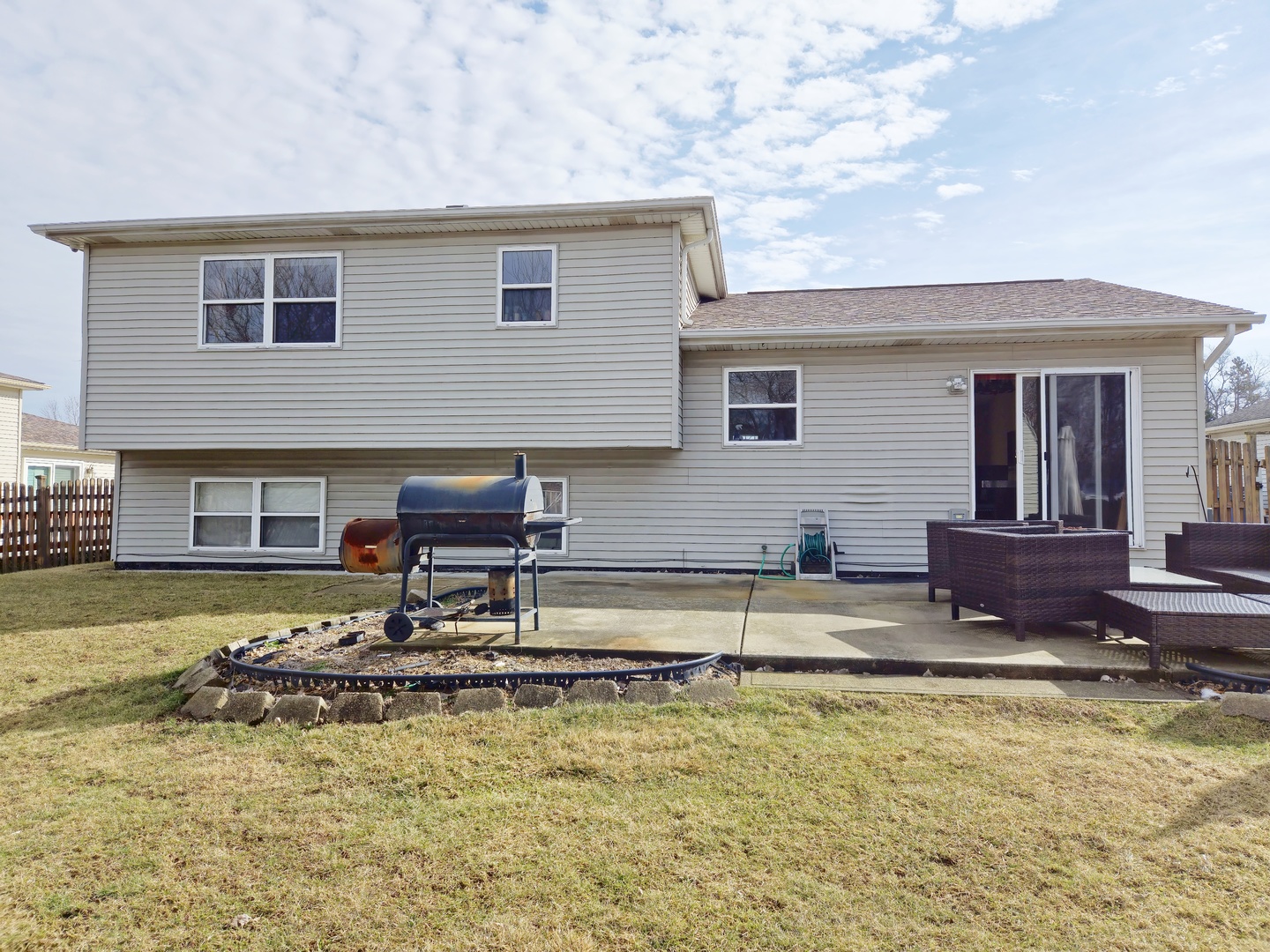 Step inside and explore the spacious layout of this home, featuring four bedrooms with the potential for a fifth. Upon entering, you're welcomed by a ceramic-tiled foyer that leads into a cozy living room, complete with plush carpeting and vaulted ceilings. The kitchen, also adorned with ceramic tiles, stainless steel appliances, and opens to a dining area. Upstairs, you'll find three cozy bedrooms. The full bathroom on this level is accessible from both the hallway and the primary bedroom, offering privacy and convenience. Descending to the lower level, a comfortable family room with a warm gas fireplace awaits, along with another full bathroom and the fourth bedroom designed for peaceful relaxation. The basement offers a large, versatile space currently set up as a laundry and furnace room but easily convertible into a fifth bedroom, theater room, or home office, adapting to your lifestyle needs. Outside, the fenced backyard includes two sheds, the largest with electrical power, and an above-ground pool for outdoor enjoyment. The roof was replaced about six years ago. Please be aware that this property is a new short sale, and buyers should be prepared to wait 3 to 6 months. This home needs paint and other cosmetic work but offers an excellent opportunity for someone with the right vision. The house is being sold as-is.