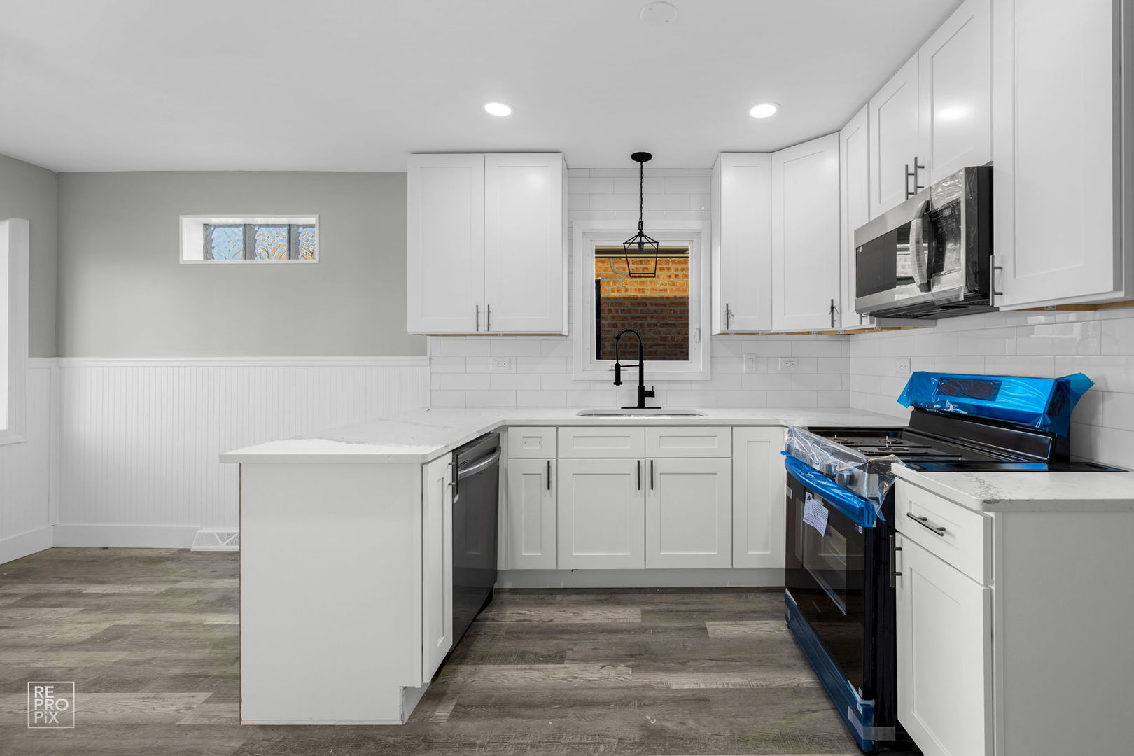 **APPROVED BUYERS MAY ELIGIBLE FOR UP TO $45,000. IN DOWN PAYMENT ASSISTANCE** ALL BRICK CHICAGO STEP RANCH FULLY RENOVATED AND UPDATED WITH 4 BEDROOMS AND 2 FULL BATHROOMS, OVERSIZED 2.5 CAR GARAGE AND FULLY FENCED IN BACKYARD AWAITS IT'S NEW OWNERS. GET READY TO BE IMPRESSED AS YOU ENTER WITH ALL NEW WOOD FLOORING, DOORS, TRIM, MOLDINGS, LIGHTING AND HARDWARE. FIRST FLOOR INCLUDED 3 GENEROUSLY SIZED BEDROOMS, FULL BATHROOM, LIVING/DINING ROOM, CHEFS KITCHEN WITH NEW 42 WHITE SHAKER SOFT CLOSE CABINETS, QUARTZ COUNTERS, SUBWAY TILE BACKSPLASH AND PROFESSIONAL GRADE SS APPLIANCE PACKAGE WITH COUNTER DEPTH REFRIGERATOR, STOVE/RANGE, DISHWASHER AND MICROWAVE. BUT DOWNSTAIRS YOU'll FIND ANOTHER FULL BATHROOM, BEDROOM, MASSIVE FAMILY ROOM, SEPERATE LAUNDRY ROOM AND TONS OF STORAGE. ONE LOOK AND YOU WON'T BE DISSAPOINTED, THIS HOME HAS CENTRAL AC AND GAS FURNACE. NOTHING TO DO BUT MOVE RIGHT IN!