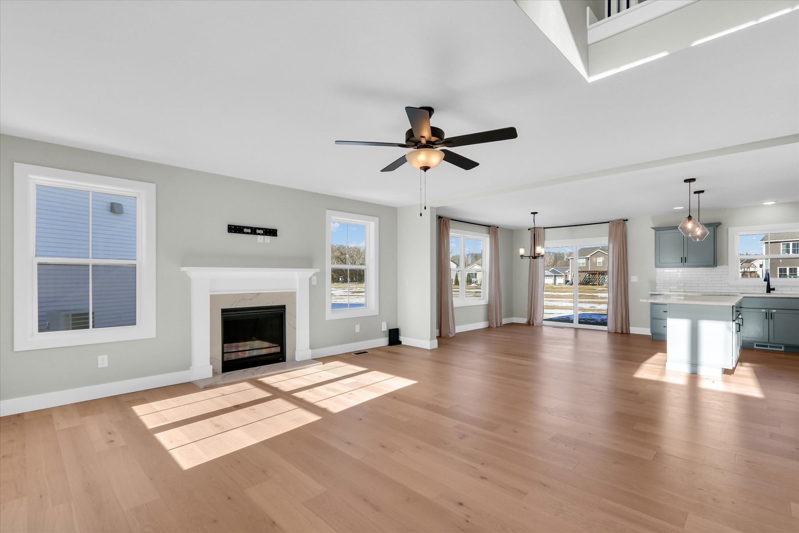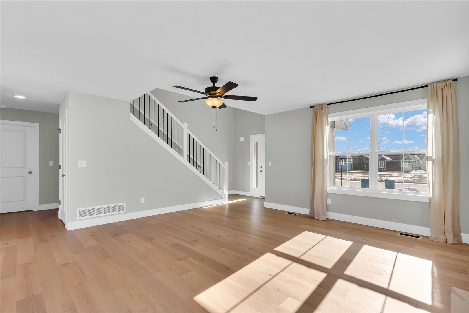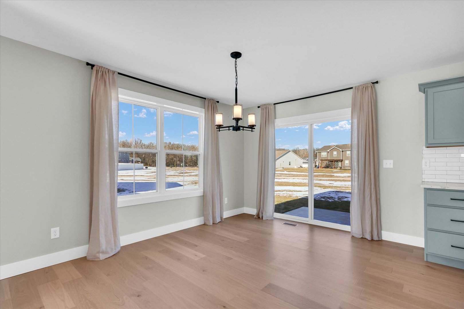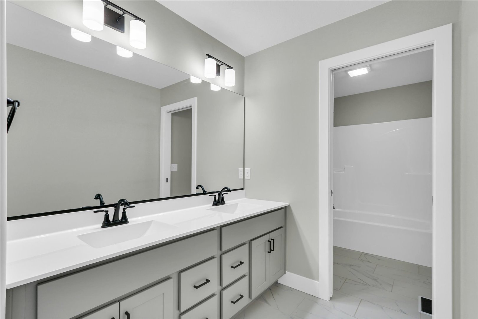 Move right in to this light and bright, spacious home in Sage Meadows! Located on a cul-de-sac, this open concept offers hardwood flooring in the main living area and an abundance of natural light. The kitchen includes an eat-at island, stainless steel appliances, subway tiled backsplash and quartz counter tops. Dining area with sliding glass doors walks out to the concrete patio overlooking the commons area and wellness trail. Desired first-floor primary bedroom with dual walk-in closets. Primary bathroom features a freestanding tub, double sink vanity, linen closet and separate shower. Second floor includes 3 spacious bedrooms and a full bathroom also with dual sink vanity. Mud/laundry room adjacent to the 2-car garage and includes a bench & lockers and additional cabinetry above the included, like new, washer and dryer. Basement is full, unfinished, and plumbed for future bathroom. This home, lived in for just over one year, already boasts numerous upgrades compared to the new builds nearby. Conveniently located next to I-72, Lodge Park, Kirby Medical Center