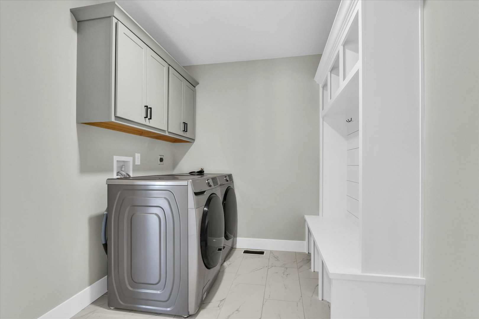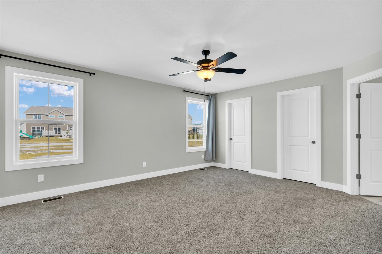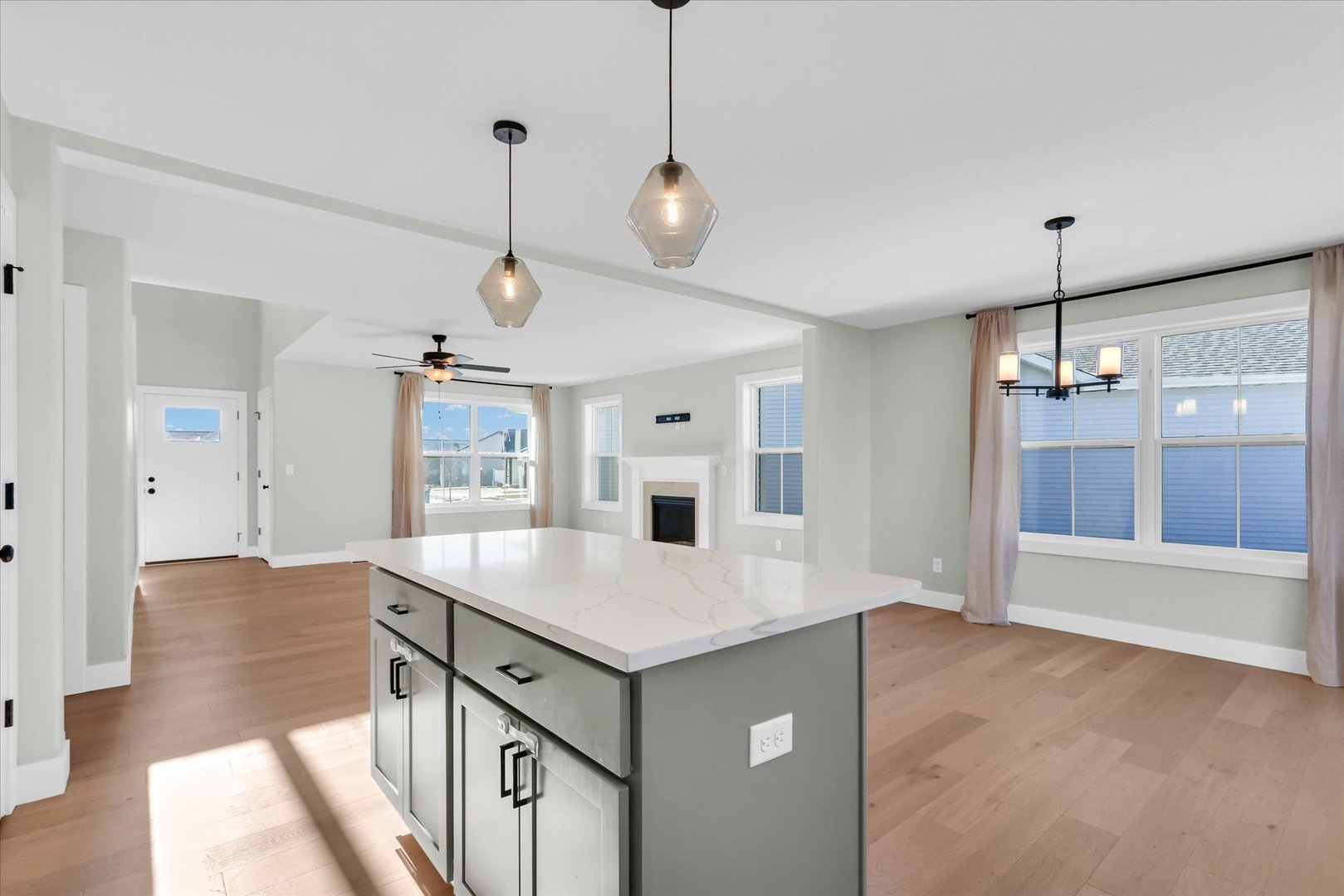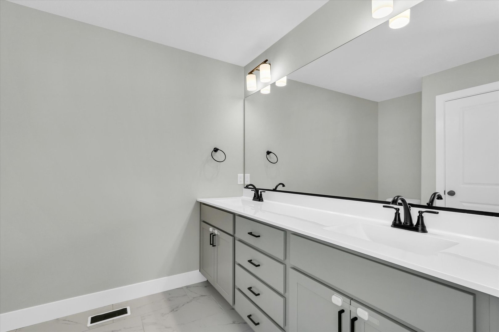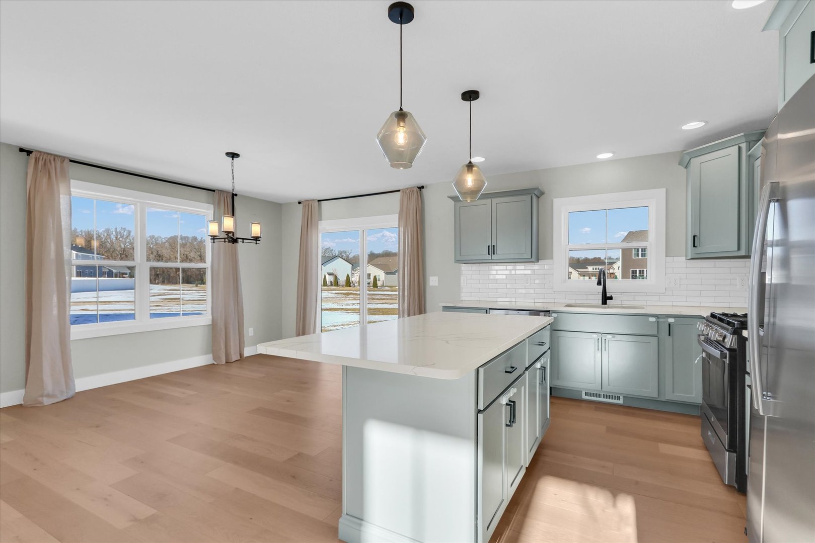 Move right in to this light and bright, spacious home in Sage Meadows! Located on a cul-de-sac, this open concept offers hardwood flooring in the main living area and an abundance of natural light. The kitchen includes an eat-at island, stainless steel appliances, subway tiled backsplash and quartz counter tops. Dining area with sliding glass doors walks out to the concrete patio overlooking the commons area and wellness trail. Desired first-floor primary bedroom with dual walk-in closets. Primary bathroom features a freestanding tub, double sink vanity, linen closet and separate shower. Second floor includes 3 spacious bedrooms and a full bathroom also with dual sink vanity. Mud/laundry room adjacent to the 2-car garage and includes a bench & lockers and additional cabinetry above the included, like new, washer and dryer. Basement is full, unfinished, and plumbed for future bathroom. This home, lived in for just over one year, already boasts numerous upgrades compared to the new builds nearby. Conveniently located next to I-72, Lodge Park, Kirby Medical Center