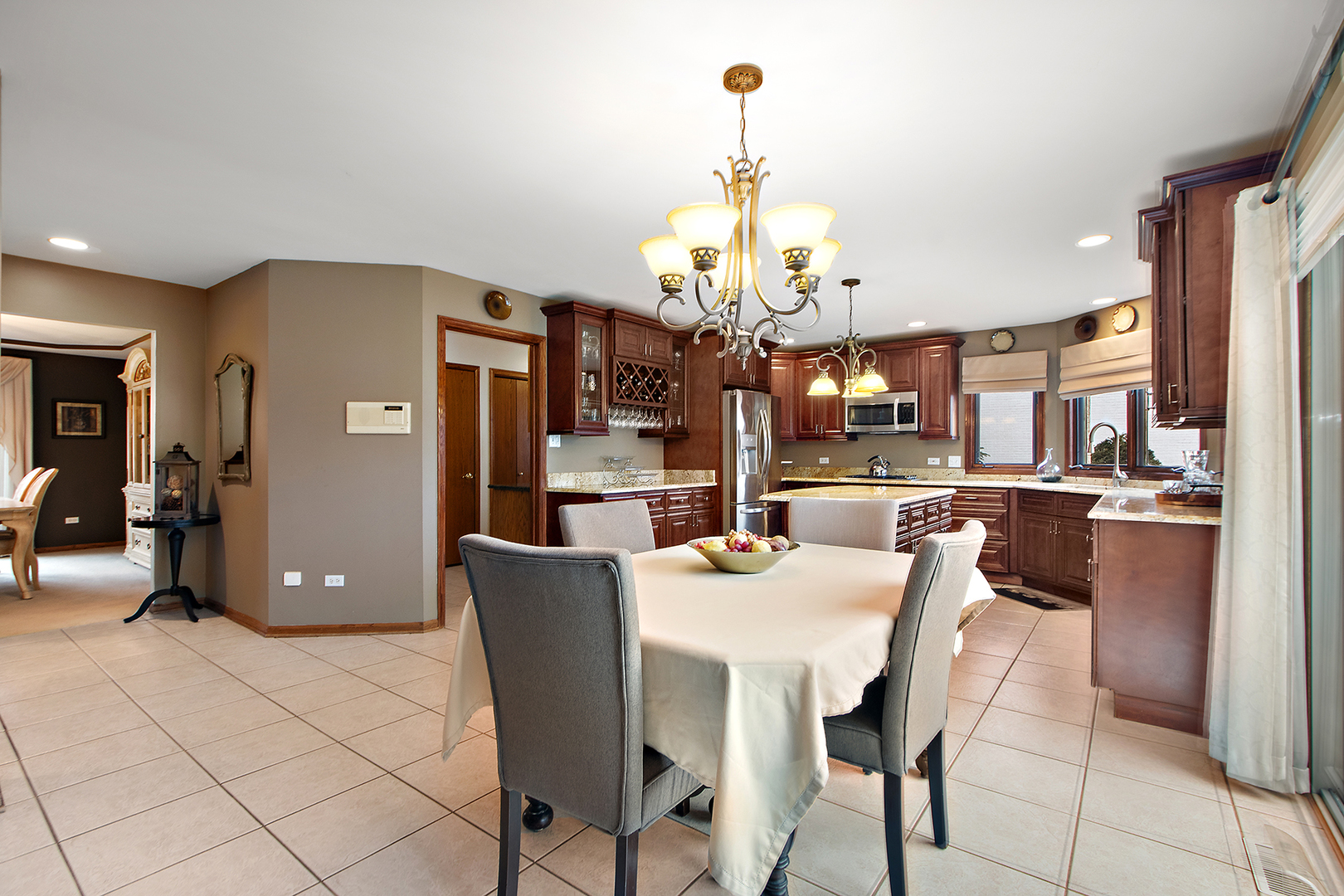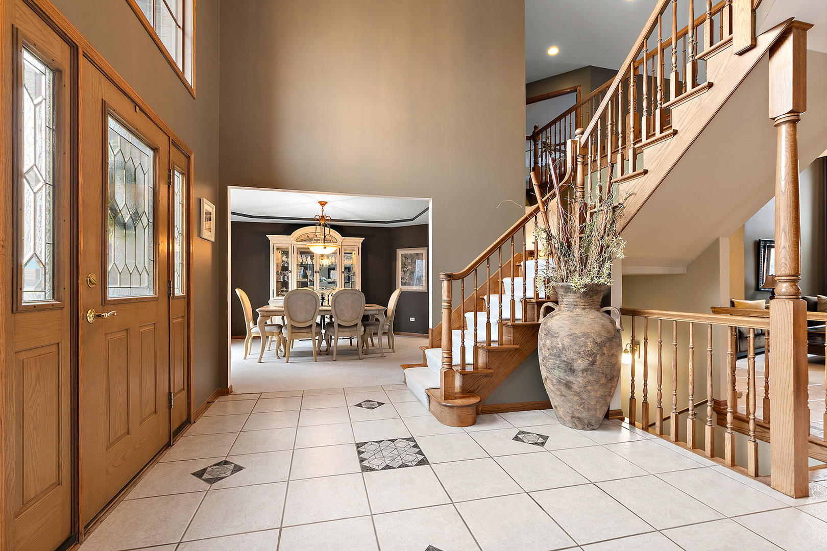 Backing onto serene open space, this exceptional 5-bedroom, 3-bathroom, two-story home offers a unique and carefully designed floor plan ideal for entertaining. Step inside to find elegant formal living and dining rooms at the entrance, perfect for hosting guests. The family room boasts soaring ceilings, a striking brick fireplace, and windows that frame beautiful rear views, as well as a charming bridge above. A spectacular setting for any occasion. This home's kitchen is a culinary masterpiece. Granite countertops, rich cherry cabinetry, and stainless steel appliances pair wonderfully with the dedicated wine station. For larger gatherings, enjoy the adjacent kitchenette featuring a pantry, second oven with cooktop, microwave, dishwasher, and a generous cabinet bank complete with a sink. This thoughtfully designed mudroom has garage access, washer/dryer, storage, and even a full shower proves that no detail has been overlooked-perfect for managing daily life or cleaning up after pets and outdoor adventures. The attached 3-car garage offers private side entry and a staircase leading to a finished basement recreation area. This flexible space provides ample room for activities, along with storage that can easily be converted into additional bedrooms for growing families or related living needs. Y staircase to a luxurious primary bedroom with double door entry. The ensuite features dual sinks, a seated vanity area, an oversized jetted tub, separate shower, private commode, and dual walk-in closets-everything you need for your own spa-like retreat. The three additional upper-level bedrooms offer plenty of space and comfort for family. Nestled in the heart of Orland Park, this home is conveniently located near top-tier amenities. Enjoy two community playgrounds and a short walk to Centennial Park, featuring 58+ acres of vibrant outdoor space and a picturesque 12-acre lake. A sought after area recognized for its abundance of shopping, dining, entertainment options, and healthcare facilities-all just moments away. Meticulously maintained and expertly designed for functionality and convenience, this home truly has it all. New roof, skylights, gutters and downspouts! Make it yours and enjoy the best that Orland Park living has to offer.