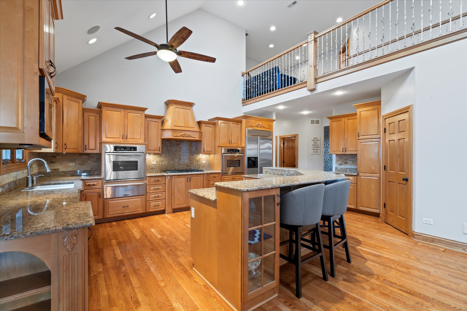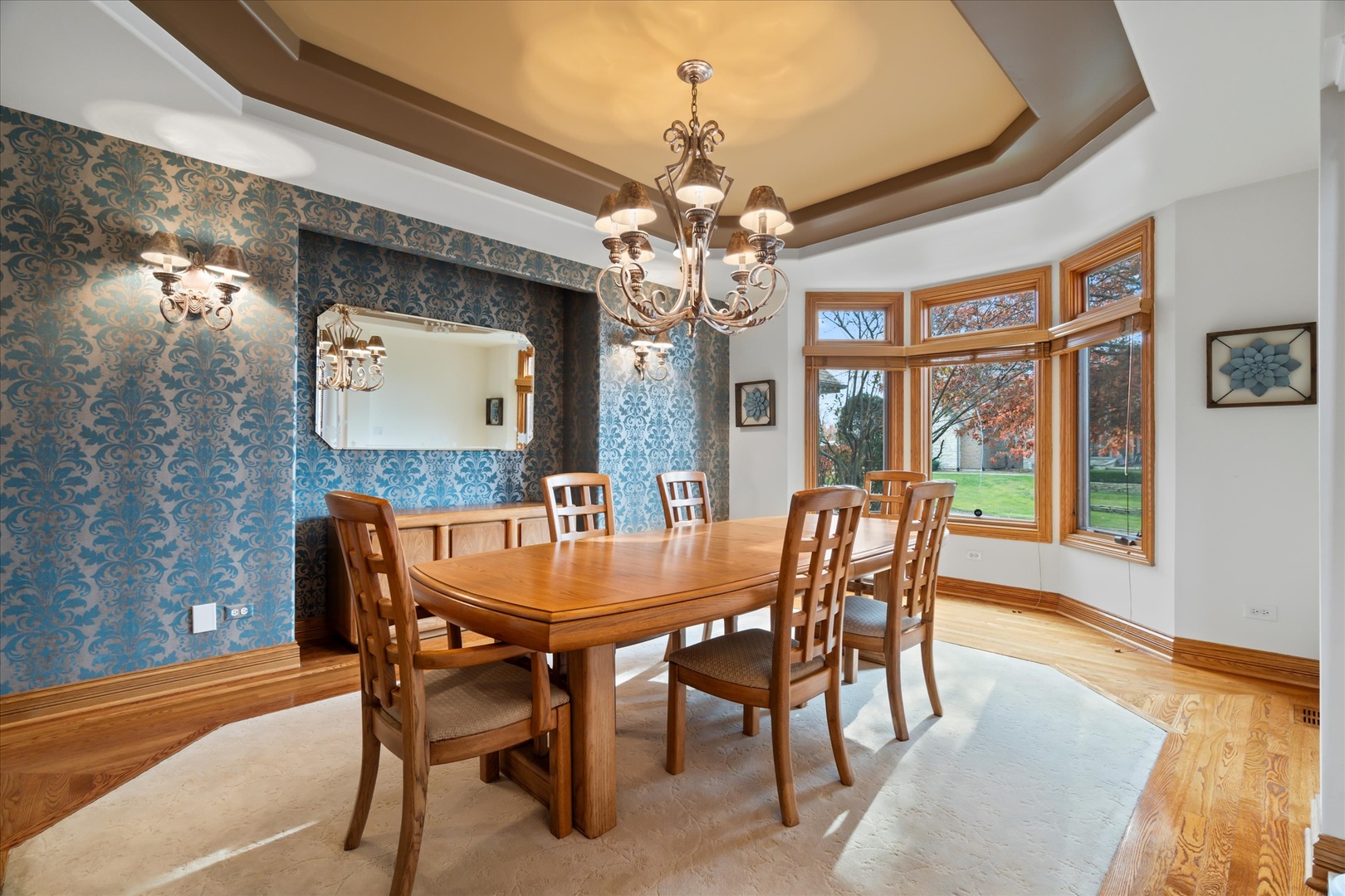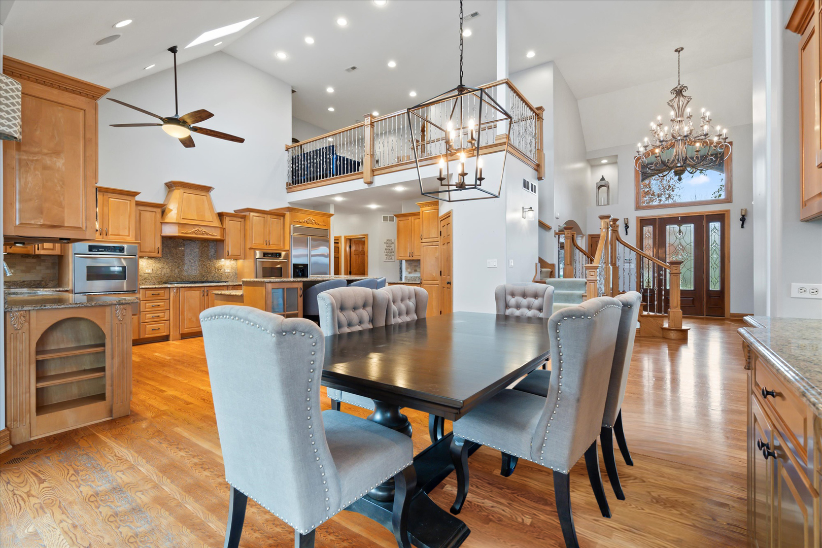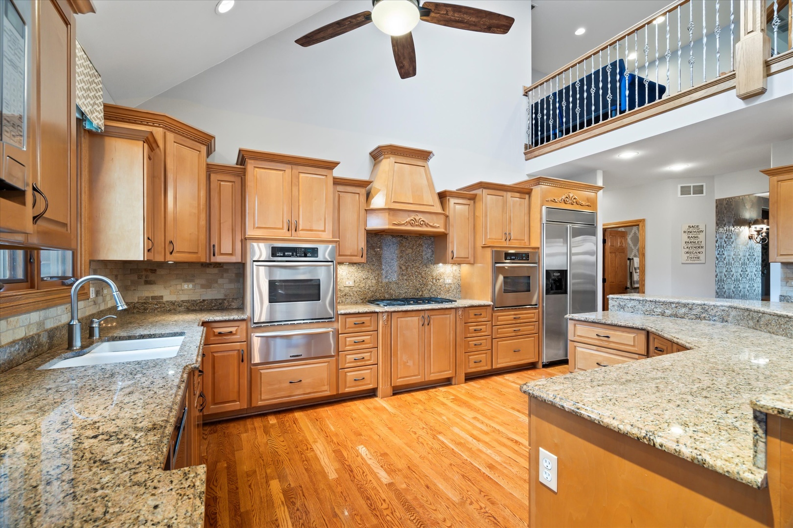 Nestled in a private upscale community, this stunning CUSTOM home exudes sophistication, designer finishes, functionality and luxury living. Exceptional architecture and superior craftsmanship that is sure to wow you at every turn. Upon entering the home, you are greeted by a grand foyer that sets the tone for the rest of this exquisite home. The split staircase, adorned by wrought iron railings, is a true focal point of this space. Open floor plan accented by soaring ceilings and a highly functional design. Decorated in stylish, neutral hues and gleaming hardwood flooring. Formal dining room perfect for entertaining on a grand scale with stylish wallpaper and tray ceilings. Gourmet kitchen has custom cabinetry, granite countertops, a large island/breakfast bar seating, a walk-in pantry and spacious eating area. Comfortable family room with beamed ceiling and a beautiful, corner fireplace. Spectacular sunroom off of the kitchen and family room with tons of windows that allows for tons of sunlight. Regal FIRST FLOOR MASTER SUITE with barnwood accent wall. Private master bath with dual vanity, soaking tub and separate shower. As you go up to the second level you're greeted by a sprawling catwalk/loft area that overlooks the family room and kitchen area. On the second level there are spacious bedrooms with ample closet space and a massive unfinished attic/bonus space that you can turn into your dream space. Finished WALKOUT lower level offers radiant heat, a wet bar, hot tub and room for recreation, gaming, storage, exercise and so much more. Picturesque grounds with mature landscaping and fenced yard for privacy. Paver driveway and expansive patio. 3+ car heated garage. Conveniently located near shopping, dining, Metra, expressway access, world renowned golf courses, parks, schools and thousands of acres of forest preserves. ROOF and Humidifier, Microwave and Dishwasher (2022) Fencing (2020). WATCH THE FULL LENGTH VIDEO!
