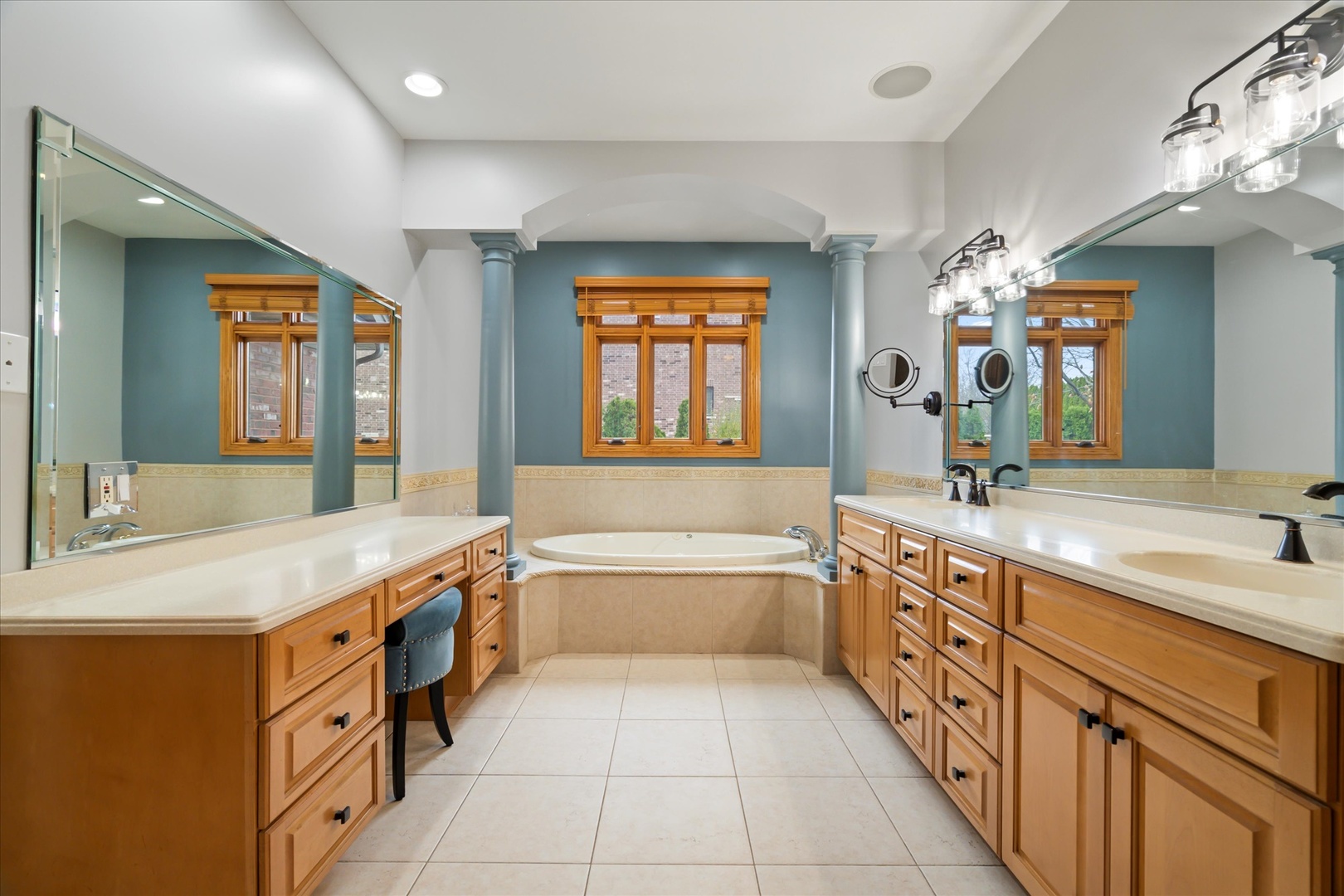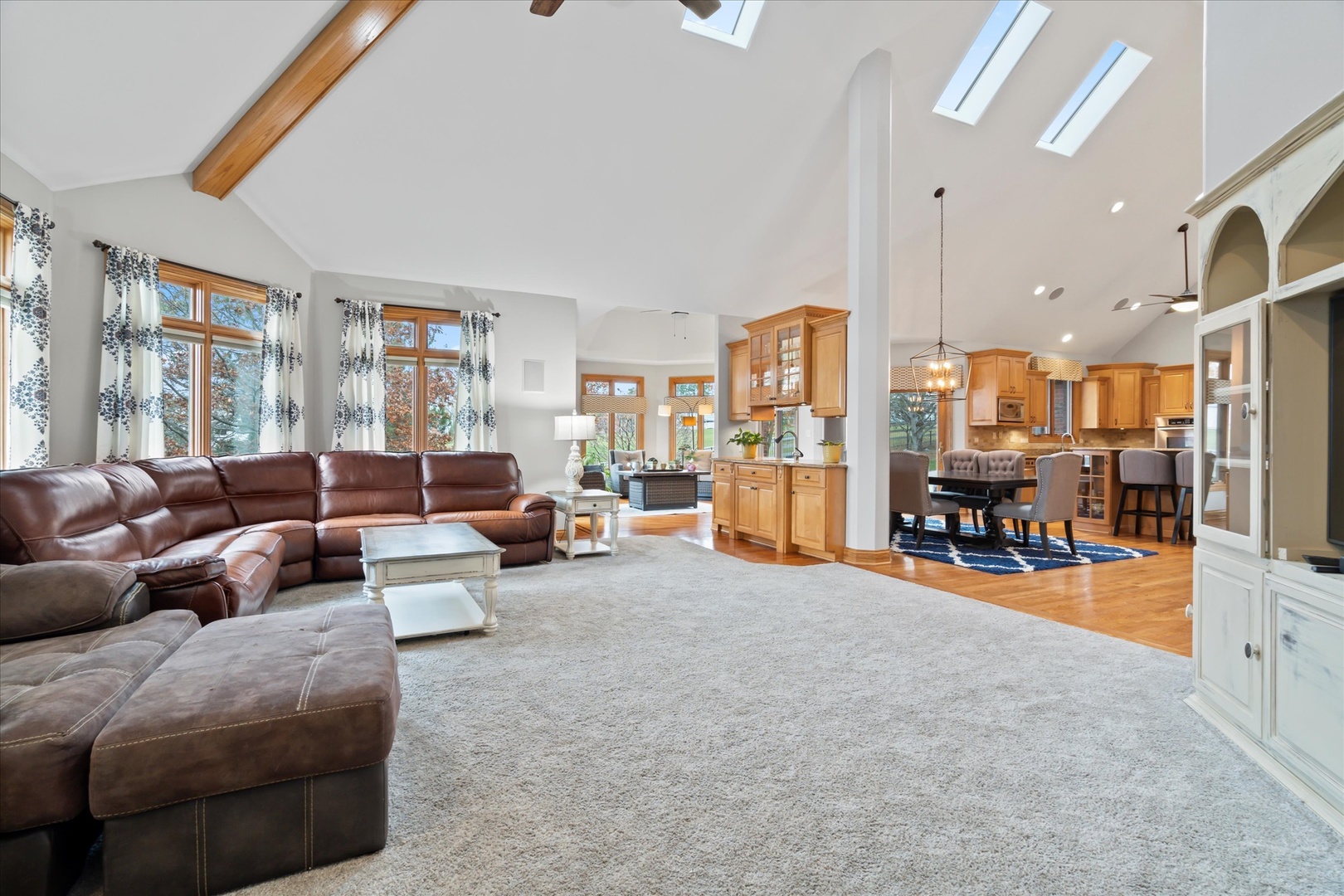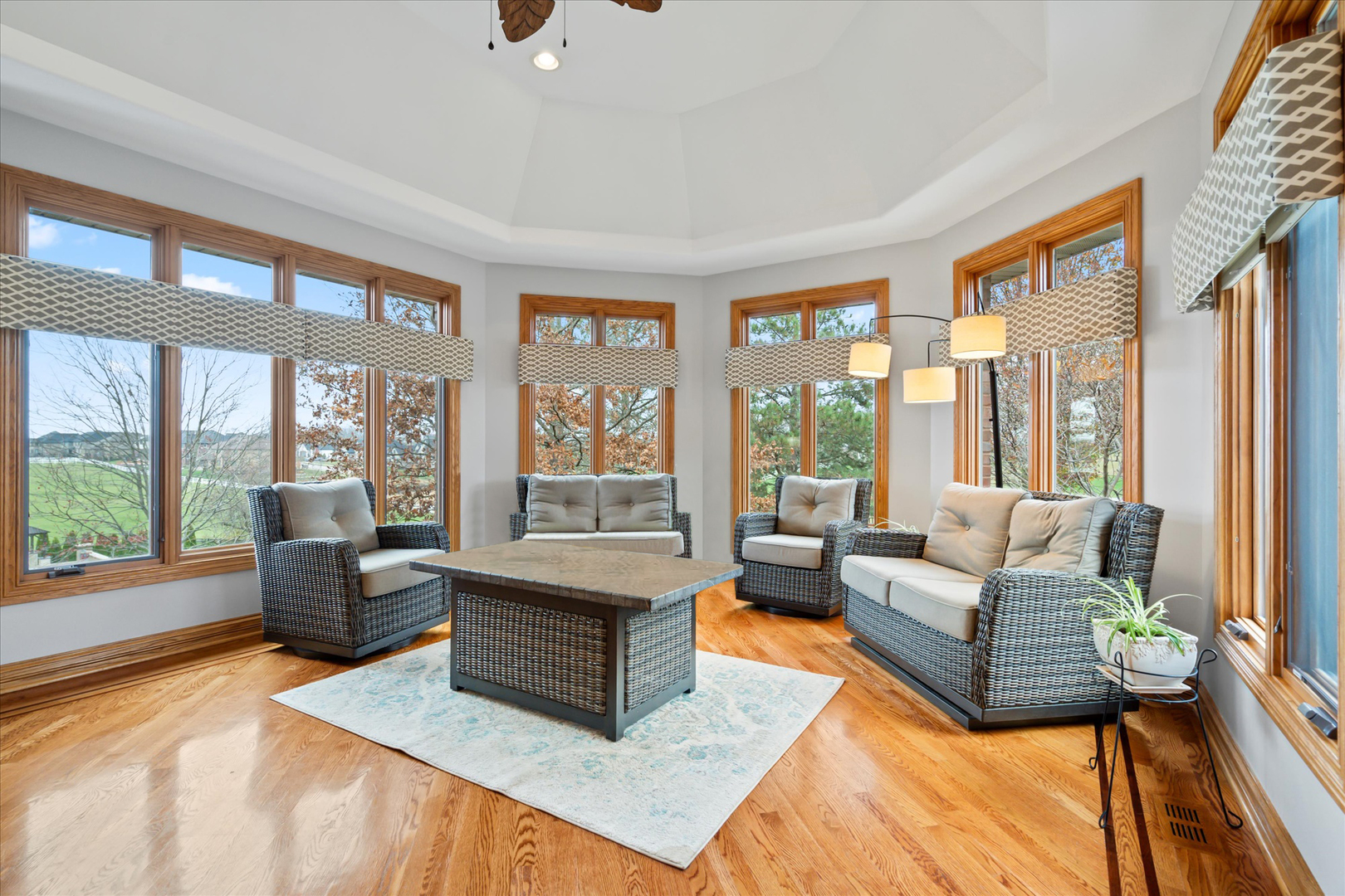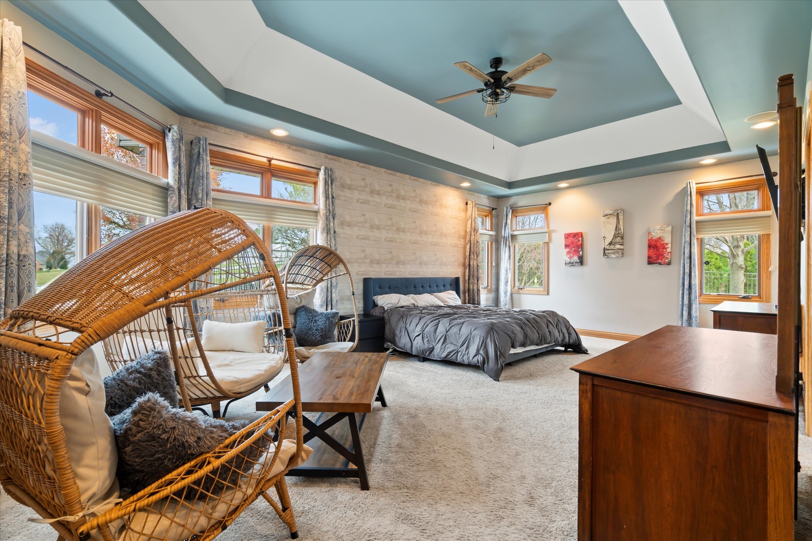 Nestled in a private upscale community, this stunning CUSTOM home exudes sophistication, designer finishes, functionality and luxury living. Exceptional architecture and superior craftsmanship that is sure to wow you at every turn. Upon entering the home, you are greeted by a grand foyer that sets the tone for the rest of this exquisite home. The split staircase, adorned by wrought iron railings, is a true focal point of this space. Open floor plan accented by soaring ceilings and a highly functional design. Decorated in stylish, neutral hues and gleaming hardwood flooring. Formal dining room perfect for entertaining on a grand scale with stylish wallpaper and tray ceilings. Gourmet kitchen has custom cabinetry, granite countertops, a large island/breakfast bar seating, a walk-in pantry and spacious eating area. Comfortable family room with beamed ceiling and a beautiful, corner fireplace. Spectacular sunroom off of the kitchen and family room with tons of windows that allows for tons of sunlight. Regal FIRST FLOOR MASTER SUITE with barnwood accent wall. Private master bath with dual vanity, soaking tub and separate shower. As you go up to the second level you're greeted by a sprawling catwalk/loft area that overlooks the family room and kitchen area. On the second level there are spacious bedrooms with ample closet space and a massive unfinished attic/bonus space that you can turn into your dream space. Finished WALKOUT lower level offers radiant heat, a wet bar, hot tub and room for recreation, gaming, storage, exercise and so much more. Picturesque grounds with mature landscaping and fenced yard for privacy. Paver driveway and expansive patio. 3+ car heated garage. Conveniently located near shopping, dining, Metra, expressway access, world renowned golf courses, parks, schools and thousands of acres of forest preserves. ROOF and Humidifier, Microwave and Dishwasher (2022) Fencing (2020). WATCH THE FULL LENGTH VIDEO!