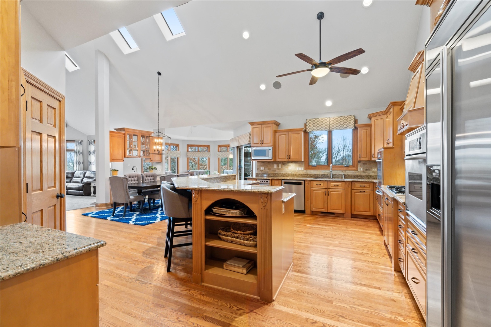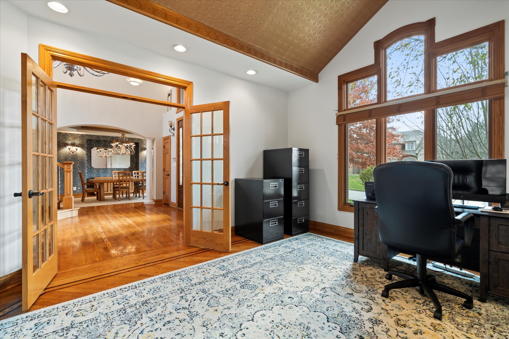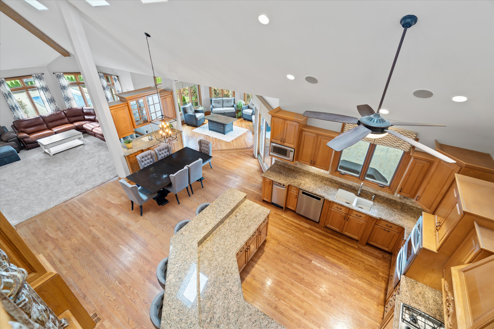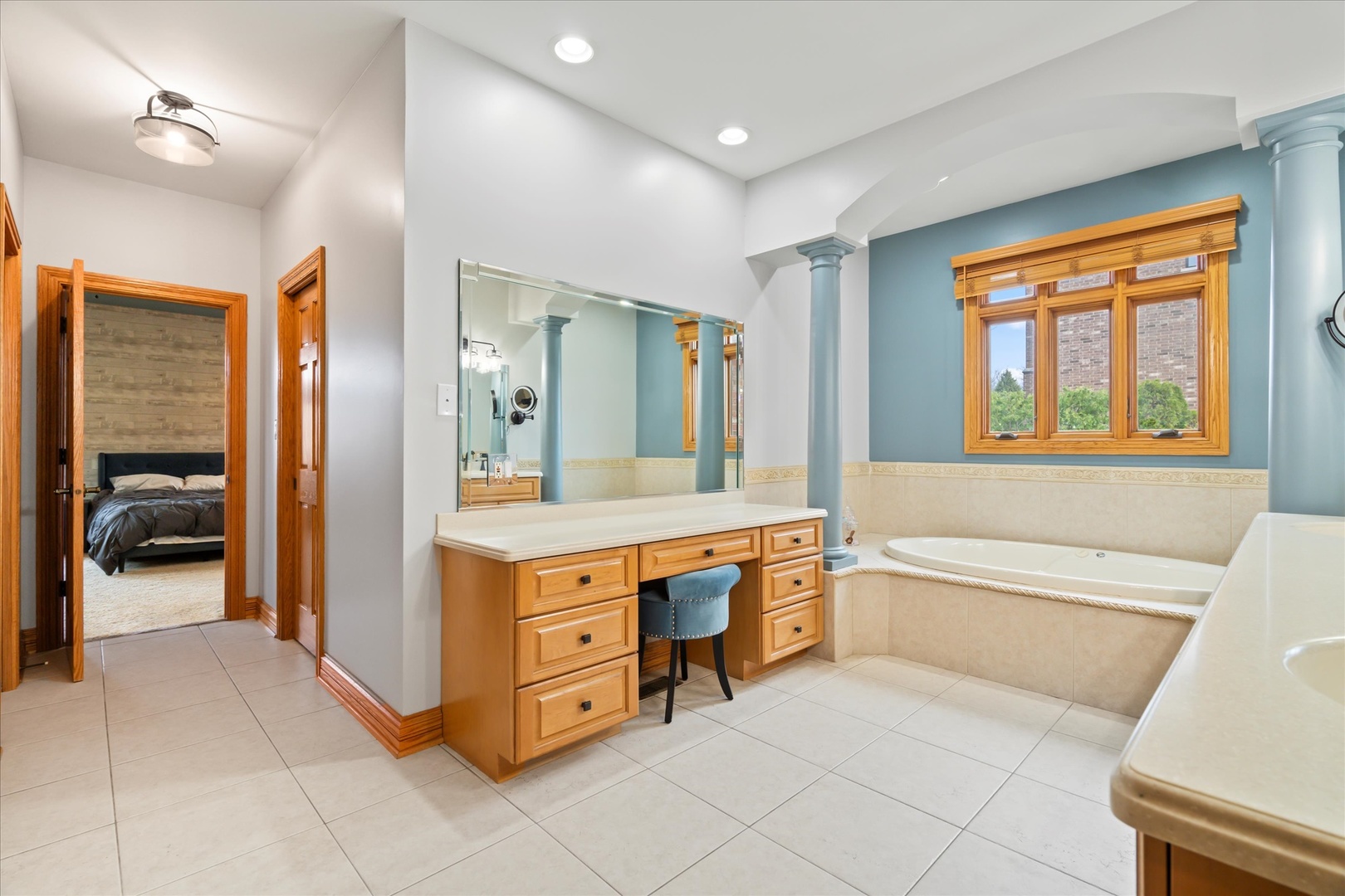 Nestled in a private upscale community, this stunning CUSTOM home exudes sophistication, designer finishes, functionality and luxury living. Exceptional architecture and superior craftsmanship that is sure to wow you at every turn. Upon entering the home, you are greeted by a grand foyer that sets the tone for the rest of this exquisite home. The split staircase, adorned by wrought iron railings, is a true focal point of this space. Open floor plan accented by soaring ceilings and a highly functional design. Decorated in stylish, neutral hues and gleaming hardwood flooring. Formal dining room perfect for entertaining on a grand scale with stylish wallpaper and tray ceilings. Gourmet kitchen has custom cabinetry, granite countertops, a large island/breakfast bar seating, a walk-in pantry and spacious eating area. Comfortable family room with beamed ceiling and a beautiful, corner fireplace. Spectacular sunroom off of the kitchen and family room with tons of windows that allows for tons of sunlight. Regal FIRST FLOOR MASTER SUITE with barnwood accent wall. Private master bath with dual vanity, soaking tub and separate shower. As you go up to the second level you're greeted by a sprawling catwalk/loft area that overlooks the family room and kitchen area. On the second level there are spacious bedrooms with ample closet space and a massive unfinished attic/bonus space that you can turn into your dream space. Finished WALKOUT lower level offers radiant heat, a wet bar, hot tub and room for recreation, gaming, storage, exercise and so much more. Picturesque grounds with mature landscaping and fenced yard for privacy. Paver driveway and expansive patio. 3+ car heated garage. Conveniently located near shopping, dining, Metra, expressway access, world renowned golf courses, parks, schools and thousands of acres of forest preserves. ROOF and Humidifier, Microwave and Dishwasher (2022) Fencing (2020). WATCH THE FULL LENGTH VIDEO!