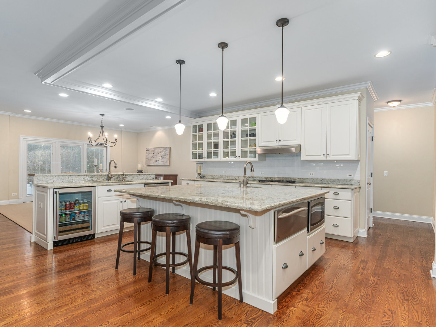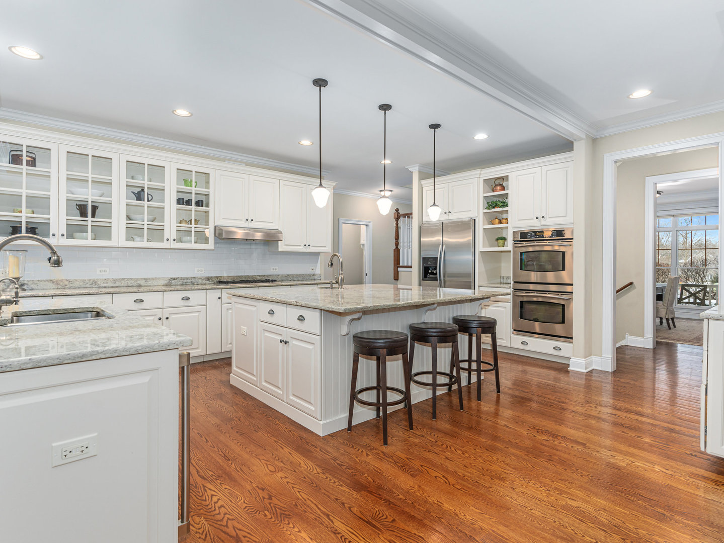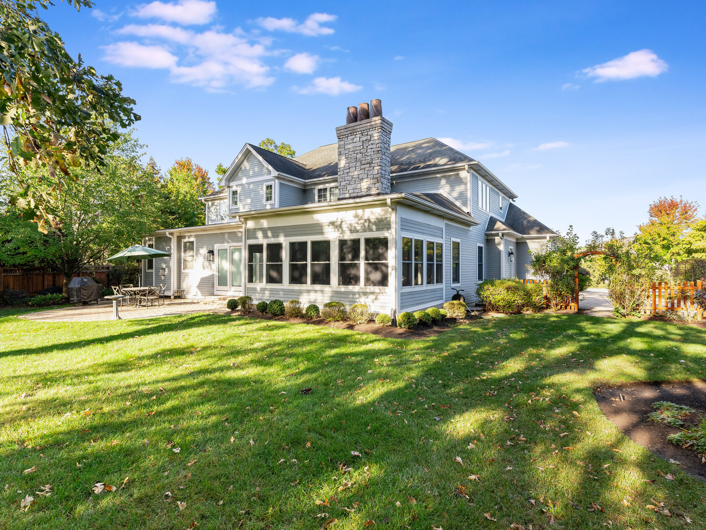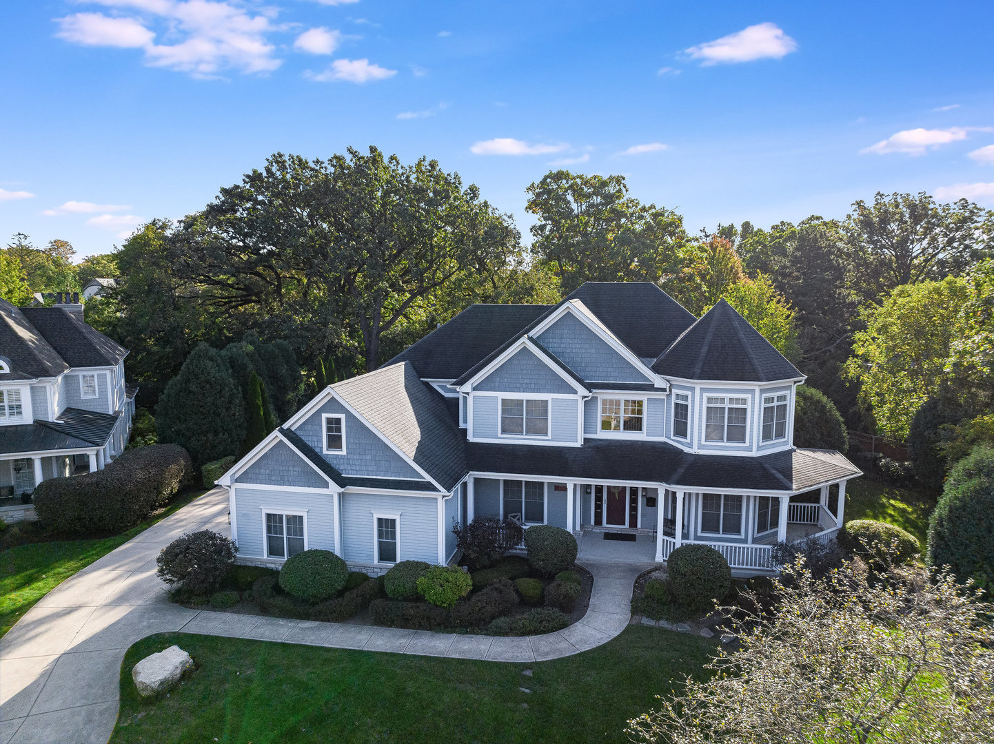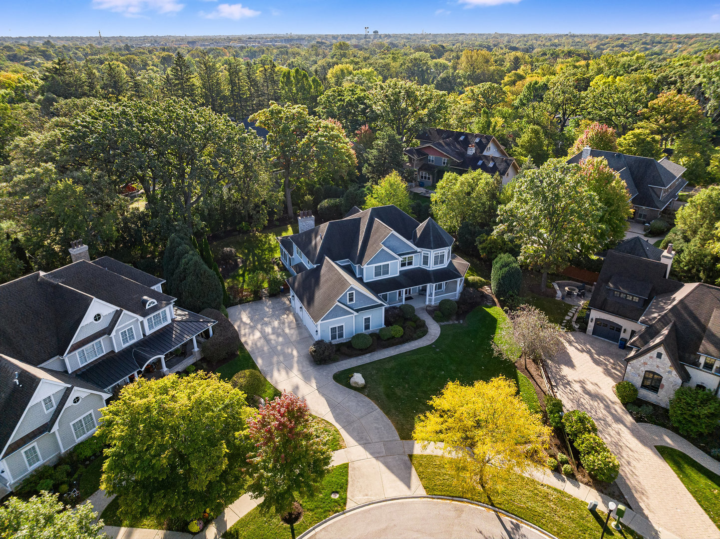 Stunning Luxury Home in Northwest Downers Grove! Nestled at the end of a quiet cul-de-sac, this exceptional home offers over 4,300 square feet of above-ground living space, plus a 2,400-square-foot finished basement, providing ample room for both relaxation and entertainment. Step inside to a flexible open floor plan featuring hardwood floors throughout the main living area. The gourmet kitchen boasts white cabinetry, granite countertops, and stainless steel appliances and seamlessly opens to the family room and dining area. Enjoy cozy evenings in the heated three-season room, which features one of the home's four fireplaces. A rare find, this home includes a first-floor primary suite, complete with its own fireplace, walk-in closet, and spa-like ensuite bathroom with a clawfoot tub and separate shower. Upstairs, you'll find four additional bedrooms, each with its own ensuite bathroom, a loft used as a media room and a laundry closet. The large 1st floor laundry room/mudroom includes a large pet washing station and direct access to the yard. An office, a music room and a powder room complete the 1st floor. The basement includes almost 2,000 square feet of additional living space with radiant heat flooring and includes a 6th bedroom, a full bathroom and a large rec room with a wet bar plus tons of storage space. The professionally landscaped yard also features a large paver patio. Additional features include a central vacuum system, hardwired ethernet to most rooms, a 3 car garage with epoxy flooring, zoned heating and AC (with hepa air filtration and a steam humidifier), 4 fireplaces (family room, primary bedroom basement and 3 season room) a whole house generator, Lutron RadioRa automation for outdoor lights (system is expandable to accommodate more light switches), reverse osmosis drinking water system and blinds between the glass in many windows. Fantastic location- close to all schools, downtown Downers Grove, shopping, restaurants and entertainment.