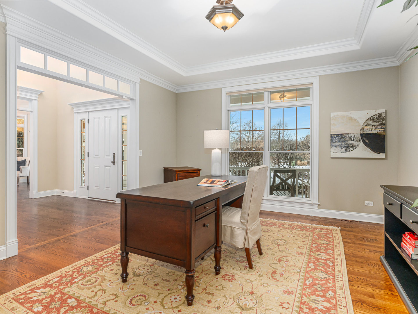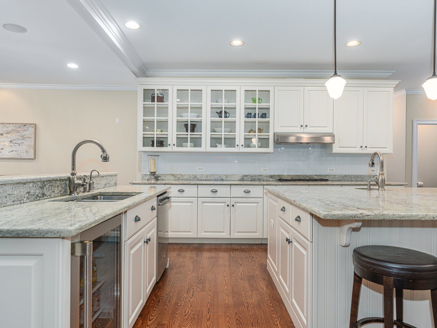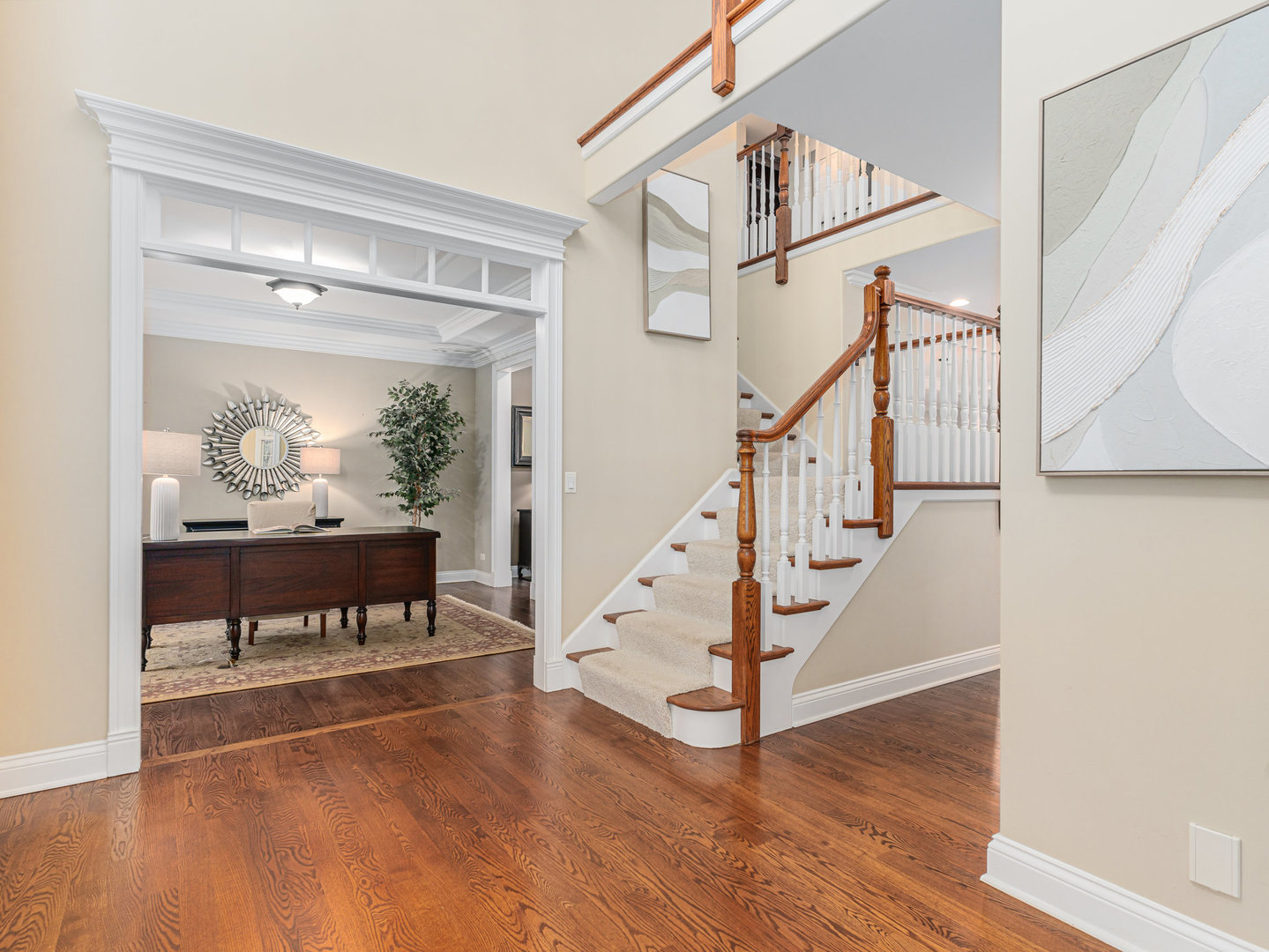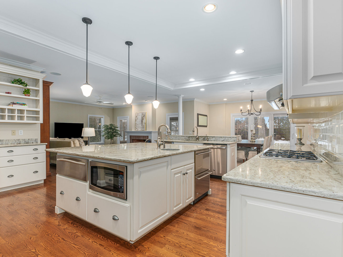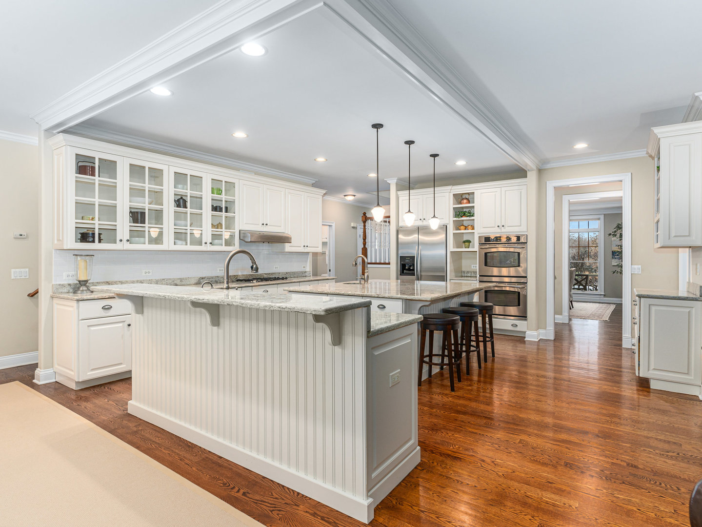 Stunning Luxury Home in Northwest Downers Grove! Nestled at the end of a quiet cul-de-sac, this exceptional home offers over 4,300 square feet of above-ground living space, plus a 2,400-square-foot finished basement, providing ample room for both relaxation and entertainment. Step inside to a flexible open floor plan featuring hardwood floors throughout the main living area. The gourmet kitchen boasts white cabinetry, granite countertops, and stainless steel appliances and seamlessly opens to the family room and dining area. Enjoy cozy evenings in the heated three-season room, which features one of the home's four fireplaces. A rare find, this home includes a first-floor primary suite, complete with its own fireplace, walk-in closet, and spa-like ensuite bathroom with a clawfoot tub and separate shower. Upstairs, you'll find four additional bedrooms, each with its own ensuite bathroom, a loft used as a media room and a laundry closet. The large 1st floor laundry room/mudroom includes a large pet washing station and direct access to the yard. An office, a music room and a powder room complete the 1st floor. The basement includes almost 2,000 square feet of additional living space with radiant heat flooring and includes a 6th bedroom, a full bathroom and a large rec room with a wet bar plus tons of storage space. The professionally landscaped yard also features a large paver patio. Additional features include a central vacuum system, hardwired ethernet to most rooms, a 3 car garage with epoxy flooring, zoned heating and AC (with hepa air filtration and a steam humidifier), 4 fireplaces (family room, primary bedroom basement and 3 season room) a whole house generator, Lutron RadioRa automation for outdoor lights (system is expandable to accommodate more light switches), reverse osmosis drinking water system and blinds between the glass in many windows. Fantastic location- close to all schools, downtown Downers Grove, shopping, restaurants and entertainment.
