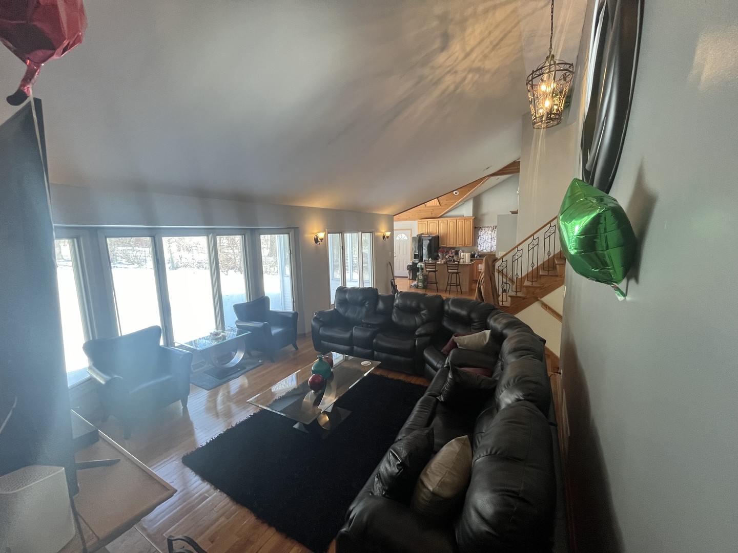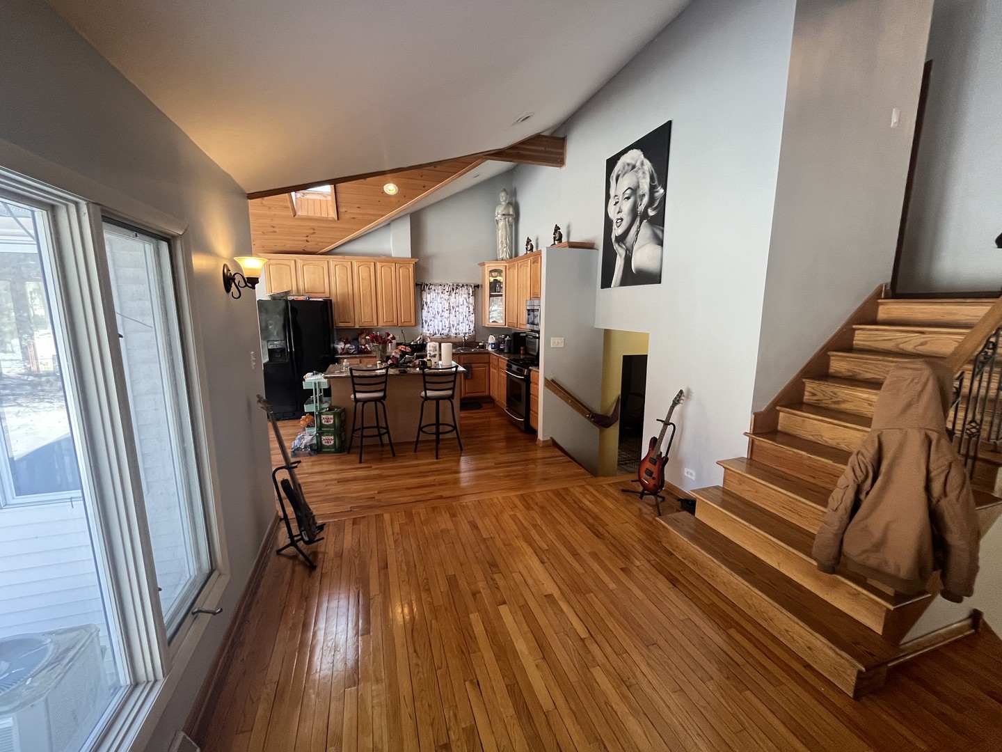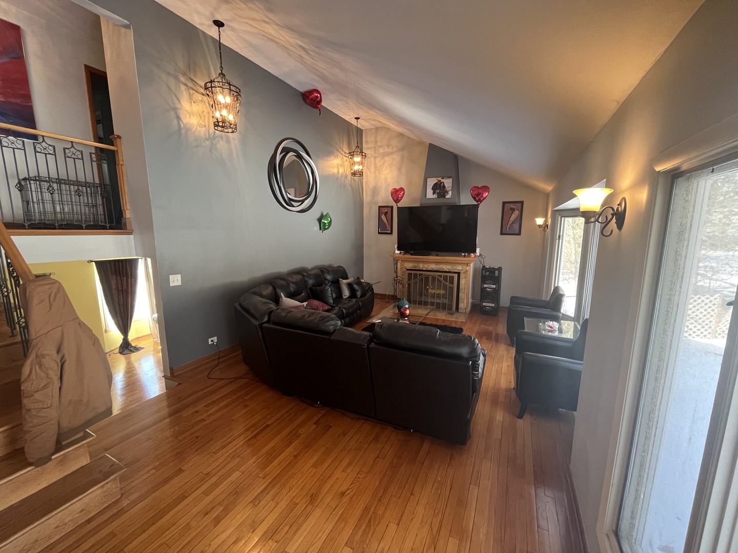 Welcome Home to this Absolutely Lovely 4 bedroom 2 bath Quad Level Home in a Wonderful Location! Features include 3 Spacious Bedrooms on the 2nd level, and the Convenience of a Spacious Bedroom on the Main Level, Beautiful Hardwood Flooring throughout, Luxurious Kitchen with Vaulted Ceilings, Skylights, and Ample Cabinet Space, Updated baths, a Cozy Family Room with a Fireplace on the Main, and a Partially Finished Basement with a Rec Room and Laundry Area, Ample Yard Space and a newer patio, also an Attached 2 car garage, and a circle drive for additional parking. A must see!