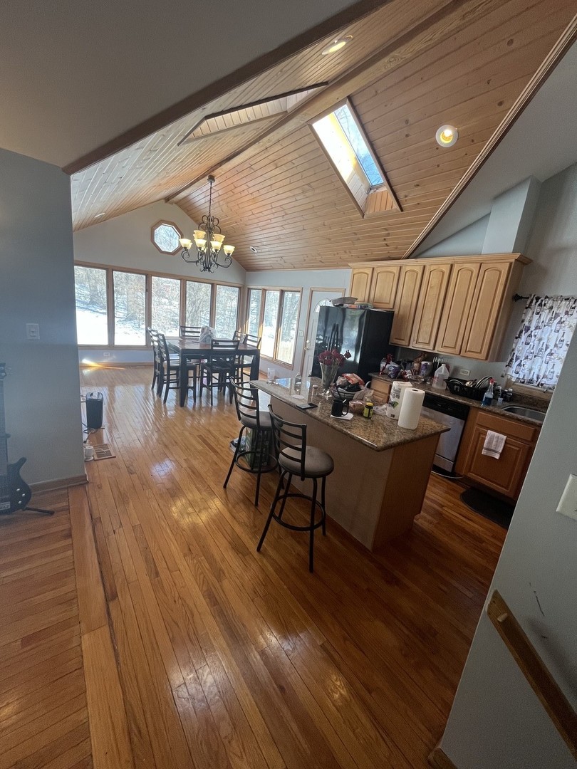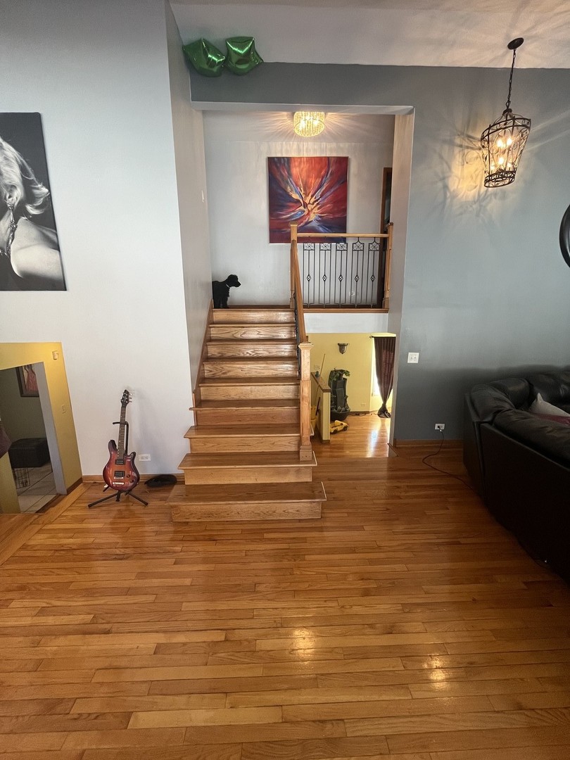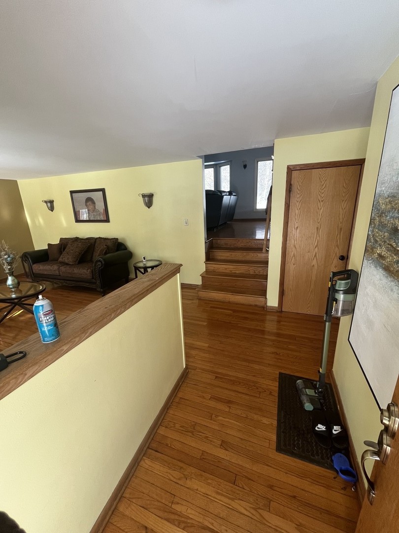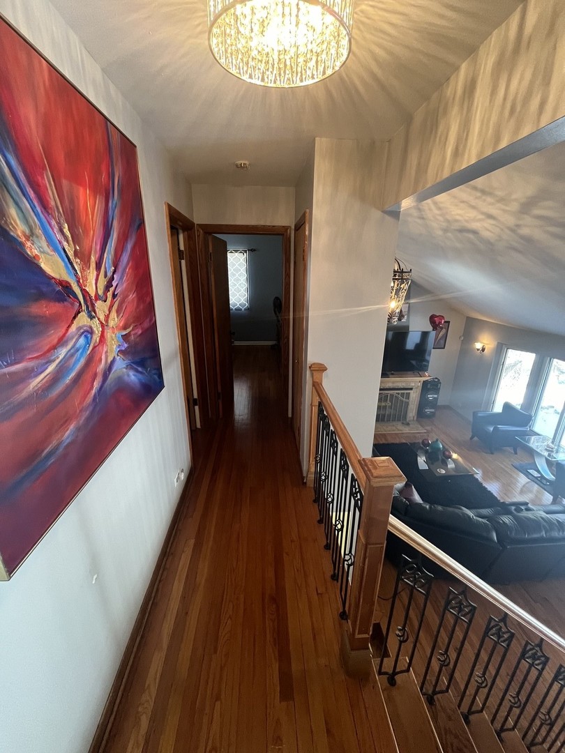 Welcome Home to this Absolutely Lovely 4 bedroom 2 bath Quad Level Home in a Wonderful Location! Features include 3 Spacious Bedrooms on the 2nd level, and the Convenience of a Spacious Bedroom on the Main Level, Beautiful Hardwood Flooring throughout, Luxurious Kitchen with Vaulted Ceilings, Skylights, and Ample Cabinet Space, Updated baths, a Cozy Family Room with a Fireplace on the Main, and a Partially Finished Basement with a Rec Room and Laundry Area, Ample Yard Space and a newer patio, also an Attached 2 car garage, and a circle drive for additional parking. A must see!