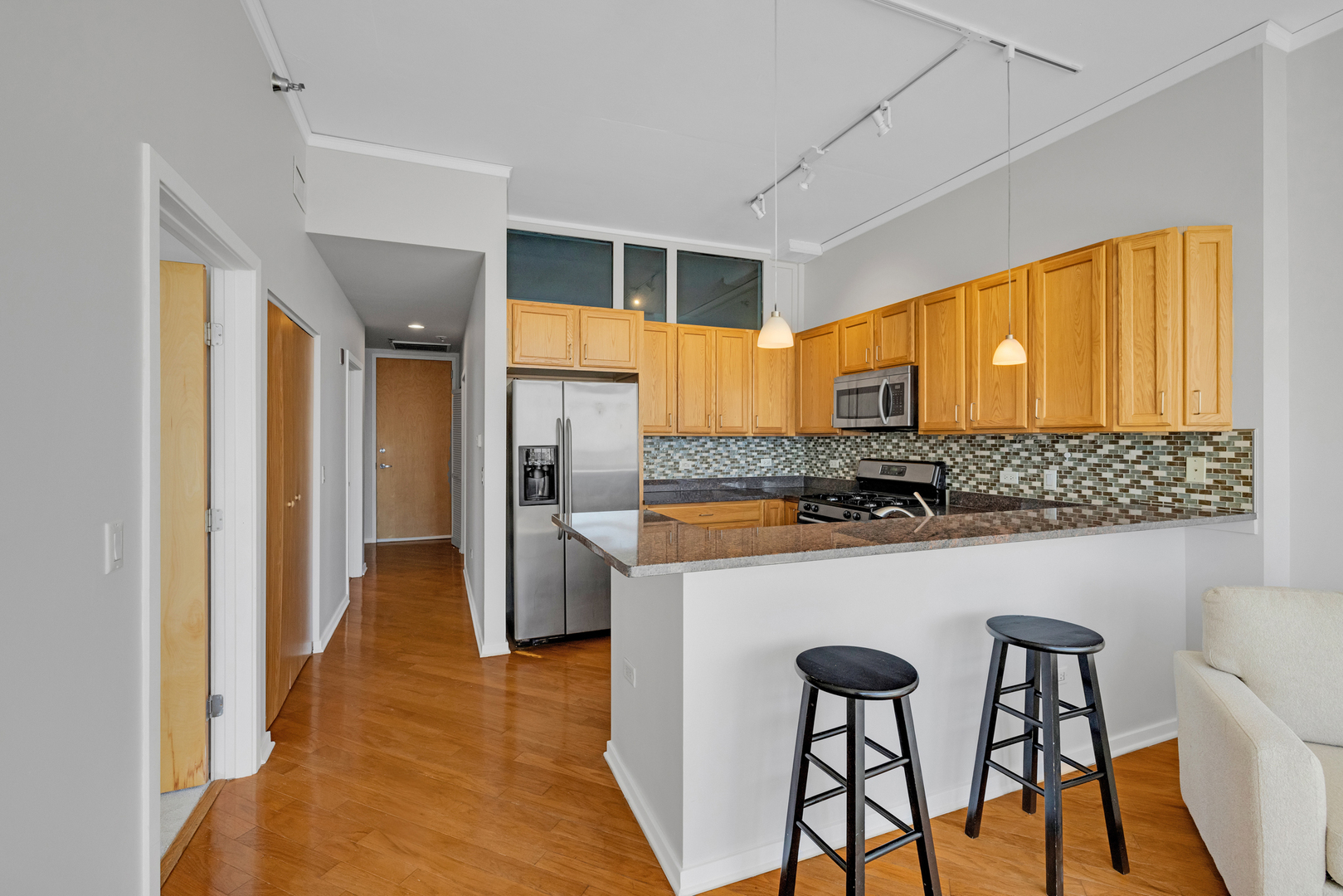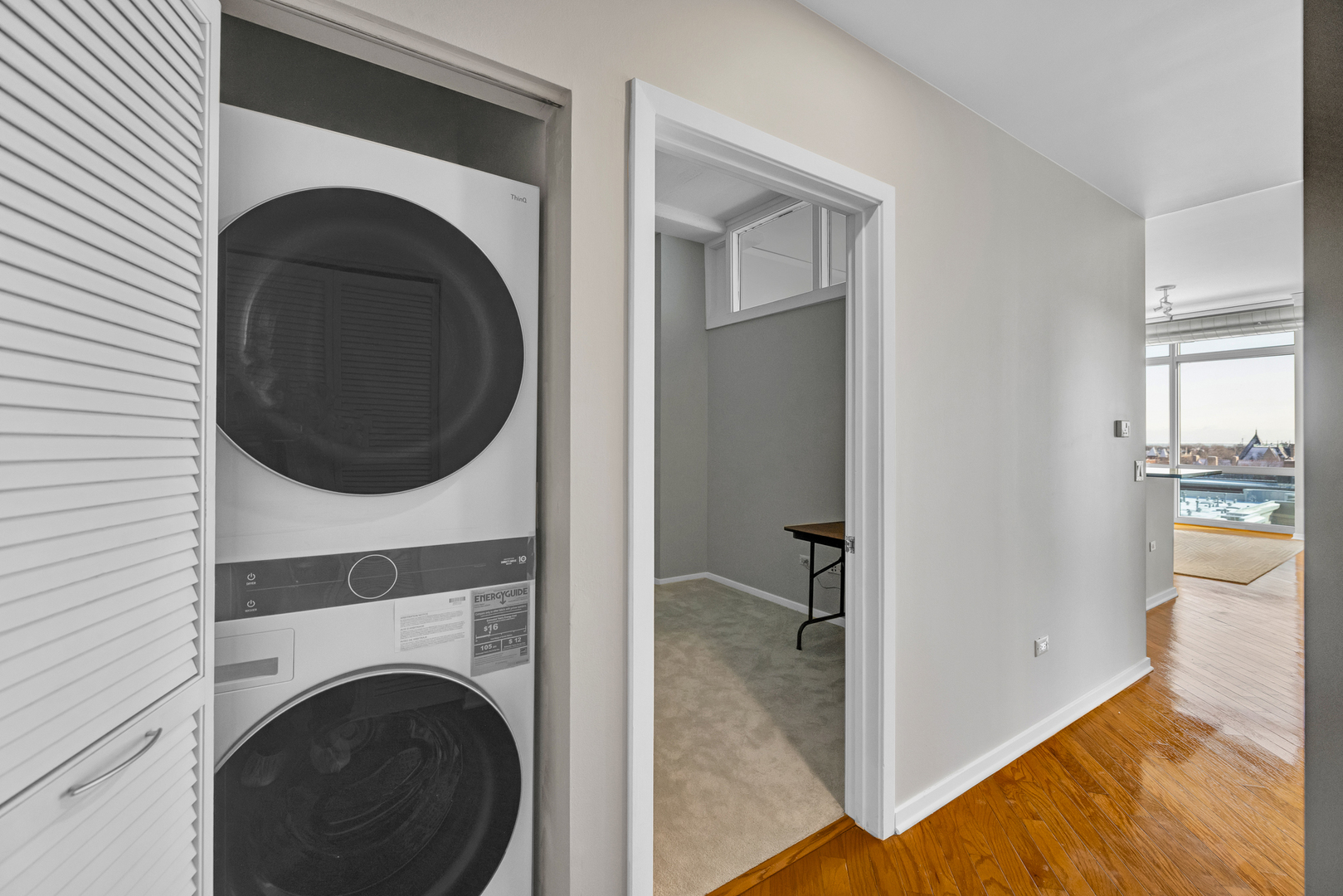Rarely available, this updated 2-bedroom condo offers a bright and spacious layout with floor-to-ceiling windows and stunning east-facing views of the lake. Enjoy a private balcony, perfect for taking in the scenery. The unit features brand-new stainless steel appliances, granite countertops, gleaming hardwood floors, and fresh carpeting in both bedrooms. The primary suite boasts an oversized soaking tub, a separate stand-up shower, and direct bedroom access. Additional highlights include a new in-unit washer and dryer, a storage loft, and freshly painted walls, trim, and baseboards. Heated garage parking is available for an additional cost. Ideally situated just blocks from Northerly Island, Museum Campus, lakefront parks, shopping, dining, and nightlife, with easy access to transportation. Rentals are limited, and pets are welcome. This home offers the perfect blend of style, comfort, and convenience.
