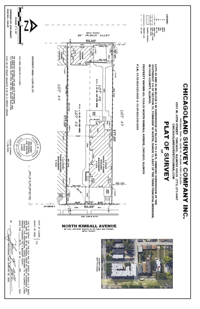 Large & well-maintained 3-Flat on an extra-deep, double lot with TWO PINS, measuring 50'X177' in Prime Logan Square right down the block from the 606. The unique depth of each lot at 177' long provides unmatched outdoor space with nothing like it the City. Extremely unique opportunity to acquire an income-producing 3-Flat multi-family building AND a vacant lot, currently used as a giant side-yard. The 1924 vacant lot has a separate PIN, with no encroachments, making it the ideal candidate to build a brand new multi-family building or single family home right next to the 1926 building. Endless potential with tons of new construction developments on the block. The 1926 building offers a variety of possibilities. Each 2BD+Den/1BA unit occupies an entire floor and has expansive floor plans at nearly 1,800 sq.ft. feature huge living rooms with wood burning fireplaces, separate dining areas and kitchens. Hold as an armchair investment and collect rent while watching the neighborhood continue to appreciate. Or add value with a gut renovation and convert into modern, luxury rental units, adding more bedrooms and bathrooms. This is truly a once-in-a-lifetime opportunity. Take in the vibrant surroundings of this booming neighborhood and all of the wonderful shops, restaurants, parks and nightlife that Logan Square has to offer. All this less than one block away from the 606 Bloomingdale Trail, and steps from Logan Blvd. Close to plenty of public transportation options like the CTA Blue line, and near all major expressways. 2.5-car Garage and 3-car gated exterior parking spaces complete the package. Low building expenses. Tenants pay their own utilities. Separate meters, updated electrical, recent tuck-pointing, some new windows & mechanicals throughout. Unrivaled outdoor space including large back decks and a grassy backyard fully enclosed by a new wooden fence offering ultimate privacy. You must-see this one to believe the size and potential of this exceptional property, waiting for its new owner.