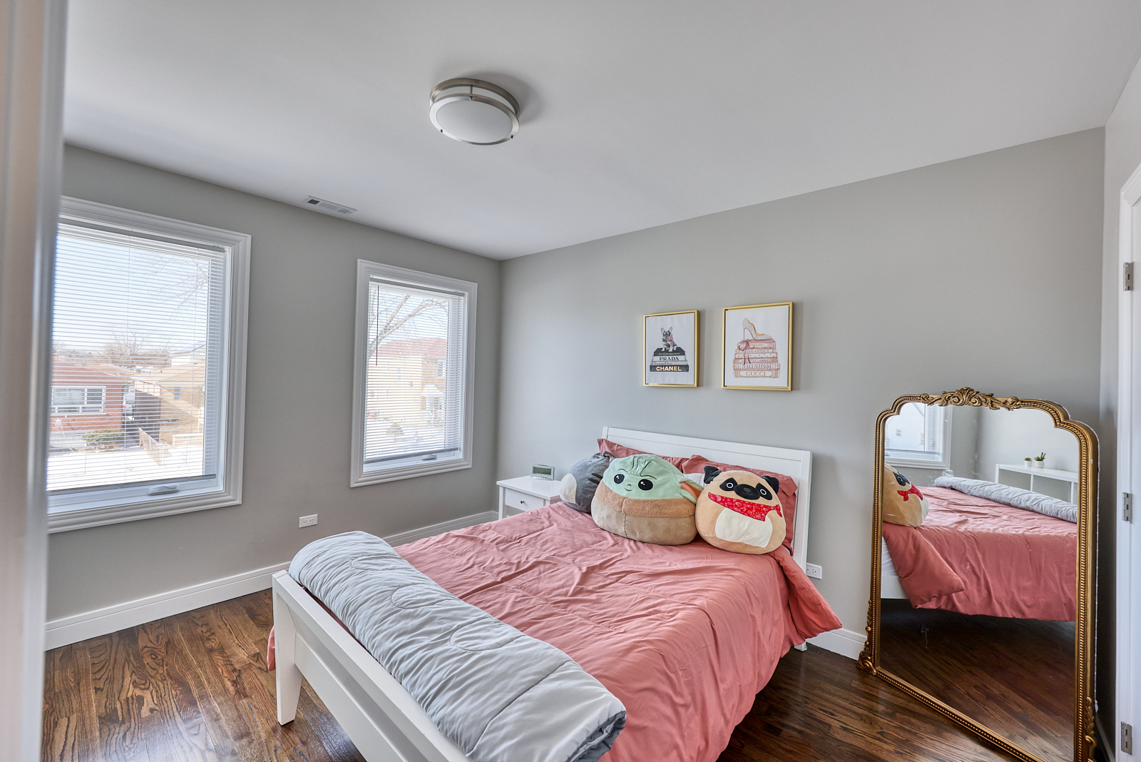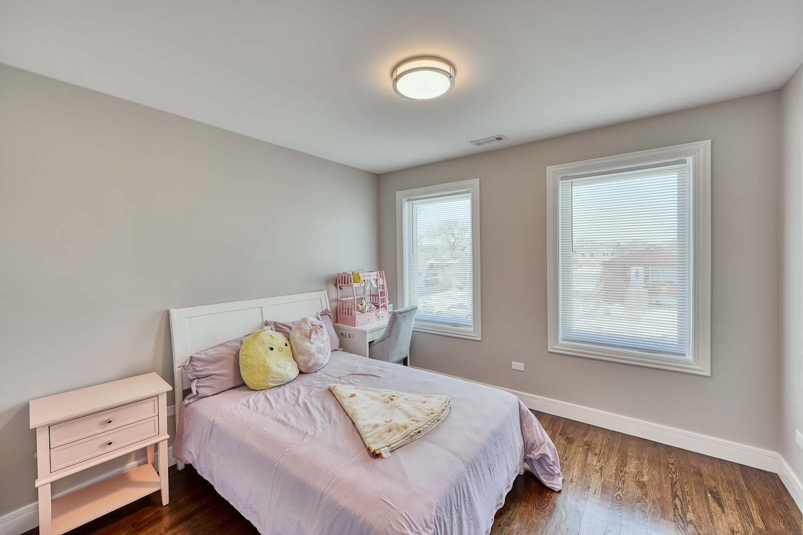 This beautifully constructed new home is ready for a loving family. The brick front and James Hardie Board cement siding exude durability and elegance, providing a stunning aesthetic finish. A charming walk-up patio with railings, fully fenced backyard, two-car garage, zoned heating and AC systems, high efficiency windows and doors, ensures comfortable temperatures throughout for years to come. The open-concept design on the main floor creates a bright and inviting atmosphere. The clean and sleek layout features a spacious living room, a modern kitchen with all appliances included, and a beautiful island with quartz countertops perfect for gatherings. The dining/living room area is large and versatile, waiting for your personal touch, convenient powder room on the main level. The hardwood floors throughout the main floor and second level add warmth and elegance. The second level boasts a spacious master bedroom with full bath, double sink vanity, separate all glass shower, deep soaking tub and a large walk-in closet. Three additional bedrooms, each with ample closet space. For owner convenience the laundry area is on the second floor as well as an additional full bath. This home was built with convenience in mind near main highways and shopping. Great opportunity to own a new construction in an established community.