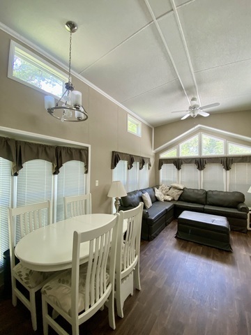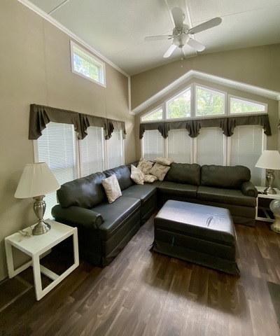 READY-SET-FALL IN LOVE! The first of many things you're sure to appreciate is the quaint cul de sac location, the mature trees sprinkled about, allowing both sun and shade. As you pull into the lot the ample parking space will be appreciated to welcome any & all of your guests. The lot includes a plethora of upgrades to enjoy. An expansive paver patio with inset fire pit & adjacent lovely fountain. This will surely become your favorite place to relax & unwind. Then you can head up to the large wrap-around & covered deck from the staircase in front or the side, there you will find relief from the sun & heat or protection from the rain. Now.....step inside the gorgeous and impeccably cared for 2016 Kropf Park Model. The light colors, white woodwork and high ceilings punctuate the size & openness this park model offers. In the living room you'll enjoy the leather sectional sofa by day, then by night it opens to a massive sleeper. That coupled with the main bedroom & double loft space accommodates sleeping for 10 or more. The like new shed can store all your camping must haves Here's a few of the many items included with the sale: a JD riding lawn mower, a grill, & large LP (pig style) tank, some housewares, bedding, TVs along with a high antenna tower for local use or to mount a satellite dish to/so much more! Everything is here & in place to enjoy Spring, Summer. Fall and Winter! This impeccable property is available today - but very possibly-gone tomorrow! Call for a private showing. Gated facility-must be accompanied by a Real Estate Broker to view listing. Property owner is responsible for yearly assessments. This is not a homestead property.