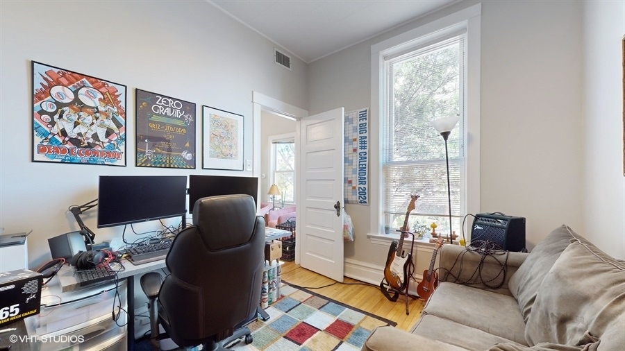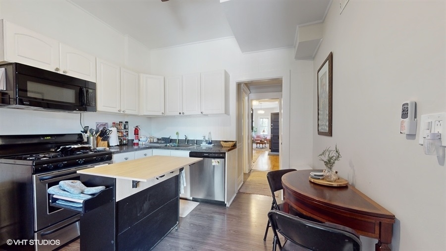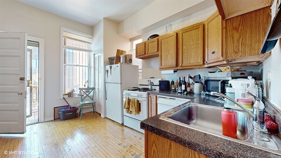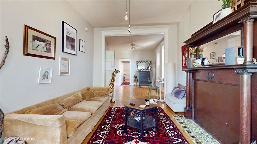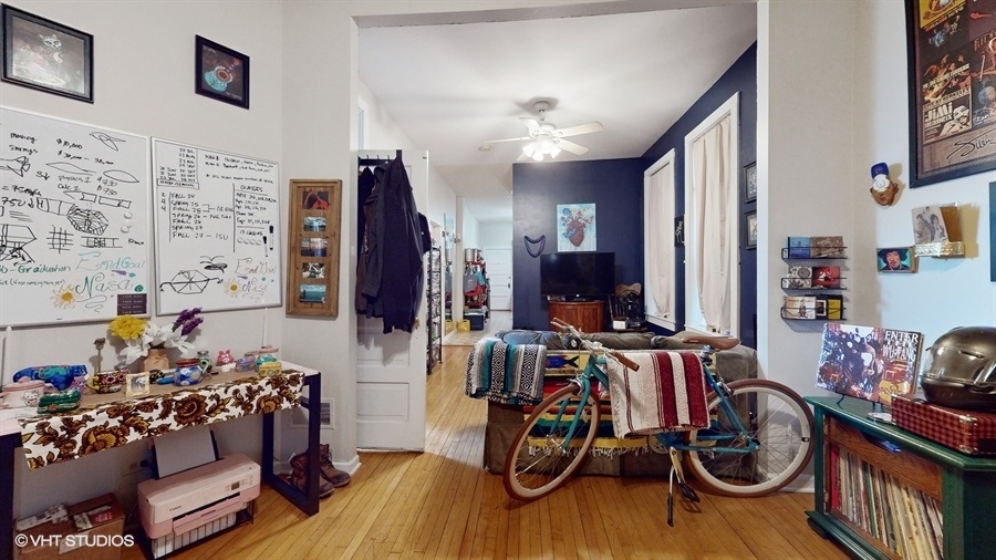 LoganSq/Bucktown armchair investment opportunity. Stellar location. Steps from the Western Blue line stop and 606 trail entrance. See the location on a map. Perfect spot for a long-term hold. Large units that rent easily with tidy multi-year tenants; little to no vacancy. Some original classic features held as well as practical and thoughtful updates and improvements made. Well maintained and professionally managed. There are (2) 3 Bedroom 1 bath units and (2) 2 Bedroom 1 Bath units, plus a larger garage with extra income. Annual (GR) of 113K+. A development possibility with 1 PIN with 2 addresses, zoning per COC is C1-2.Property is located in ADU ZONE and NW Preservation Area. Lending resource is available.