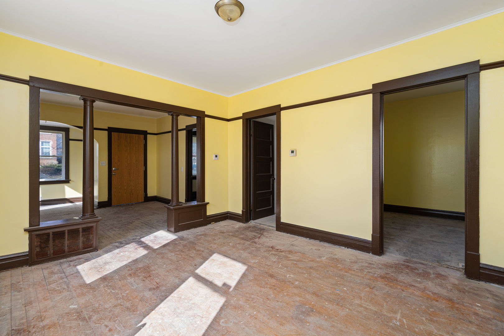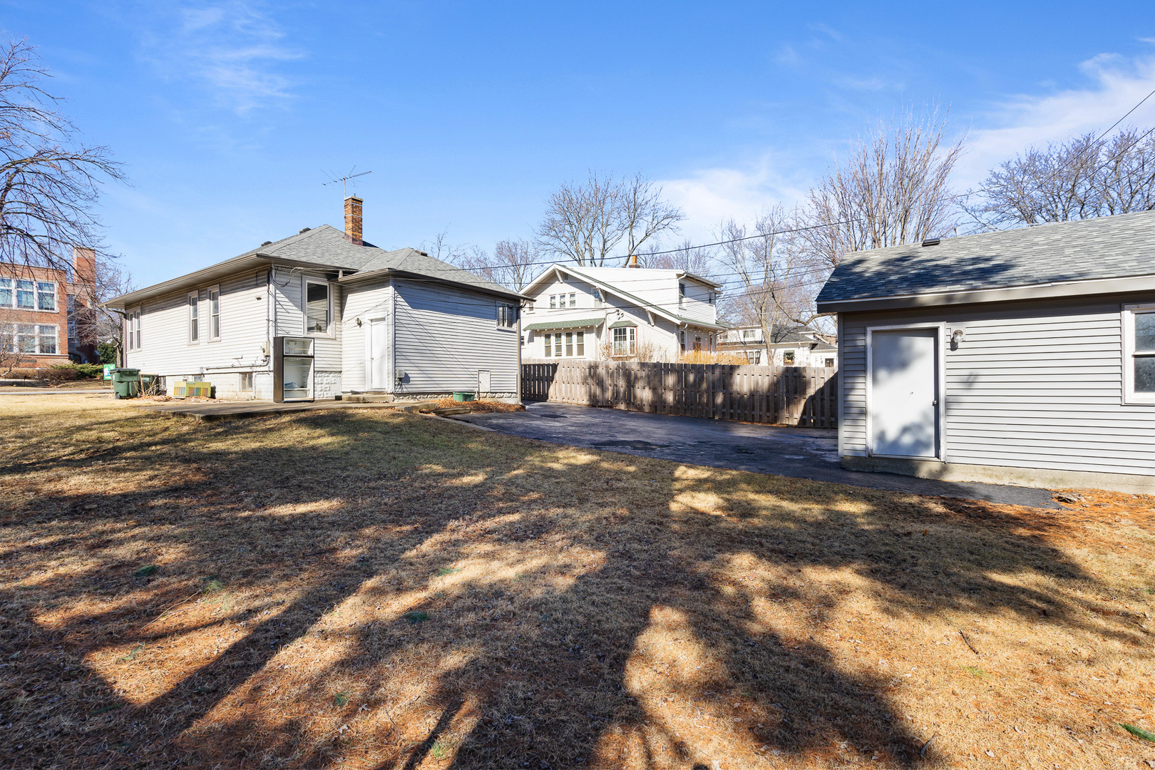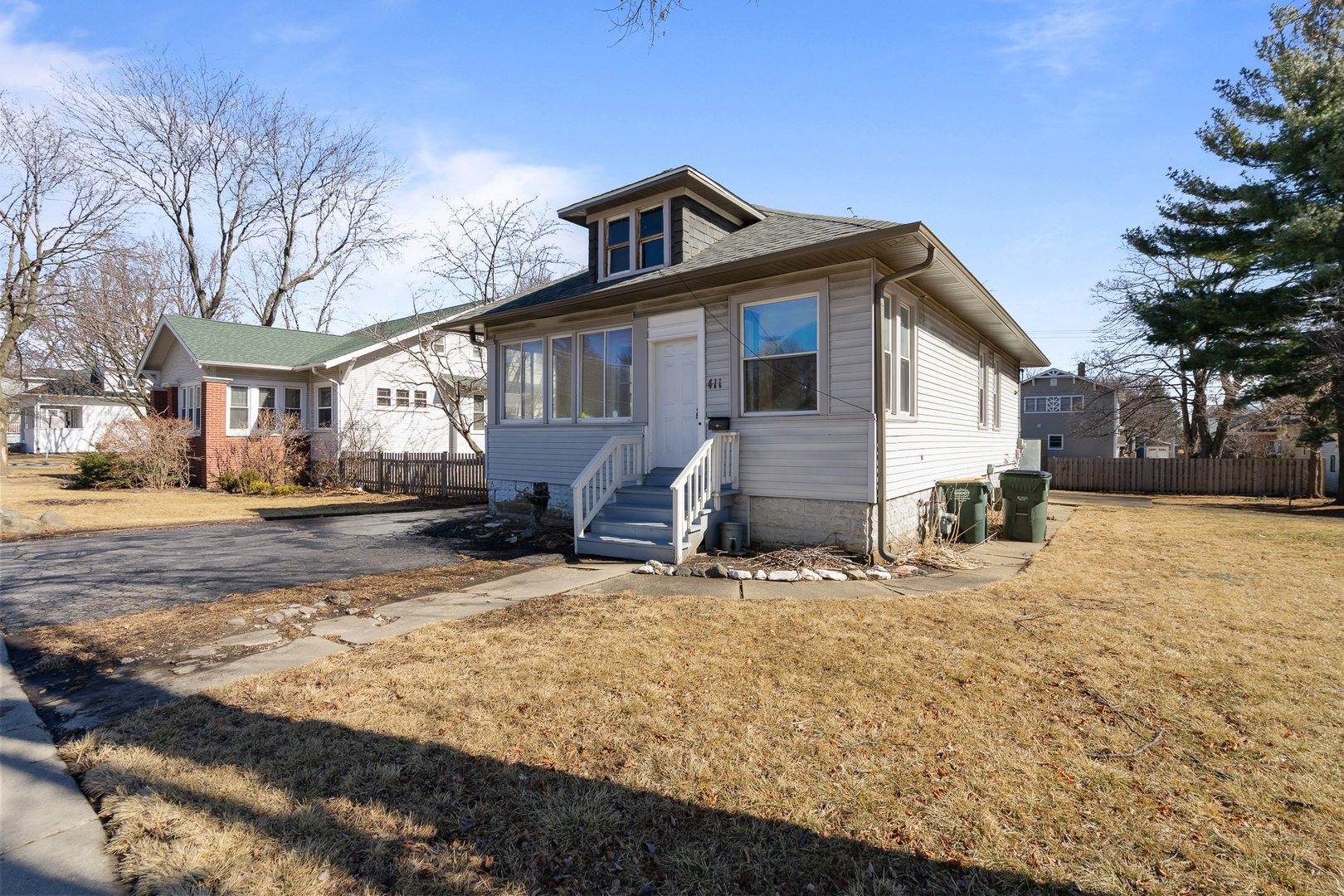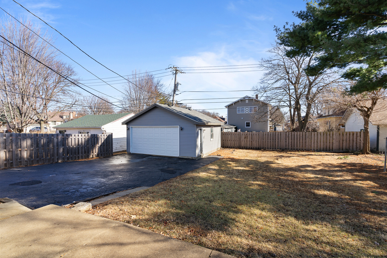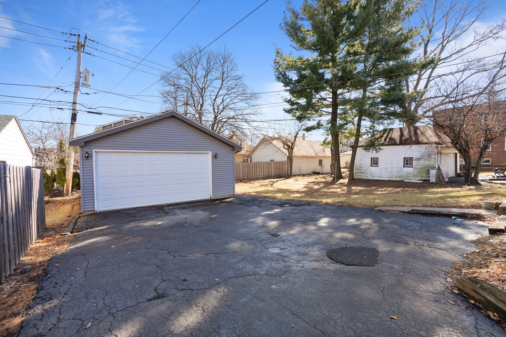 Step into this inviting 3-bedroom, 1-bathroom bungalow, where timeless character is abundant. A welcoming enclosed front porch with new flooring sets the tone for this cozy home. Inside, you'll find original woodwork, hardwood floors, and a sun-filled living room, beautifully separated from the formal dining room by decorative columns. The kitchen features oak cabinets, new countertops, oversized tile flooring, and a spacious pantry. Downstairs, the partially finished basement offers incredible versatility, boasting a recreation room, office, family room, and roughed-in plumbing. Outside, a 2.5-car detached garage provides ample storage, while recent updates-including an 8-year-old roof, 2-year-old soffit and gutters ensure peace of mind. Don't miss this perfect blend of charm and convenience-schedule your showing today!