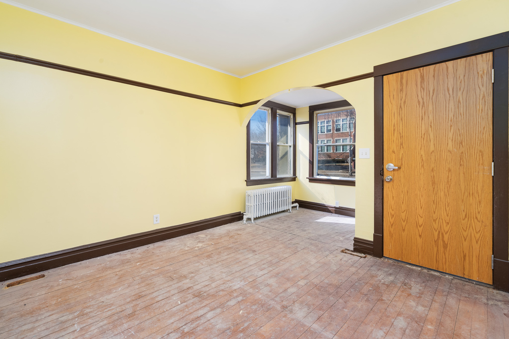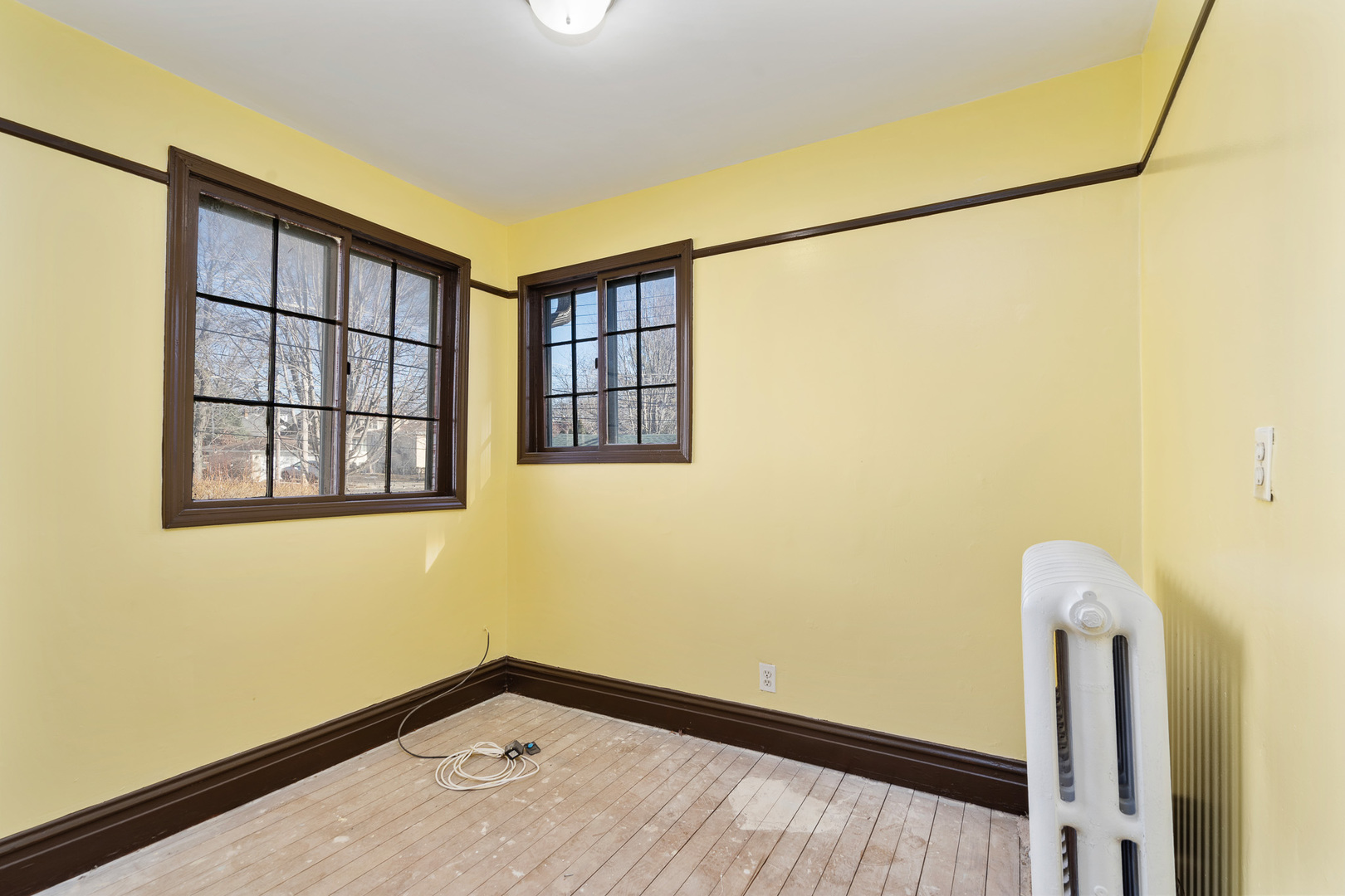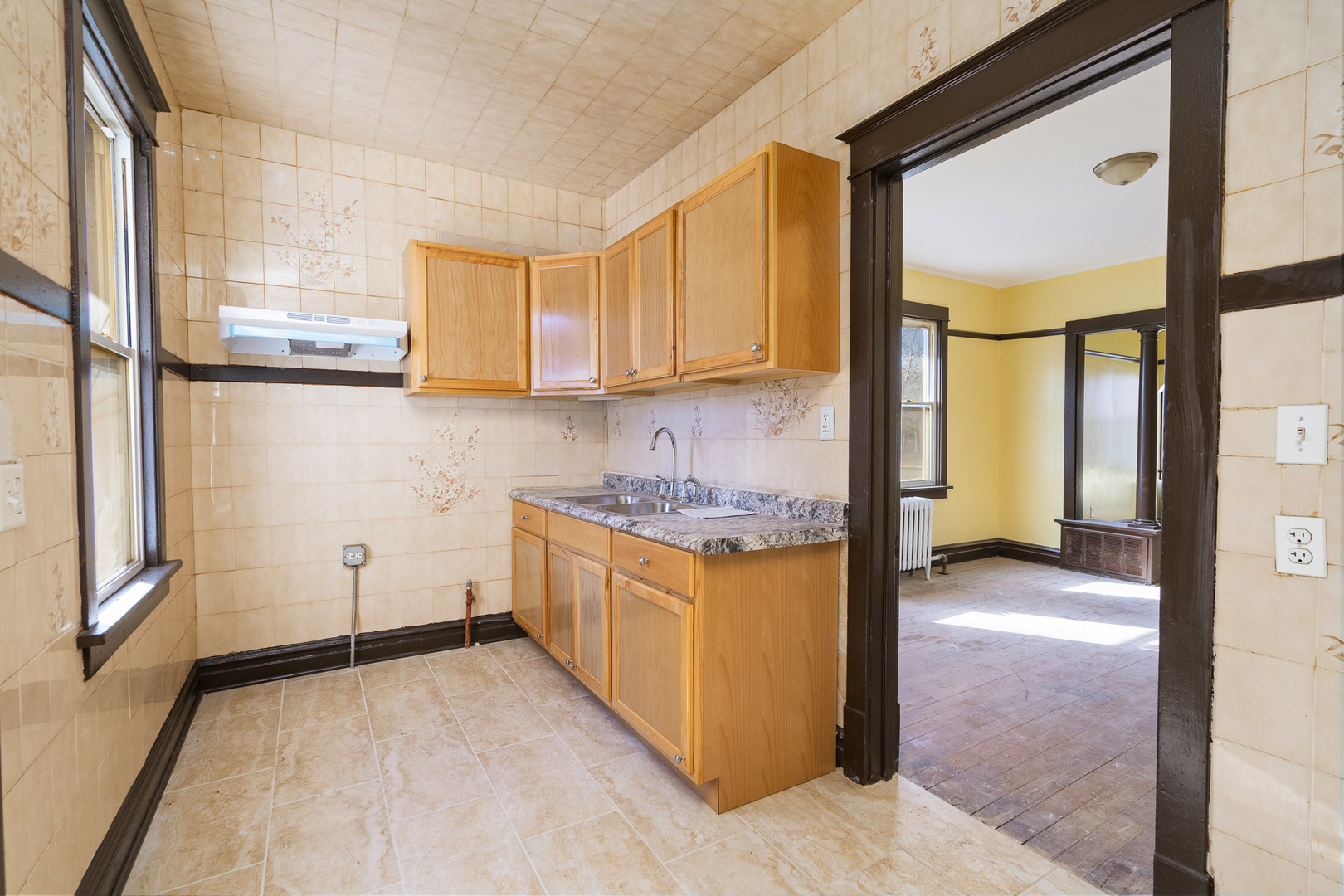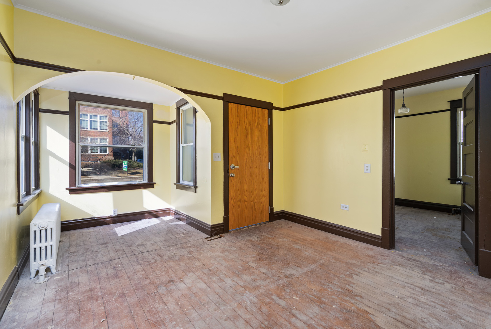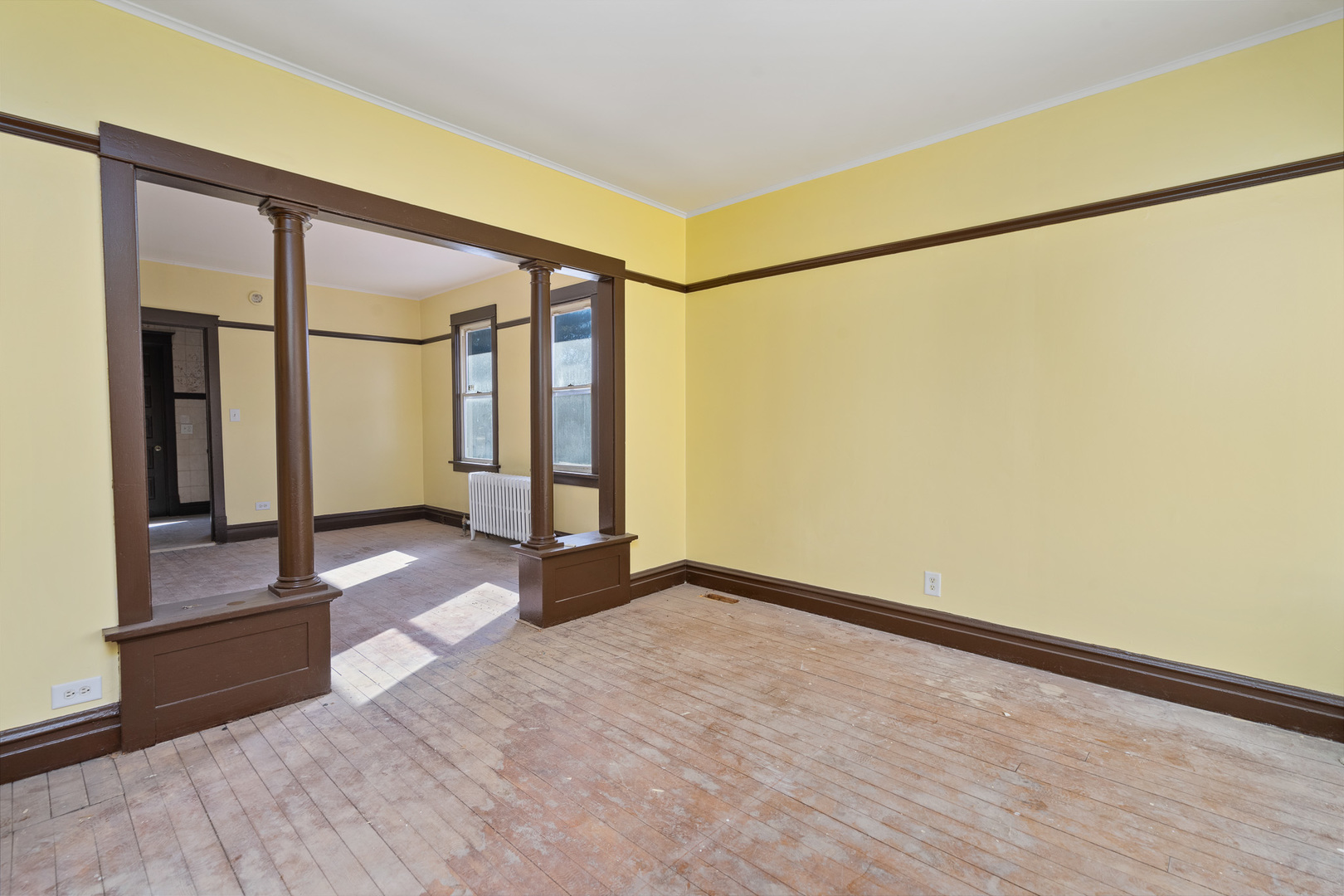 Step into this inviting 3-bedroom, 1-bathroom bungalow, where timeless character is abundant. A welcoming enclosed front porch with new flooring sets the tone for this cozy home. Inside, you'll find original woodwork, hardwood floors, and a sun-filled living room, beautifully separated from the formal dining room by decorative columns. The kitchen features oak cabinets, new countertops, oversized tile flooring, and a spacious pantry. Downstairs, the partially finished basement offers incredible versatility, boasting a recreation room, office, family room, and roughed-in plumbing. Outside, a 2.5-car detached garage provides ample storage, while recent updates-including an 8-year-old roof, 2-year-old soffit and gutters ensure peace of mind. Don't miss this perfect blend of charm and convenience-schedule your showing today!