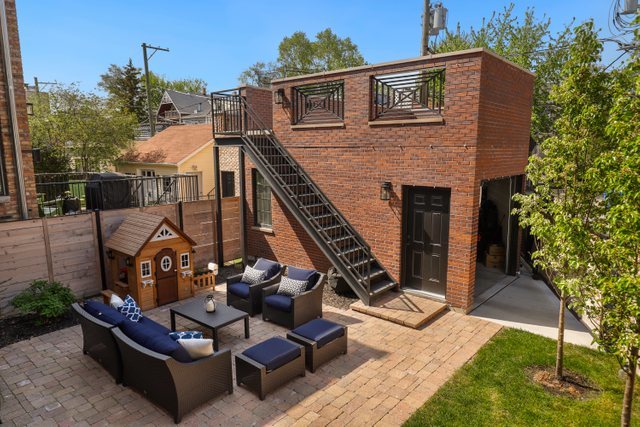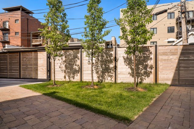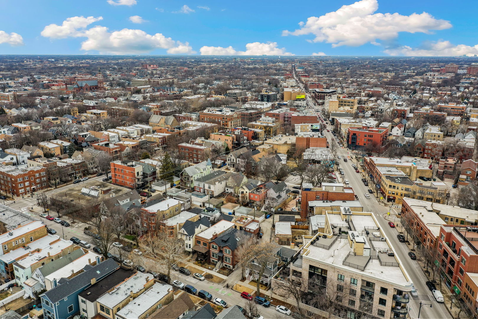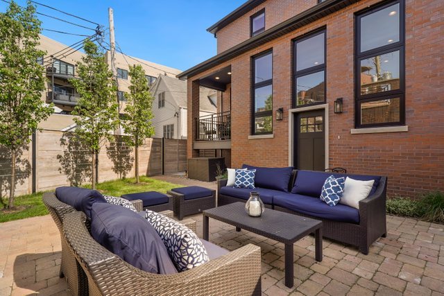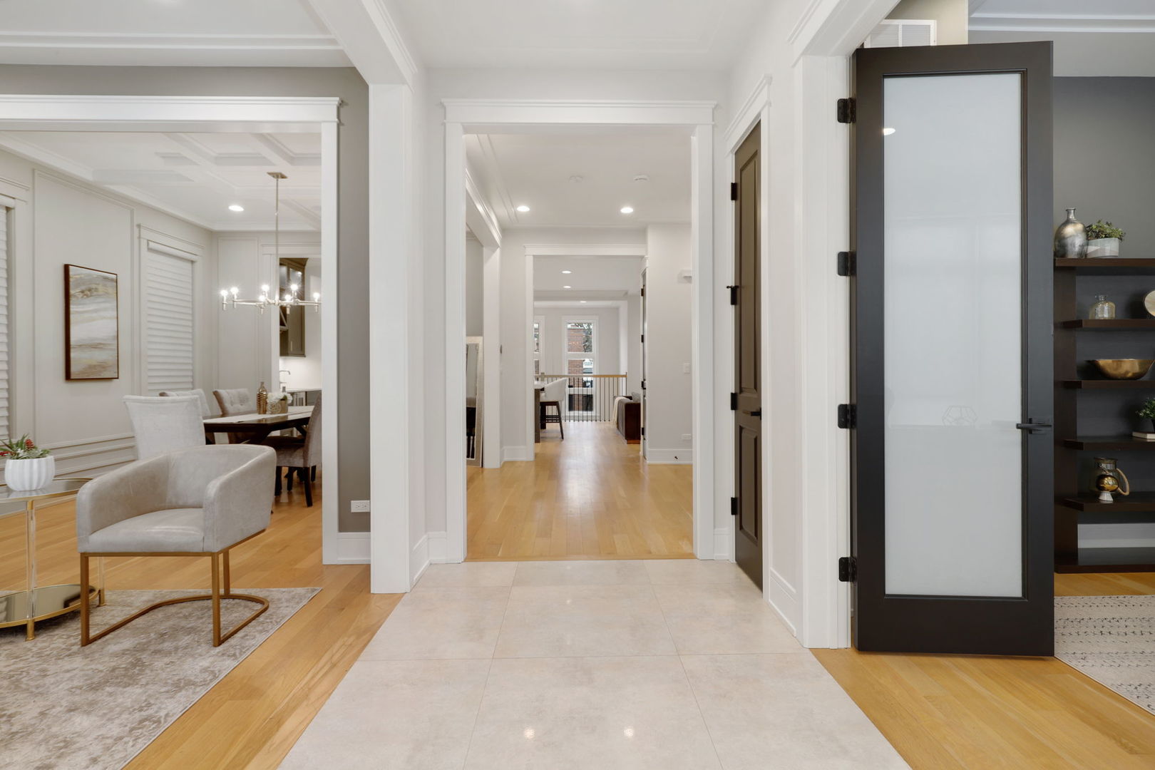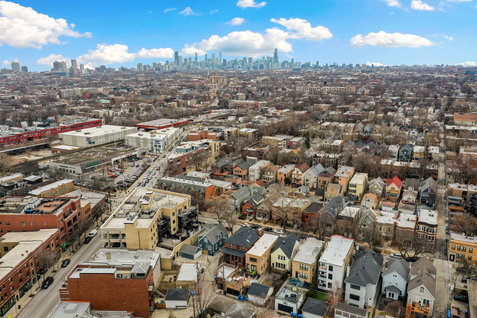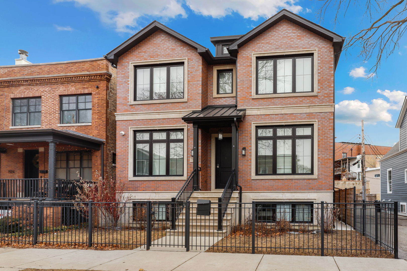 Welcome to this stunning, modern, and elegant all-brick single-family home, perfectly situated on a picturesque tree-lined street. Located on an extra-wide 38' corner lot in the esteemed Bell School District, this 6-bedroom, 6-bath residence showcases exceptional attention to detail from the moment you step inside. Designed for both comfort and entertaining, the spacious and open floor plan features custom millwork, coffered ceilings, and an abundance of natural light. The gracious foyer leads to a sophisticated home office and formal dining area, setting the tone for refined living. The gourmet chef's kitchen is a true showpiece, boasting custom cabinetry, quartz countertops, a large island, high-end Wolf appliances, a beautiful backsplash, a spacious pantry, and a wet bar with a wine chiller. This space seamlessly flows into the expansive family complete with a fireplace with a mantel, and built-in cabinetry. The luxurious primary suite is a private retreat, featuring a tray ceiling, dual walk-in closets, and a spa-like bathroom with a soaking tub, rainfall shower, heated floors, a double vanity, and a water closet. Three additional generously sized bedrooms upstairs offer ample closet space, along with the convenience of a large laundry room with a side-by-side washer and dryer. The lower level is designed for ultimate entertainment, featuring a sprawling recreation/family room with 9' ceilings, heated floors, a wet bar, and a walk-in wine room. Two additional bedrooms, a second laundry area, and a private entrance make this level perfect for an in-law suite or au pair living arrangement. Outdoor living is equally impressive, with a terrace off the family room, a beautifully landscaped backyard with pavers, and the potential to expand outdoor space by completing a rooftop deck above the 2.5-car garage. A motorized gate provides two access points for seamless parking and storage. Enjoy all the conveniences of Roscoe Village, North Center, Lakeview and just steps from top-rated restaurants, shops, Trader Joe's, coffee spots, and public transportation, this home offers the best of city living.
